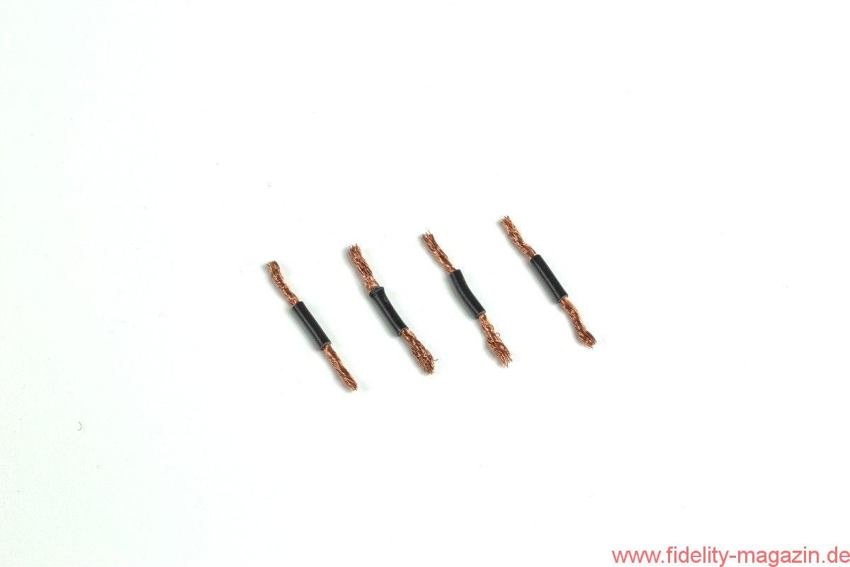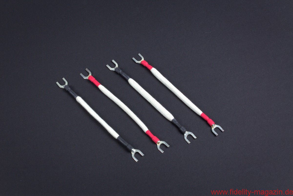 Auf einen Punkt müssen wir aber dennoch eingehen: Die mitgelieferten Kabelbrücken für das Bi-Wiring und Bi-Amping-taugliche Doppelterminal sind – vorsichtig ausgedrückt – wenig standesgemäß. Sie sind vielmehr bestens geeignet, den Humor des womöglich verwunderten Käufers auf den Prüfstand zu stellen: einfache Litzendrähtchen, ohne Kabelschuhe, ohne Stecker, von der Rolle geschnitten, abisoliert und angeklemmt.
