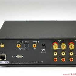 Das ist bei der Stream Box DSA dagegen kein Thema. Sie verwendet einen zweikanaligen Class-D-Schaltverstärker, der praktisch keine Abwärme produziert; ihr Gehäuse kann daher auf Ventilationsöffnungen verzichten. Und sollte der Leistungsverstärker in der DSA für größere Beschallungsaufgaben doch mal ein wenig zu knapp bemessen sein, lässt sie sich dank variablem Ausgang sogar als (Netzwerk-)Preamp vor eine große Leistungsendstufe schnallen. Darüber hinaus gibt es auch noch einen Fixpegel-Ausgang, so dass man die DSA auch als reinen Netzwerk-Client betreiben kann. Allerdings liefern beide Analogausgänge relativ niedrige Pegel, weshalb die nachfolgenden Geräte über eine höhere Eingangsempfindlichkeit verfügen sollten. Zum Mitschneiden lässt sich ohnehin besser der S/P-DIF-Digitalausgang verwenden, wobei die Abtastfrequenz des Ausgangssignals stets derjenigen der Wiedergabequelle entspricht – was gleichsam bedeutet, das der Digitalausgang nur bei digitalen Tonquellen funktioniert.