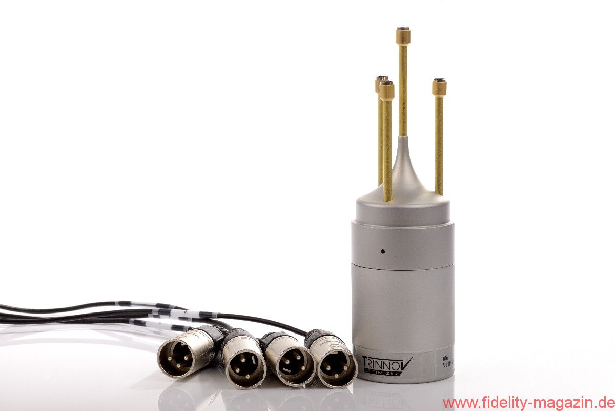 Bevor wir ins Detail gehen, sei das Grundkonzept dieser Raumkorrektur erläutert: Basis jeder Trinnov-Raumoptimierung ist die dreidimensionale Raumanalyse. Hierfür entwickelten die Franzosen ein spezielles Messmikrofon, das, obschon nicht im Lieferumfang der Trinnovs, essentieller Bestandteil eines jeden Trinnov-Systems ist. Dieses 3D-Mikrofon mit eigener Spannungsversorgung via Neun-Volt-Block hat vier Kapseln, die in einer gleichschenkligen Pyramide angeordnet sind und den Hörraum dank einer überdurchschnittlich hohen Auflösung in jede Richtung aushorchen. Die Trinnovs nutzen MLS-Signale (Maximum Length Sequence), um die vollständige Impulsantwort der Lautsprecher im konkreten Raum zu messen.