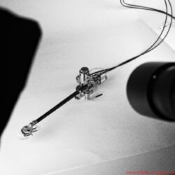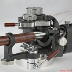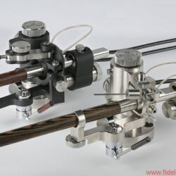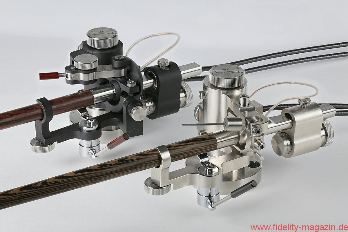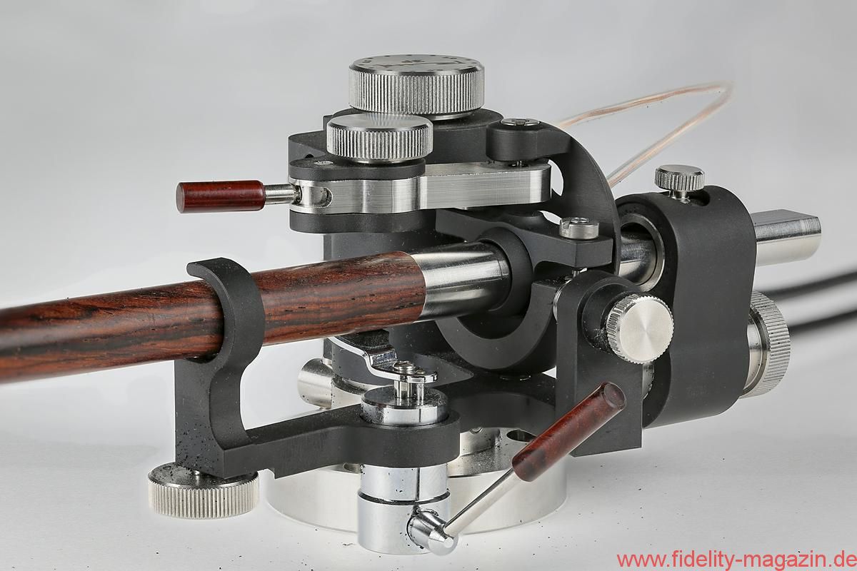Selbstverständlich habe ich die Gelegenheit dieses Laufwerks-Tests genutzt, mich auch mit den passenden Reed-Armen zu beschäftigen. Das Setup entspricht mit dem 3P-Zwölfzöller für rund 3500 Euro und dem etwa 2500 Euro teuren 2A-Neunzöller dem Vorführaufbau des Ultraudio-Vertriebs durch Andrejs Staltmanis. Die Dualität des Muse findet in den beiden Armen ihre Fortsetzung: Der lange 3P hat eine kuriose, ich nenne sie mal dreizackige Einpunktlagerung, bei der drei stecknadeldünne Stifte in Mulden greifen, wo sie von Neodymmagneten gehalten werden. Im Zuge der Armmontage erscheint die Fragilität dieser Anordnung bedenklich, in der Praxis jedoch funktioniert das Gebilde ganz hervorragend – da dürfen ohne Bedenken auch Einsteiger-Wurstfinger ran. Genauso wie beim Neunzöller, der von einem feinmechanischen kardanischen Kunstwerk mit Saphirlagern geführt wird, das während der Bedienung ein selten erlebtes inneres Hochgefühl auslöst, dessen Ursache im allgemeinen Qualitätseindruck liegt. Ich stelle mir vor, dass sich ungefähr so die H-Schaltung eines Maseratis anfühlt. Die wichtigsten Parameter der analogen Abtastung können an den Reed-Armen „on the fly“ justiert werden. Ja, auch der Nadel-Azimut, und zwar nahe des Drehpunkts über ein Feingewinde (beim 2A nur optional). Über die Arme gäbe es – von der Holzauswahl bis zu dem auf Rubinen gelagerten Antiskating – noch so viel zu erzählen, dass ich über einen gesonderten Test nachdenke. Sowohl beim Muse als auch angesichts der beiden Arme ist eine offenbar nicht zu bändigende Lust an Feinmechanik zu spüren. Ohne Vidmantas Triukas zu kennen, bin ich überzeugt, er lebt nach dem Motto: Wieso einfach, wenn man hier und da noch eine Komplikation einbauen kann und mit noch mehr beweglichen Teilen ans Ziel kommt. Aus dem ganzen Setup spricht die pure, fast kindliche Freude über das wohlkonstruierte mechanische Zusammenwirken der Dinge.