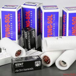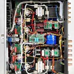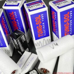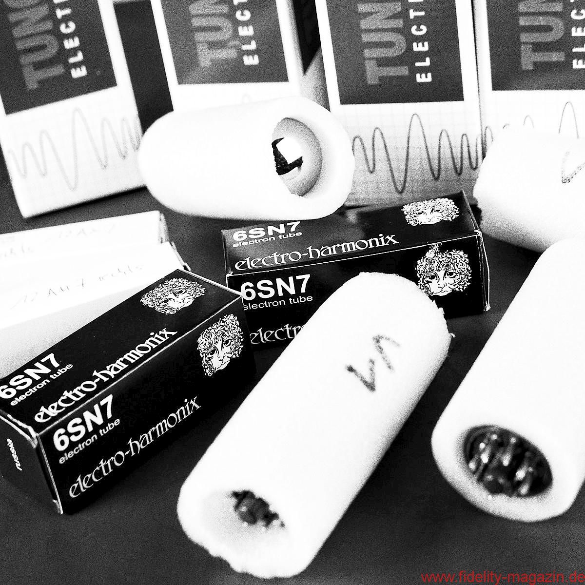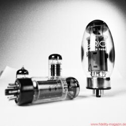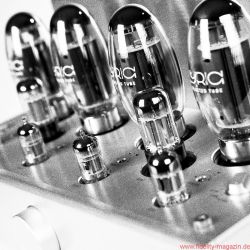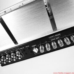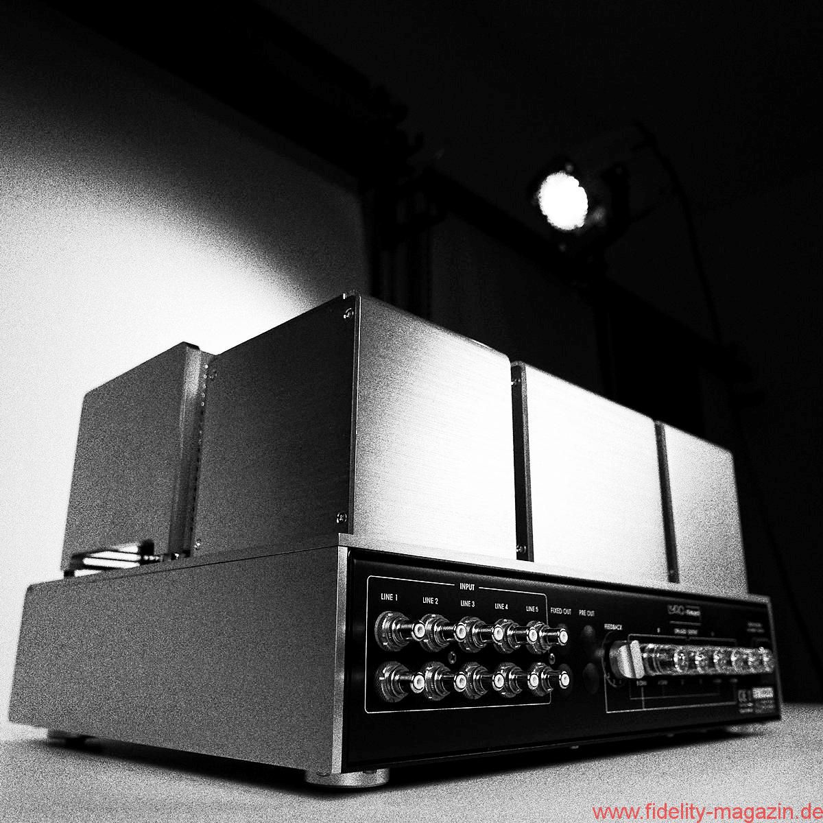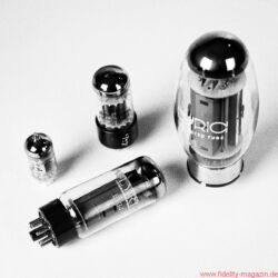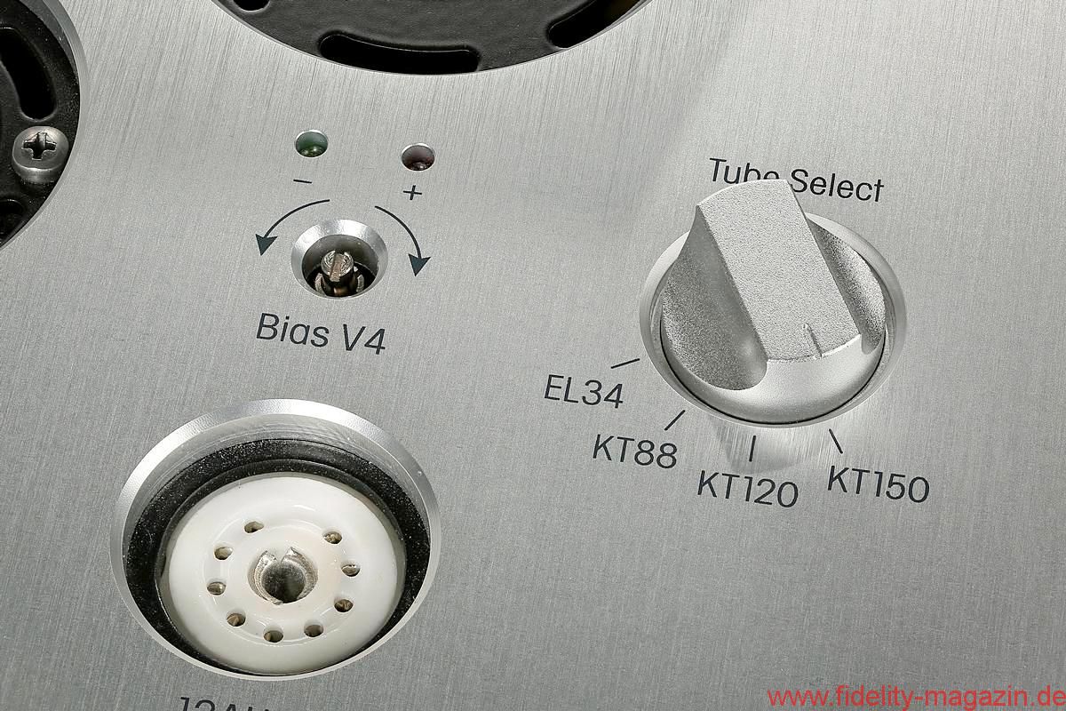 Röhrenbestückung: 4 x KT150 (optional KT88, KT120 oder EL34), 2 x 6SN7, 2 x 12AX7, 2 x 12AU7