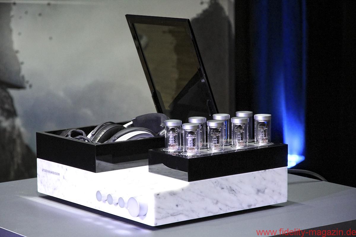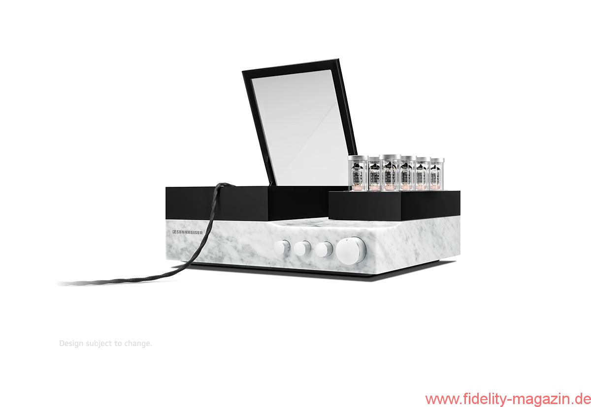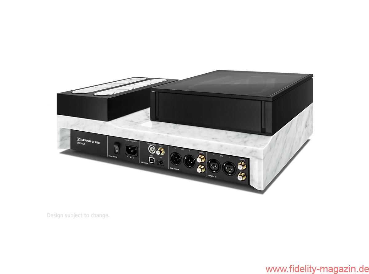 Besonderen Wert legte Sennheiser beim Röhrenverstärker auf möglichst störarme Arbeitsbedingungen. So wird jede Röhre von einem eigenen Quarzglaskolben umhüllt und vor Luftschall geschützt, während das komplette Gehäuse des HEV1060 aus einem Block resonanzarmem Carrara-Marmor herausgefräst wurde. Dass es zudem schwingend aufgehängt und von seiner Stellfläche entkoppelt ist, kommt auch anderen Baugruppen zugute, etwa der integrierten Digitalabteilung, die mit acht DAC-Chips des Typs ESS Sabre ES9018 bestückt ist.