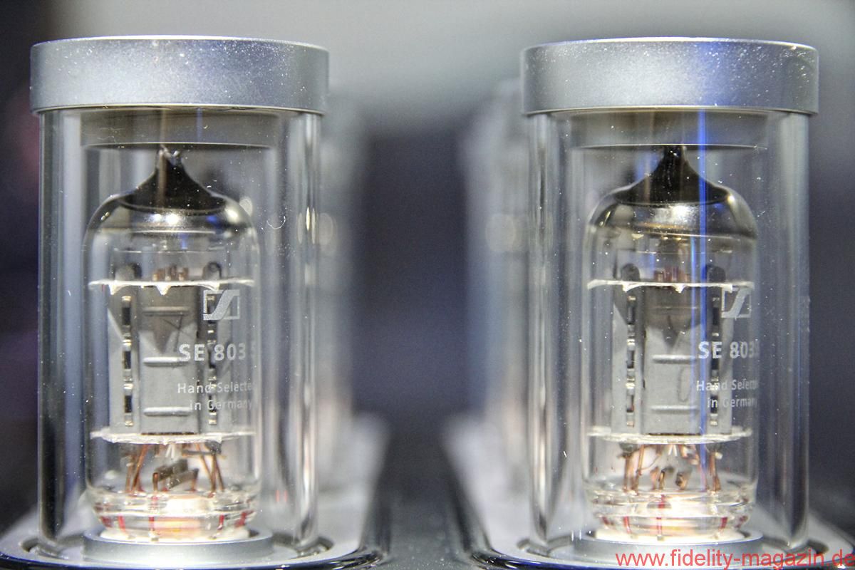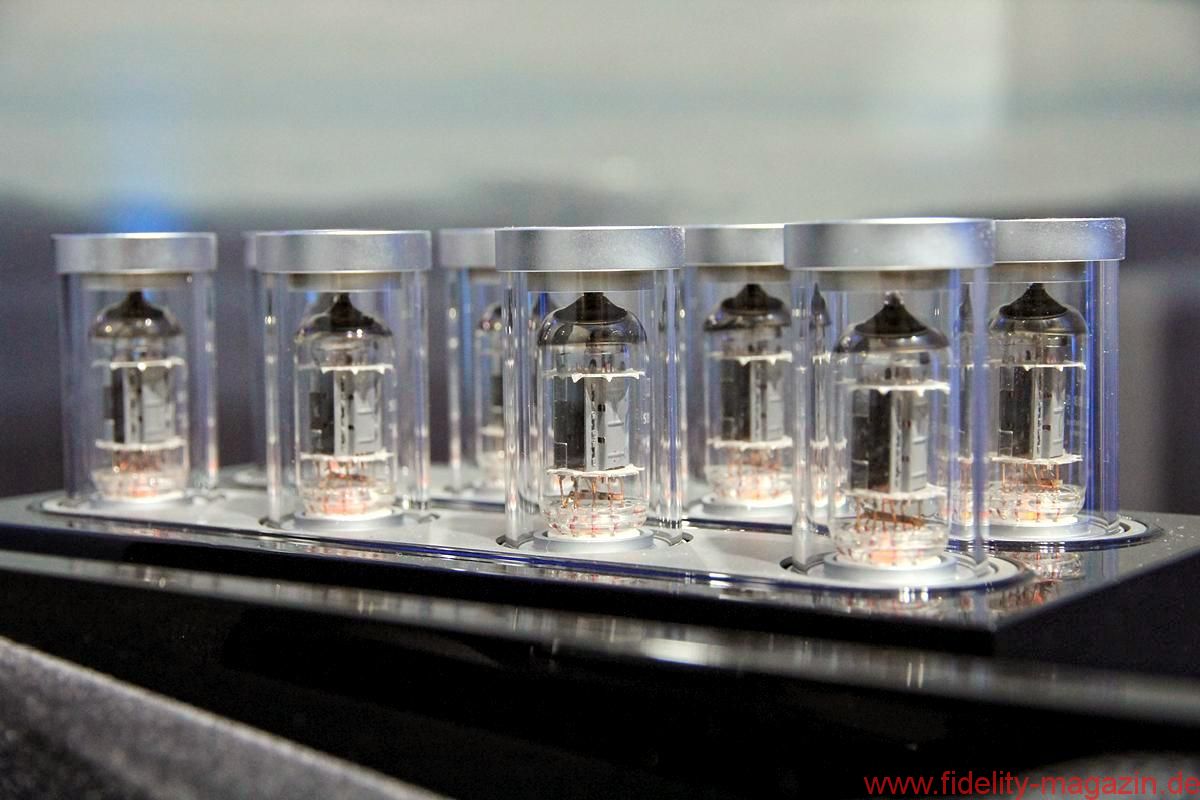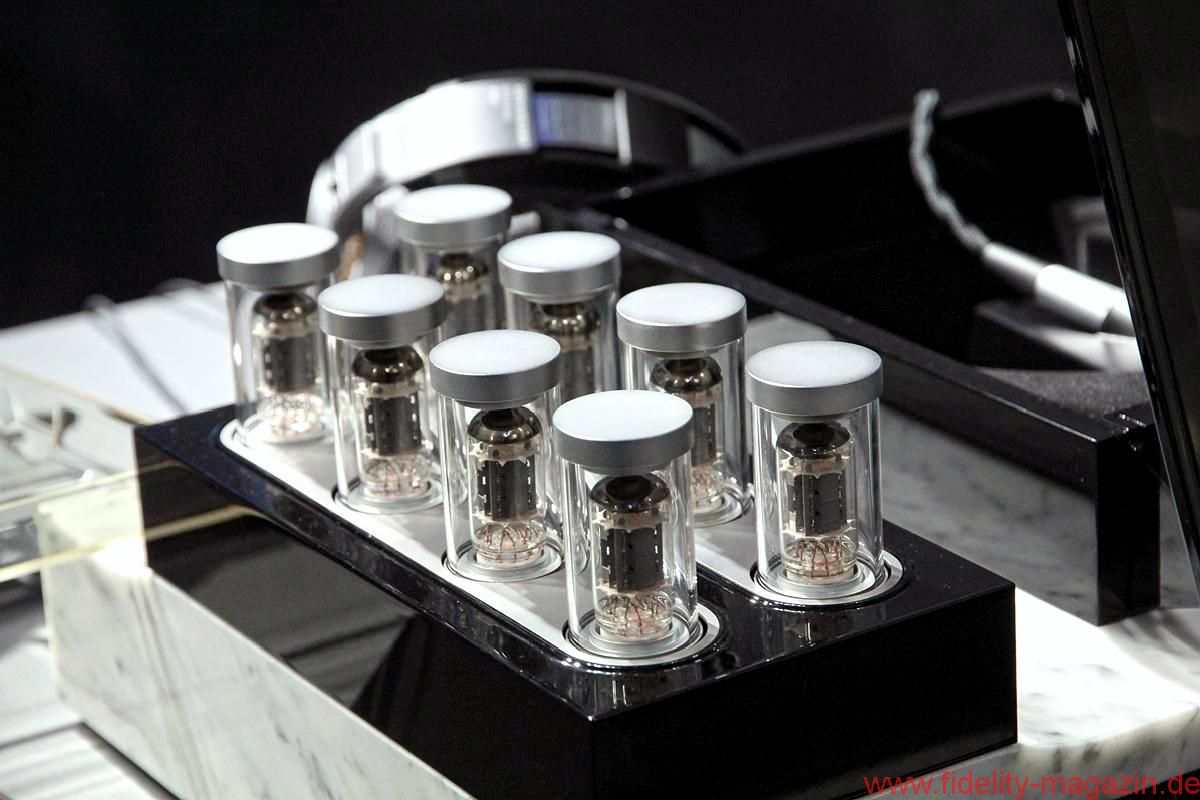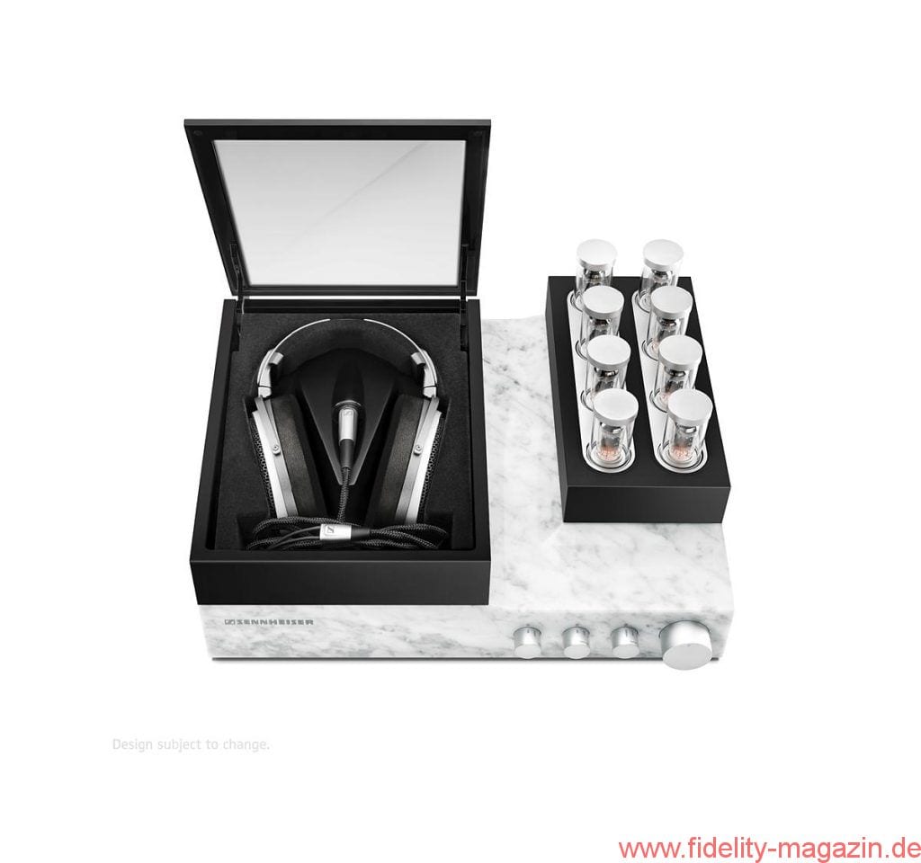 Besonderen Wert legte Sennheiser beim Röhrenverstärker auf möglichst störarme Arbeitsbedingungen. So wird jede Röhre von einem eigenen Quarzglaskolben umhüllt und vor Luftschall geschützt, während das komplette Gehäuse des HEV1060 aus einem Block resonanzarmem Carrara-Marmor herausgefräst wurde. Dass es zudem schwingend aufgehängt und von seiner Stellfläche entkoppelt ist, kommt auch anderen Baugruppen zugute, etwa der integrierten Digitalabteilung, die mit acht DAC-Chips des Typs ESS Sabre ES9018 bestückt ist.