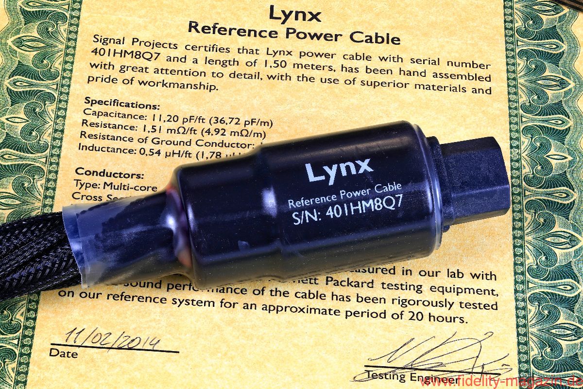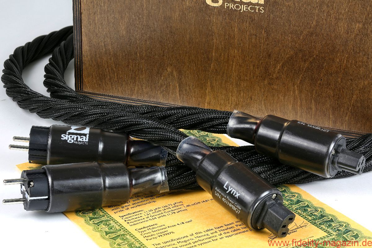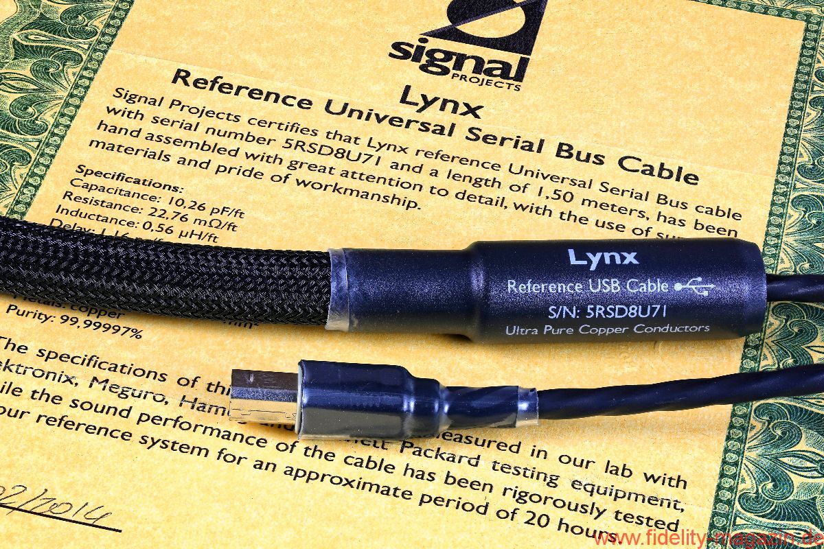Nach etlichen Wochen des Einspielens und zahlreichen Versuchen – ja, auch an anderer als der ursprünglich zu verbindenden Elektronik – meine ich für die Lynx-Serie eine minimale Tendenz festgestellt zu haben. Einen Hauch von klanglichem Charakter, der mir in nahezu allen Konstellationen ausgesprochen gut gefällt. Im Vergleich zu (noch) größeren Produktendieser Firma, die sich erst noch bewähren (müssen),scheinen „die Lynxe“, wie sie hier mittlerweile genannt werden, ein ganz kleines bisschen den Bassbizeps anzuspannen, wirken daher in eher schlank und sportlich abgestimmten Ketten wie ein willkommener Extrakick fürs Fundament. Dieser klangliche Eindruck ist messkabeltechnisch keineswegs verifizierbar, sondern läuft auf einer höchst subtilen Ebene ab und wird erst bei sehr sorgfältigem Vergleich spürbar. Klassische Klangkriterien wie etwa Raumeindruck, Abbildungspräzision oder Feinstofflichkeit bewegen sich ohnehin schon auf einem unangreifbar hohen und zweifellos neutralen Niveau. Damit qualifiziert sich die Lynx-Serie von Signal Projects als gern gesehener „Lynk“ zwischen weit mehr als den ursprünglich vorgegeben Komponenten. Die USB-Strippe übrigens ausdrücklich eingeschlossen!