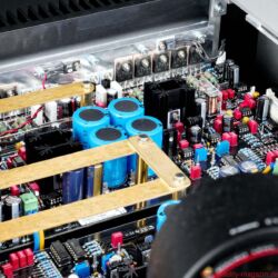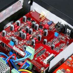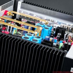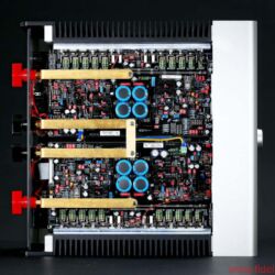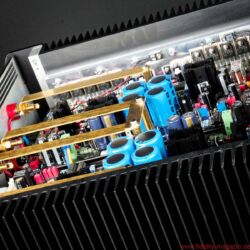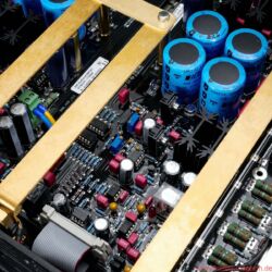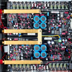 Allererster Schritt noch vor dem Auspacken des voluminösen Pakets sollte die Suche nach einem passenden Platz sein. Denn die Soulution 511 ist nicht nur klassische 44 Zentimeter breit, sondern baut auch genauso tief und steigt satte 27 Zentimeter in die Höhe. Zudem beherbergt das alufarbene 32-Kilo-Trumm hinter dem typischen Soulution-Display, das in roter Schrift alles Wichtige anzeigt, und seinen verwindungssteifen Gehäusewänden eine A/B-Transistorschaltung, die bis deutlich über Zimmerlautstärke im klangfördernden, aber auch wärmeproduzierenden Class-A-Betrieb läuft. Sie fordert also auch ein bisschen Luft drumherum zum Durchatmen. Zum Ausgleich mobilisiert eine Soulution 511 bei Bedarf aber auch 250 Watt an vier Ohm, an zwei Ohm derer 500 pro Kanal. Und falls Sie zufälligerweise gleich zwei 511 geordert haben, um vielleicht Bi-Amping zu praktizieren, sei nur der guten Ordnung halber erwähnt, dass sich jede 511 auch auf Mono-Betrieb umschalten lässt. Was enorme Kräfte an ihren massiven Drehklemmen entfesselt: Als Monoblock eingesetzt, liefert die „kleine“ Stereo-Endstufe von Soulution an vier Ohm bis zu 1000 Watt, an zwei Ohm bis zu 2000 Watt. Und selbst dann wird’s immer noch nicht wirklich „eng“, Impulse bis zu 3000 bzw. 6000 Watt sind auch kein Problem. Bis zu 60 Ampere liefert die 511 und bleibt auch an niedrigen Lautsprecher-Impedanzen unbedingt stabil. Wer also beispielsweise noch eine legendäre „Killer-Kappa“ mit ihren gefürchteten Minimalimpedanzen zu Hause hat, könnte hier für knapp 30 000 Euro die Lösung aller Verstärkerprobleme finden.