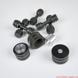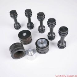 Eines davon ist ein Gerätefuß namens CF. Eigentlich ist dieser für die Verwendung mit seinen phantastischen Composant S Basen (siehe Fidelity Nr. 6, Ausgabe 2/2013) gedacht. Ich habe mir die Chance aber nicht entgehen lassen und die CF-Gerätefüße gleich auch mal ohne die hauseigene Basis getestet. Und das Ergebnis ist unglaublich: Bei jedem Gerät ist sofort eine erhebliche Klangsteigerung zu vernehmen. Die Musik wirkt wie von Stress befreit, tonale Ecken und Kanten verschwinden, ohne irgendeine Art akustische Weichspülung zu erzeugen. Zudem gewinnt der musikalische und insbesondere auch dynamische Fluss sehr deutlich.