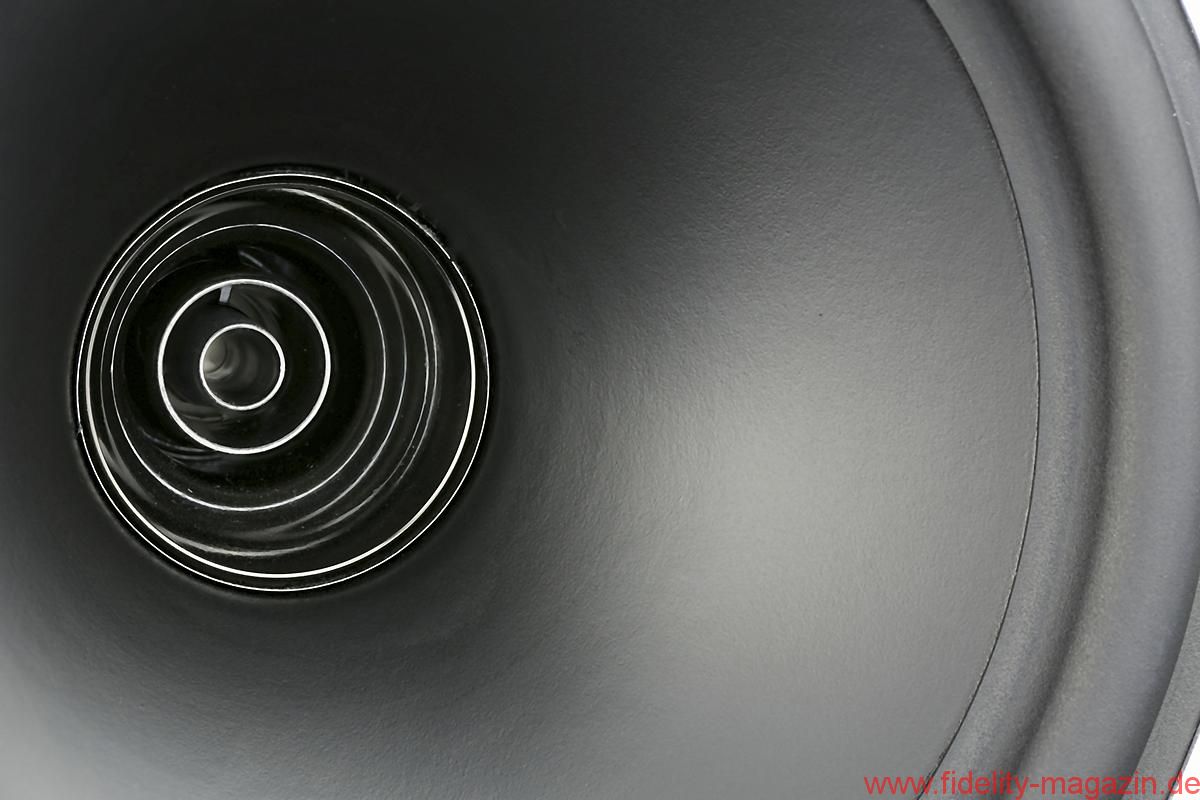 Kalottenhochtöners schafft Tannoy eine homogene Einheit von Ort und Zeit, alle Schallereignisse im Mittel- und Hochton starten an ein und demselben Punkt. Eine konstruktive Eigenheit des Dual-Concentric-Treibers, die in meinen Ohren den Unterschied zu anderen Lautsprechern dieser Bauart ausmacht und es Tannoy erlaubt, den Hochtöner ohne Laufzeitkorrektur ganz einfach bei 1500 Hertz mit sechs Dezibel zu filtern. Sein kurzes Horn, das exakt an die Membran des Mitteltöners ankoppelt und dadurch exponentiell verlängert wird, ist so berechnet, dass es ihm hilft, seine perfekte Phasenlage wiederzufinden. Sie erinnern sich, Nivea-Creme? Daran gibt es nichts zu verbessern.
