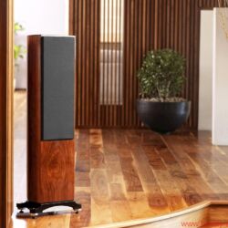 Dasselbe könnte man auch vom DC-Koax denken, der selbstverständlich auch in der Definition DC8 Ti die Hauptrolle spielt. Trotzdem finden die Schotten immer wieder einen Weg, ihr legendäres Chassis kontinuierlich weiterzuentwickeln oder behutsam an Gehäusevorgaben anzupassen. Hier hat es die Form eines Achtzöllers mit Papierfaser-Membran und einen Druckkammer-Tweeter aus Titan mit kurzem Waveguide. Das T-Modell („T“ für „Tower“) erhält gegenüber der kompakten Standard-Acht Tieftonunterstützung von einem genauso großen Bass-Treiber, der in der zierlich sich nach hinten konisch verjüngenden Standbox 43 Liter Hubraum mit Bassreflex-Turbo nutzen kann. Wie zufällig passend zur grundsoliden und vernünftigen DC8 Ti, befindet sie sich in der hierarchischen Mitte der Definition-Reihe, welche wiederum von höherwertigen wie günstigeren Modellserien flankiert wird. Mit 6000 Euro ist sie für die meisten Liebhaber erschwinglich und in Anbetracht der piekfeinen Verarbeitung und kundigen Materialauswahl nicht zu teuer. Klanglich darf man bei Tannoy immer gespannt sein und wird fast nie enttäuscht.