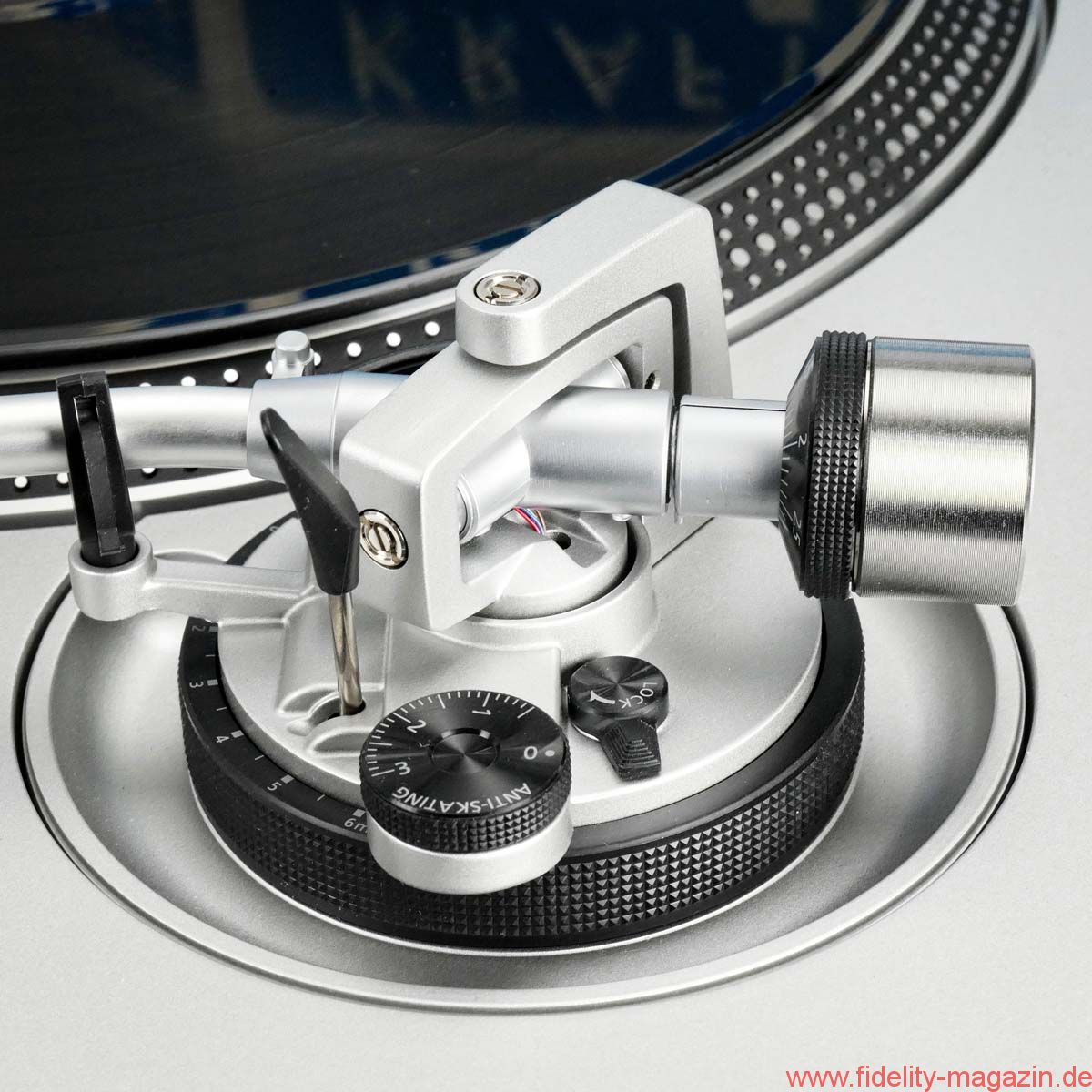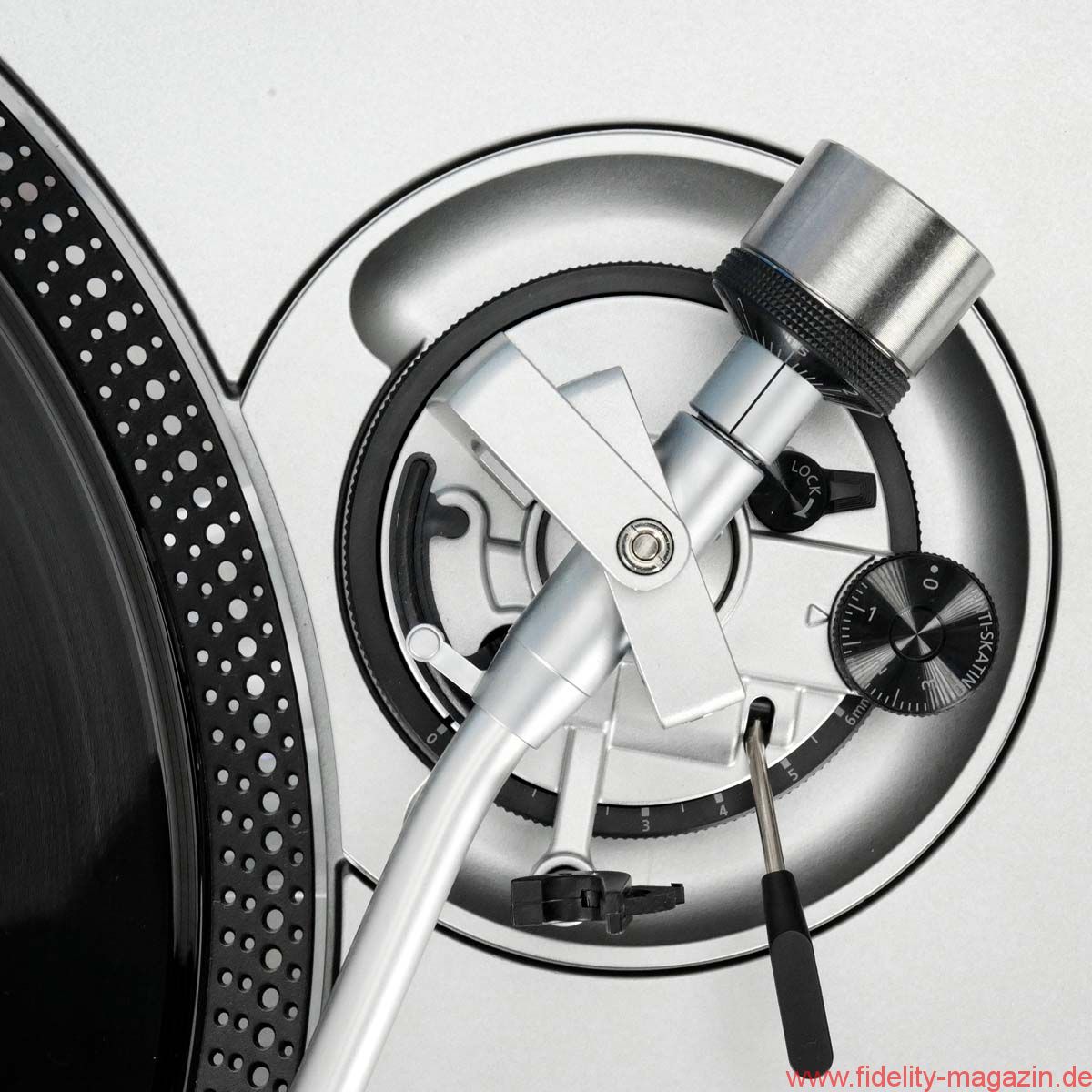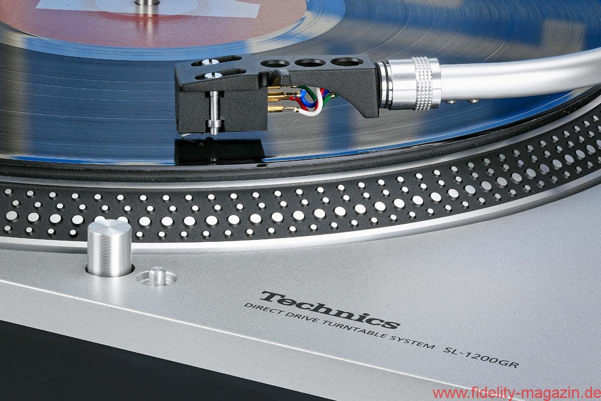 Während das Tonarmrohr beim SL-1200G aus Magnesium besteht, kommt beim SL-1200GR Aluminium zum Einsatz. Auch werden einige Teile allem Anschein nach etwas kostengünstiger hergestellt. Das ändert aber nichts daran, dass dieser Tonarm konstruktiv betrachtet ganz nah an der Perfektion ist. Das betrifft nicht nur die geniale Einstellungsmöglichkeit der Tonarmhöhe, auch die Auflagekrafteinstellung des statisch ausbalancierten Tonarms funktioniert so genau, dass wohl nur Perfektionisten unbedingt eine Tonarmwaage verwenden werden. Seine Kugellager sind so leichtgängig wie spielfrei. Einzig der Lift könnte etwas feinfühliger zu Werke gehen. Leider gehört die äußerst praktische Kunststofflehre von Technics zur Justage des Tonabnehmers in der Headshell nicht zum Lieferumfang.