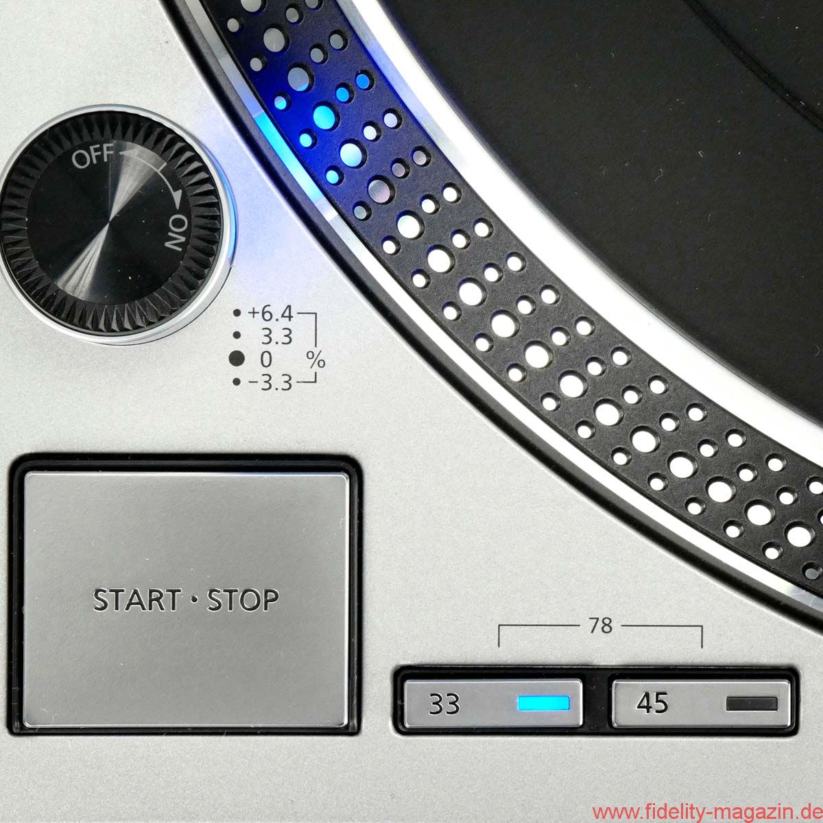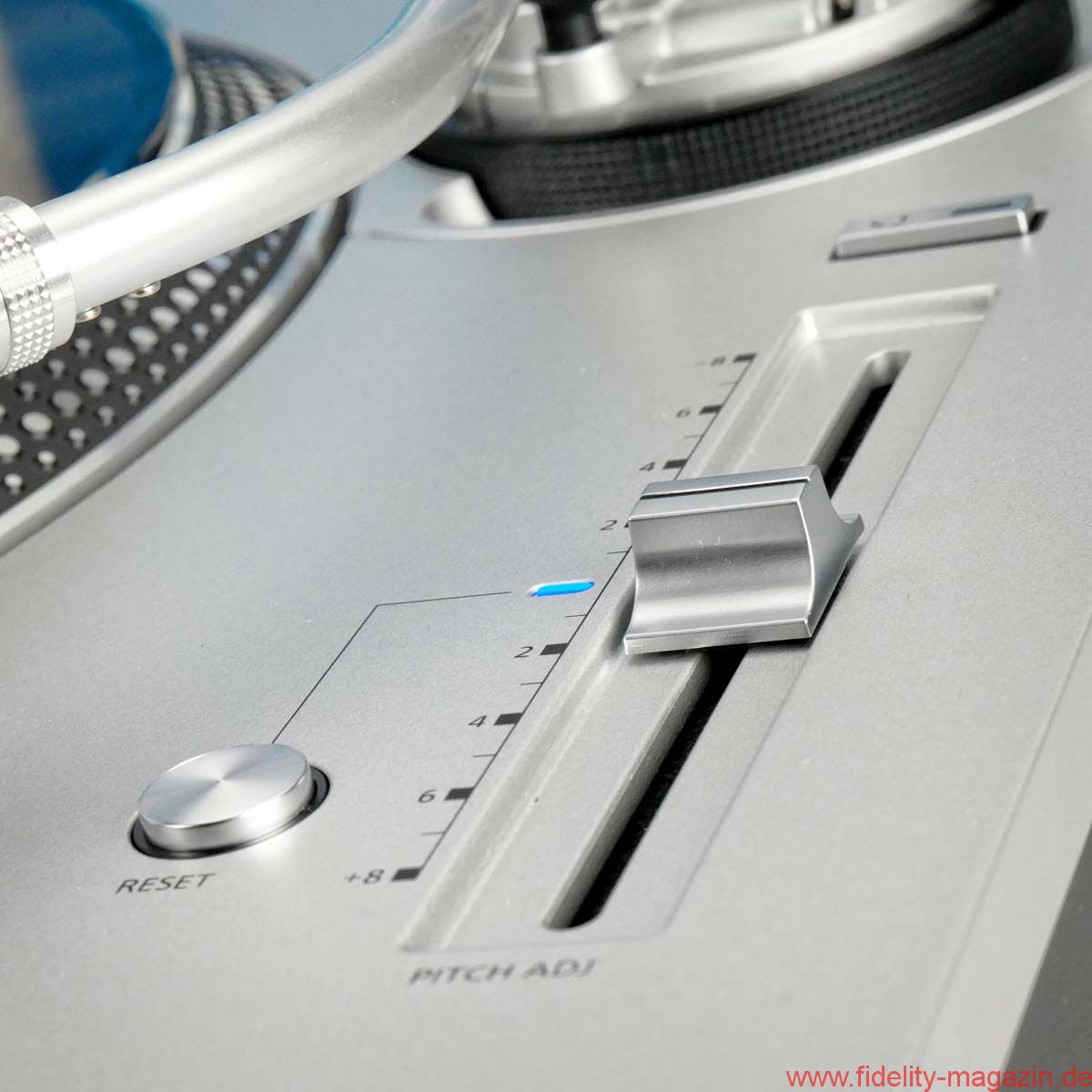 Der eisenlose Direktmotor besitzt im GR nur einen einteiligen Rotor, was sich zwar auf die Antriebskraft, nicht aber auf die entscheidende Drehzahlkonstanz auswirkt. Die ist bei allen mir bekannten quarzgesteuerten Direktläufern jenseits von Gut und Böse. Berücksichtigt man alle Reduzierungen, so ist einerseits der Aufpreis zum teureren Bruder einleuchtend, andererseits ist auch der SL-1200GR so gut verarbeitet, dass man kaum von einem Billigheimer sprechen kann. Darüber hinaus verfügen beide 1200er-Varianten über exakt die gleiche Funktionalität. Dazu gehören die nicht mehr fest installierten Kabel für die Stromversorgung und die Signalweiterleitung, die drei Umdrehungsgeschwindigkeiten 33, 45 und 78, die höhenverstellbaren Füße, die vorbildliche Staubschutzhaube sowie ein S-förmiger Tonarm mit abnehmbarer Headshell nach SME-Standard. Insgesamt drängt sich der Eindruck auf, dass man sich schon gut überlegen sollte, ob man die 2000 Euro Aufpreis zum 1200G nicht lieber in Schallplatten investiert.