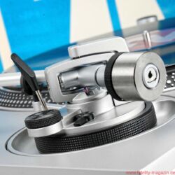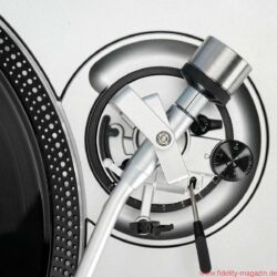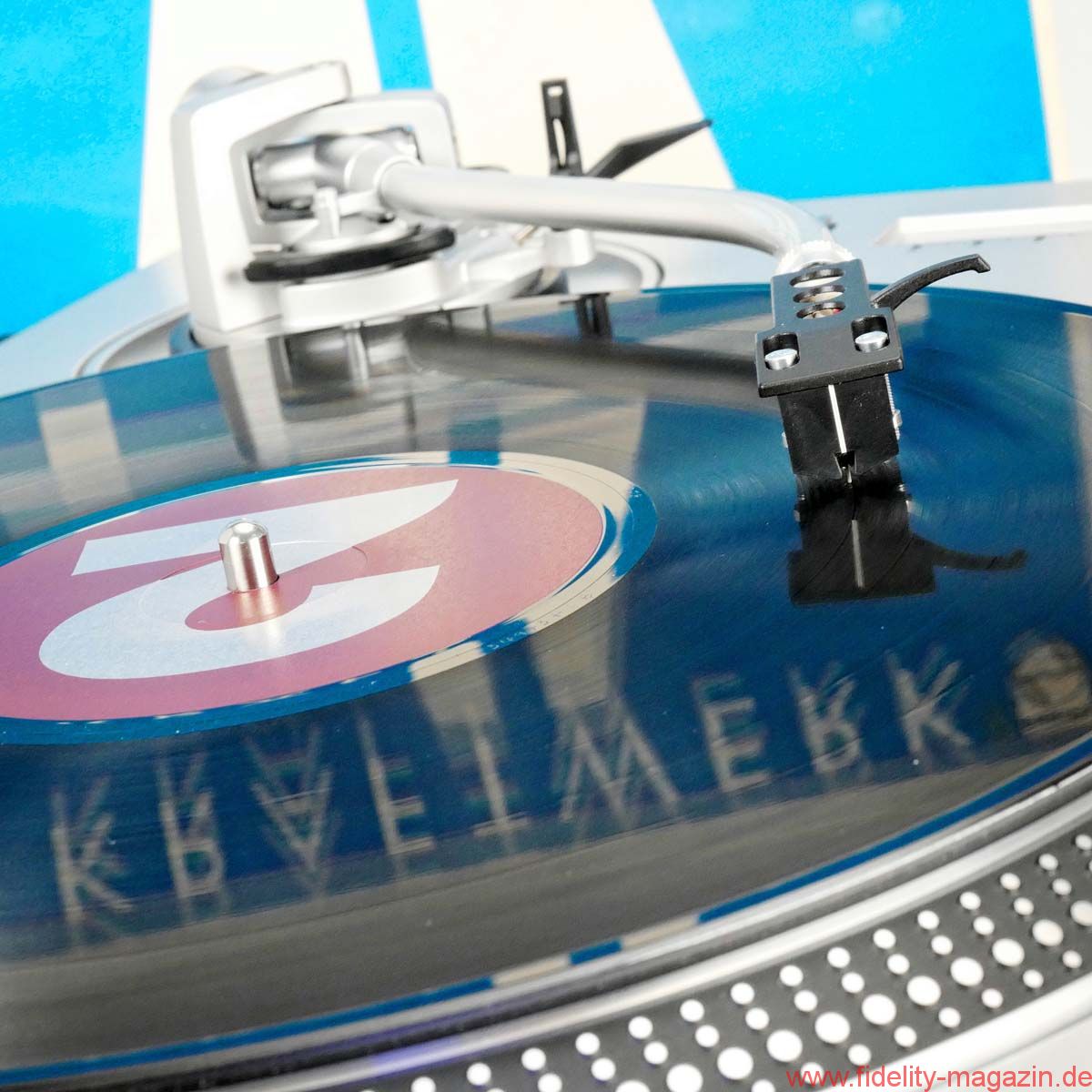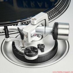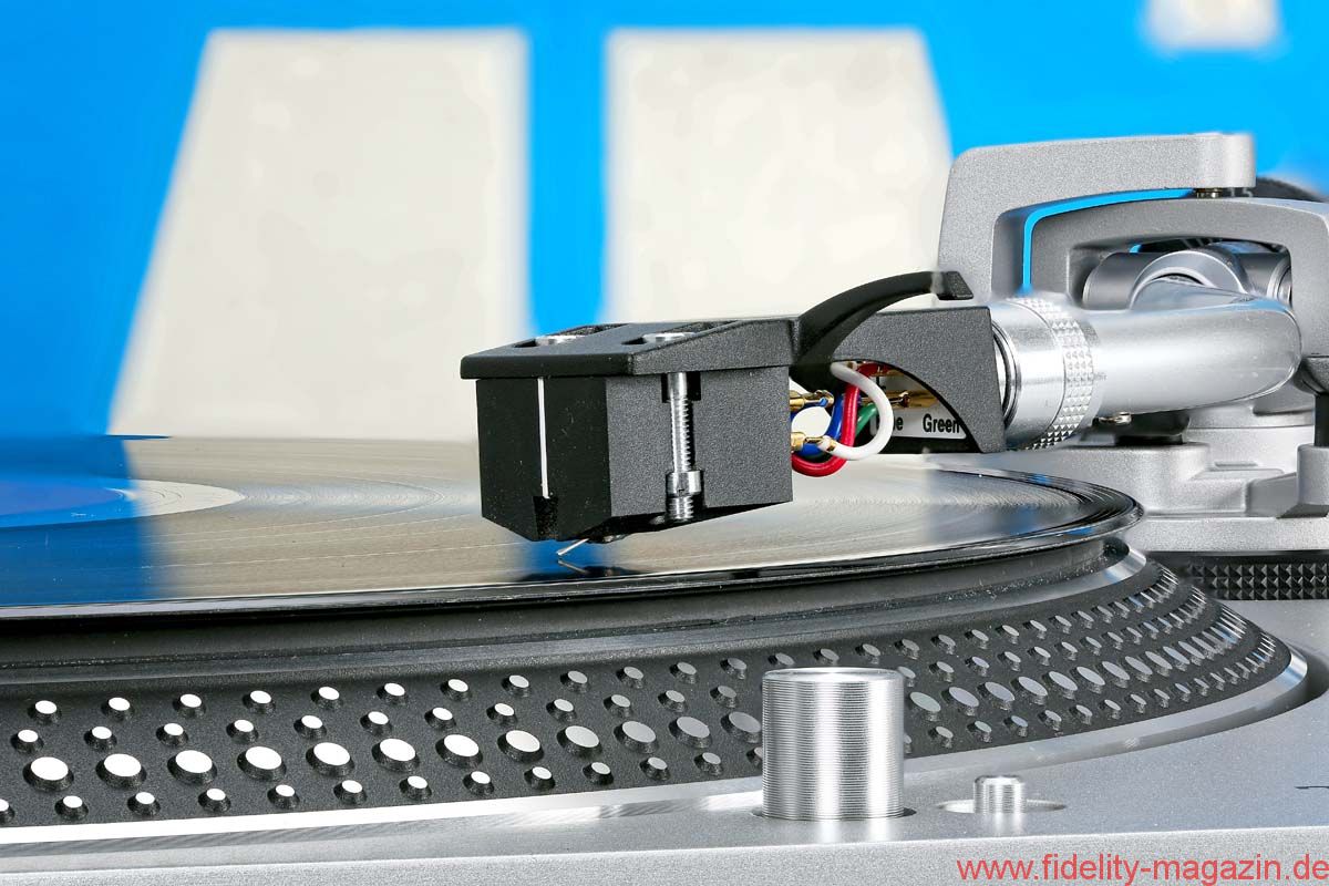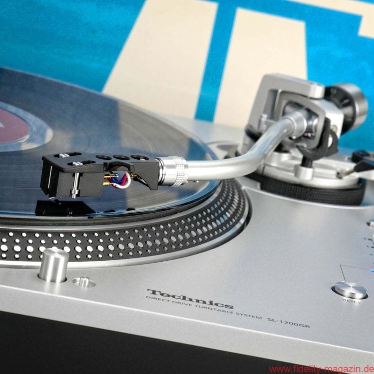 Resonanztests mit den mir zur Verfügung stehenden Tonabnehmern deuten darauf hin, dass der neue Tonarm eine etwas höhere effektive Masse als der des SL-1210 Mk2 (12 g) aufweist. Leider findet sich in den Unterlagen zum GR keine diesbezügliche Herstellerangabe. Ich vermute sie in Verbindung mit der Originalheadshell bei zirka 15 Gramm. Dessen ungeachtet kann der Tonarm jedes von mir verwendete Tonabnehmersystem problemlos führen. Selbst das diesbezüglich als schwierig bekannte AEC C91 Black – besser bekannt unter dem Namen Decca – bereitet dem Technics-Tonarm keine Probleme. Die Kombination harmoniert sogar überraschend gut und beweist die universellen Qualitäten dieses weithin unterschätzten Tonarms. Er hat nur ein erwähnenswertes Manko: Will man nämlich eine andere als die ungewöhnlich flach bauende Technics-Headshell verwenden, kann man ihn im Zusammenspiel mit relativ vielen Tonabnehmern an seiner Basis nicht weit genug absenken, um die gewünschte Parallelität des Systems zur Plattenoberfläche herzustellen. Ein Tipp an dieser Stelle: Man besorge sich die deutlich dickere Gummimatte des Mk2. Damit kann man die LP genügend anheben, ohne dass es den optischen Gesamteindruck stört.