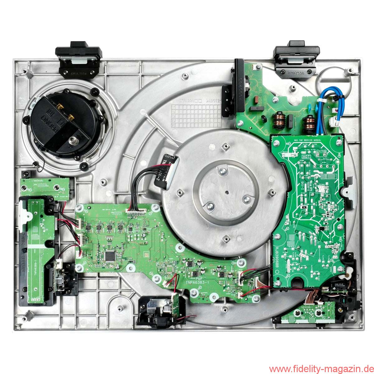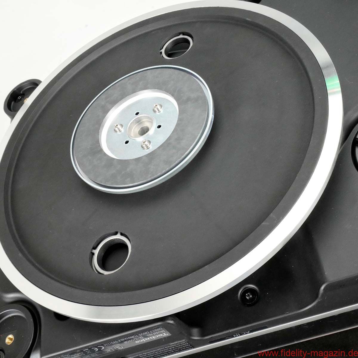 Das „GR“ im Namen des Technics-Plattenspielers dürfte wohl für „Grand Class Reduced“ stehen, denn der Nachzügler ist offensichtlich eine abgespeckte Version des G-Modells. Das lässt sich schon am Gewicht ausmachen: Der GR wiegt mit gut elf Kilogramm praktisch genauso viel wie sein Vorgänger, aber deutlich weniger als sein großer Bruder mit 18 Kilo. Der Großteil des Gewichtsverlusts ist auf die weniger massive Deckplatte, eine leichtere, aber ebenso wirksame innere Dämpfung des Gehäuses, den um ein Kilogramm leichteren Teller sowie den vereinfachten Antrieb zurückzuführen.