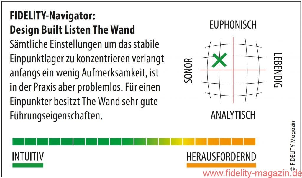 Seit mehr als dreißig Jahren schon prägt Simon Brown die Selbstbauszene Neuseelands. The Wand ist das erste professionelle Serienprodukt seiner Firma Design Build Listen. Der Name des Tonarms lässt sich mit „Stift“, „Stab“ oder auch „Zauberstab“ übersetzen, „to wand“ kann „abtasten“ bedeuten. In den vergangenen Jahren durchlief der Tonarm eine Reihe kleinerer Modifikationen, bis er jetzt als The Wand Plus endlich auch in Deutschland auf den Markt kam.