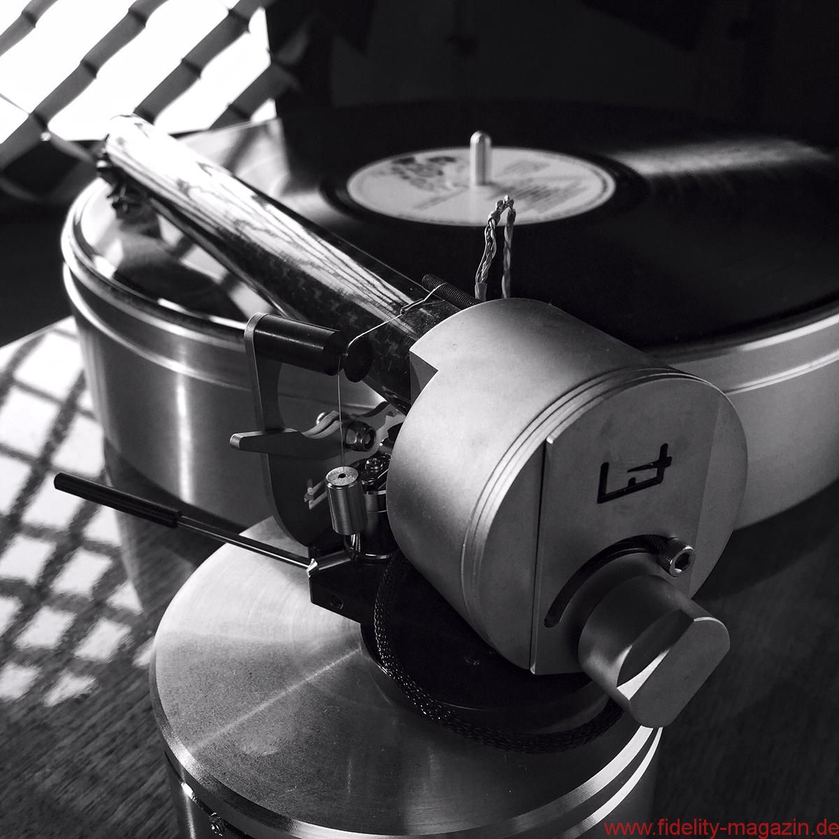 Hinsichtlich des Unipivot-Designs schlägt Simon Brown ebenfalls einen eigenen Weg ein. Wo andere Einpunkter mithilfe doppelt und dreifach gehärteter Spitzenlager oder ausgewiesen schlüpfriger Materialien versuchen, Reibung zu minimieren, bis sie möglichst keine Rolle mehr spielt, setzt Brown auf definierten Widerstand und orientiert sich an Kugelgelenken. In der Glocke befindet sich eine Halbkugel von etwa der Größe eines Schrotkorns, die in eine Pfanne auf dem Lagerdorn schlüpft; im Prinzip also ein um 180 Grad gedrehtes Einpunktlager. Der Lagerdorn wird vorher etwas gefettet, um das gefürchtete Moment des Losbrechens zu verhindern, was zu einem geringfügig zähen oder sämigen Lauf des Arms führt, weil er einen winzigen, aber konstanten Reibungswiderstand überwinden muss. Brown erhofft sich davon, das Taumeln vieler spitzengelagerter Arme zu vermeiden, das sich in zittriger Wiedergabe manifestieren kann. Und tatsächlich lässt sich die „Kurvenlage“ und das Handling des Wand-Arms eher mit kardanischen als mit tendenziell nervösen Einpunktlagern vergleichen. Sicherlich hat dies seine Ursache auch in der Massekonzentration: Alle balancierenden Elemente befinden sich in unmittelbarer Nähe unter dem Drehpunkt. Trotz seiner nur 12,5 Gramm effektiver Masse klingt er analog zu schweren Armen mit wenig Antiskating besser, was meiner Ansicht nach bereits auf seinen satten Sitz in der Rille hinweist.