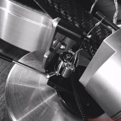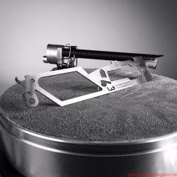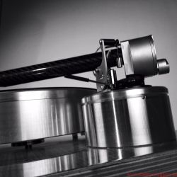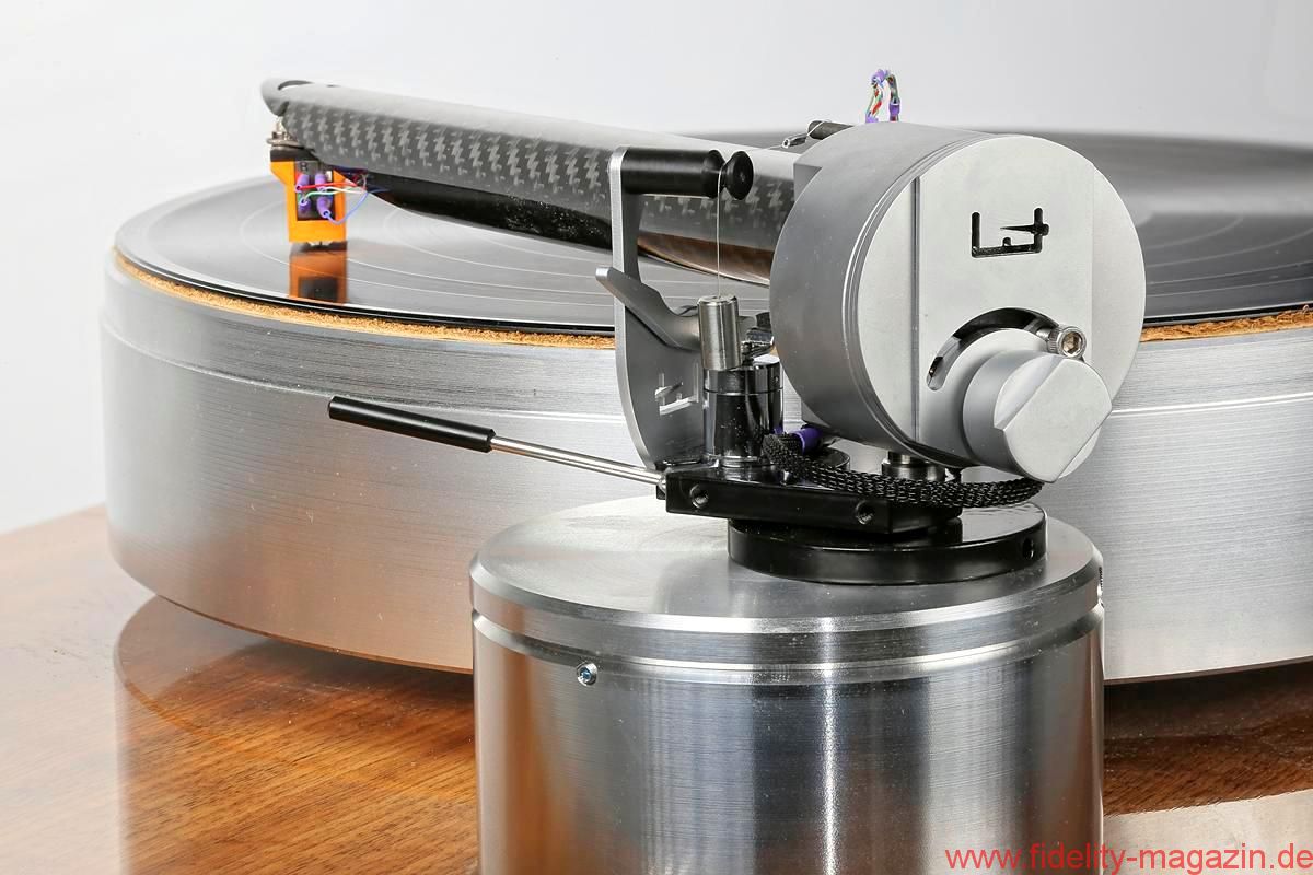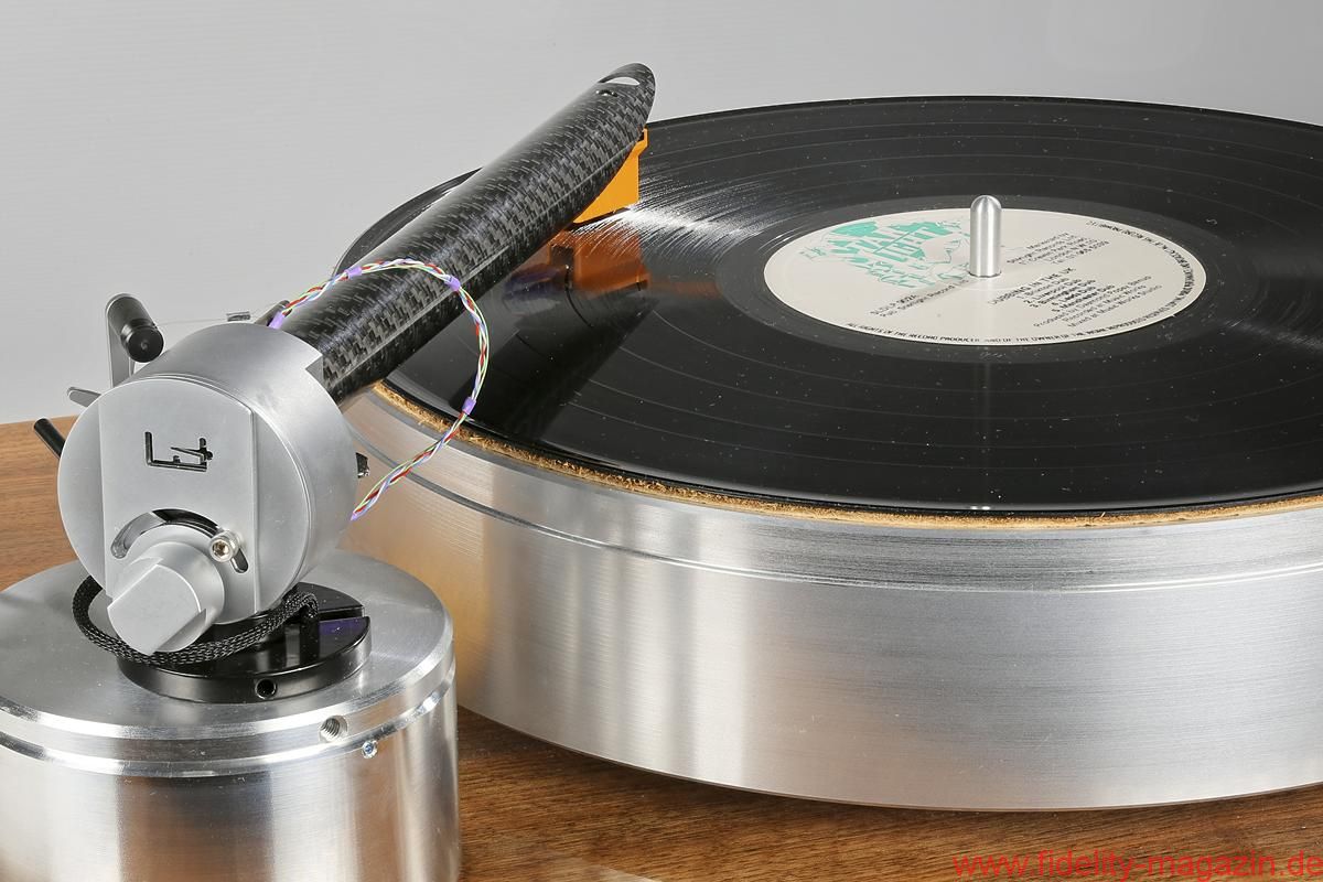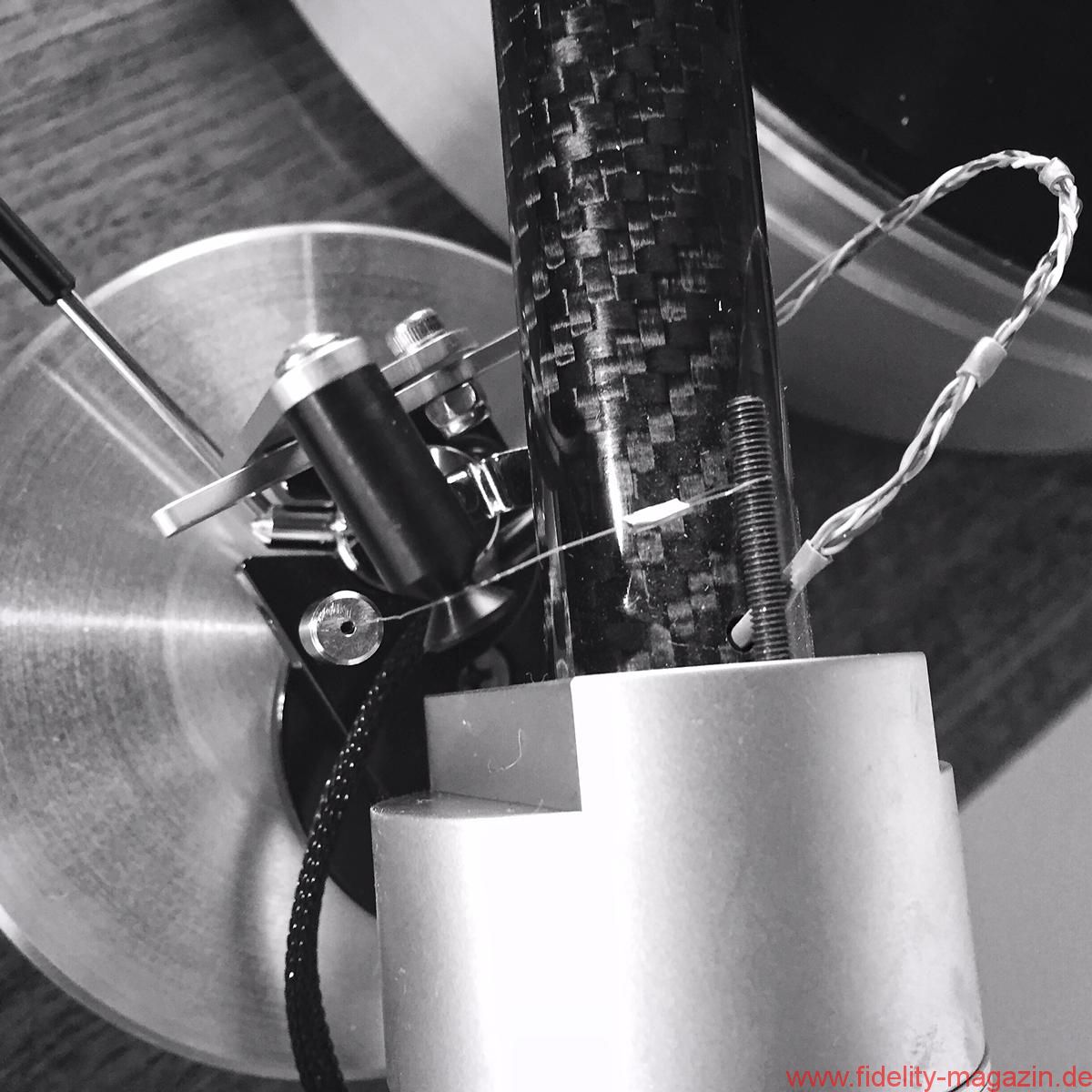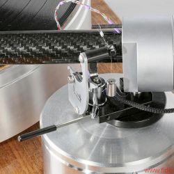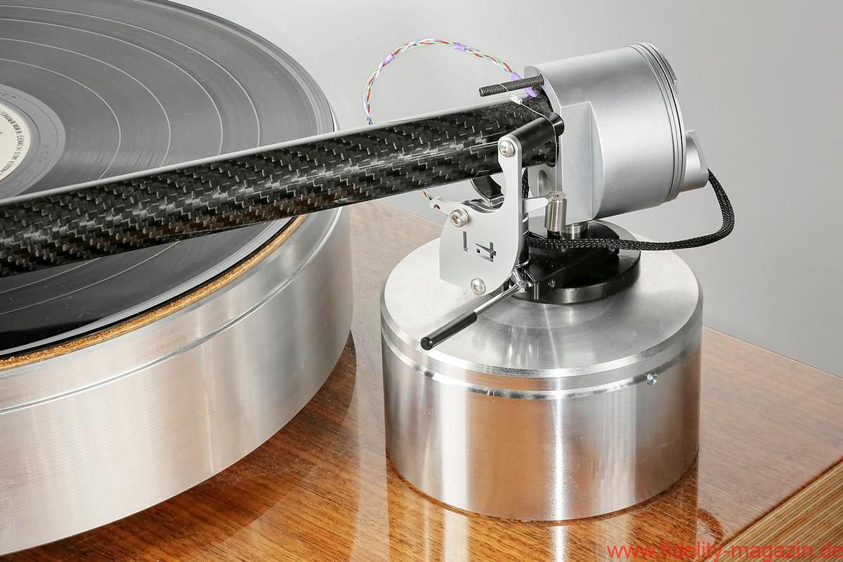 Oder erinnern Sie sich an die beeindruckenden Continuum-Laufwerke, deren Tonarm – ich glaube, er hieß Cobra – durchaus Ähnlichkeiten mit The Wand, dem neuseeländischen Testobjekt, aufwies. Hauptsächlich wegen des aststarken Armrohrs, dessen Umfang die meisten anderen Tonarme zu Stricknadeln degradiert. Der muskulöse Auftritt scheint mir eine Spezialität dortigen Designs zu sein. Brown behauptet, sein Tonarm sei viermal so verwindungssteif wie „normale Tonarme“, was eine Bezugsgröße, auf die man ihn festnageln könnte, aber vermissen lässt. „Extrasteif“ notiere ich im Geiste dennoch als versprochene Eigenschaft. The Wand besteht aus einem einteiligen, 22 Millimeter durchmessenden Carbonrohr, an dessen vorderem, in flachem Winkel abgeschrägtem Ende der Tonabnehmer in einem Metallträger mit Halbzollbohrungen Platz findet; die Kröpfung orientiert sich an der Baerwald-Geometrie, und es gibt keine Headshell mit Langlöchern. Die Lagerglocke aus antimagnetischem Edelstahl bildet zugleich das Gegengewicht des ungewöhnlichen Einpunktlagers; auch der Nadelazimut wird direkt am Drehpunkt justiert. Jedes Bauteil wirkt sich klanglich aus, ergo steht alles Überflüssige dem neutralen Klang im Weg, so lautet ein in langen Jahren intensiver Entwicklung gewonnener Grundsatz Browns. Dem er mit der kuriosen von unten her umschließenden Armarretierung gleichwohl untreu wird. Mein Tipp: Einmal zurückschieben und dann vergessen. Auf nur 500 Gramm Gewicht bringt es der reduzierte Arm und sollte auch von den meisten Subchassis-Laufwerken ausbalanciert werden können. Brown bietet sogar eine passende Basis für das Armboard des LP12 an – ziemlich selbstbewusst! Ebenso gibt es für Technics’ 1200er-Familie ein spezielles Mounting-Kit – diese Kombination kann ich mir sehr gut vorstellen, und zumindest optisch macht sie aus dem Massenprodukt von Panasonic einen originellen und individuellen Dreher.