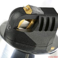 Im Mittelpunkt des Spulenkreuzes schließt sich der Nadelträger an – ein gerades Röhrchen aus gehärtetem Aluminium –, an dessen Spitze sich wiederum ein Diamant mit Vital Fine Line befindet, der offenbar eine sehr geringe Masse besitzt, wie sich leicht unterm Mikroskop erkennen lässt. Der Tonabnehmer selbst wiegt 8,8 Gramm und ist somit von jedem mir bekannten Tonarm problemlos ausbalancierbar. Die recht geringe Ausgangsspannung jedoch verlangt nach einem rauscharmen MC-Vorverstärker. Idealerweise soll das Figaro an einer Impedanz mit 100 Ohm angeschlossen werden. Für die Betreiber von Übertragern sei noch angefügt, dass es mit einer Eigenimpedanz von 5 Ohm zu den niederohmigen MCs gehört.