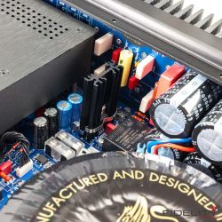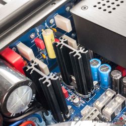 Der mechanische Aufbau des Verstärkers ist sehenswert. Konsequente Doppelmono-Technik, extrem kurze Signalwege und höchstwertige Bauteile in „audiophile grade“ versprechen langfristige Zuverlässigkeit und thermische Stabilität. Der Diablo 120 ist dank sorgfältiger elektrischer und mechanischer Erdung vorbildlich stumm, was Eigengeräusche betrifft. Diese Punkte sind mir wichtig. Ich mag Geräte, die bis zum Ende durchdacht sind. Sobald ich irgendwo eine technische Schwäche oder dergleichen entdecke, geht bei mir der Daumen nach unten. Was beim Diablo 120 auch bei eingehender Betrachtung nicht passiert.