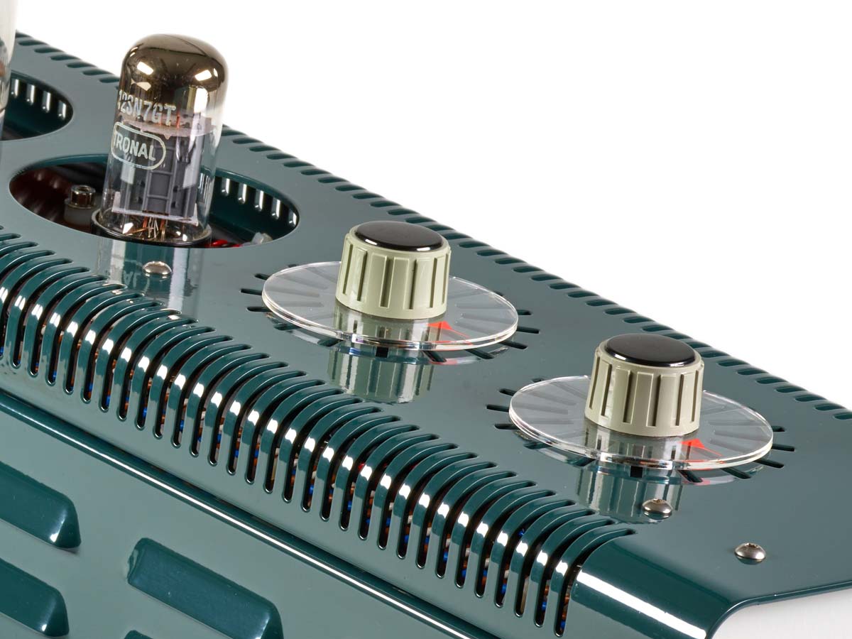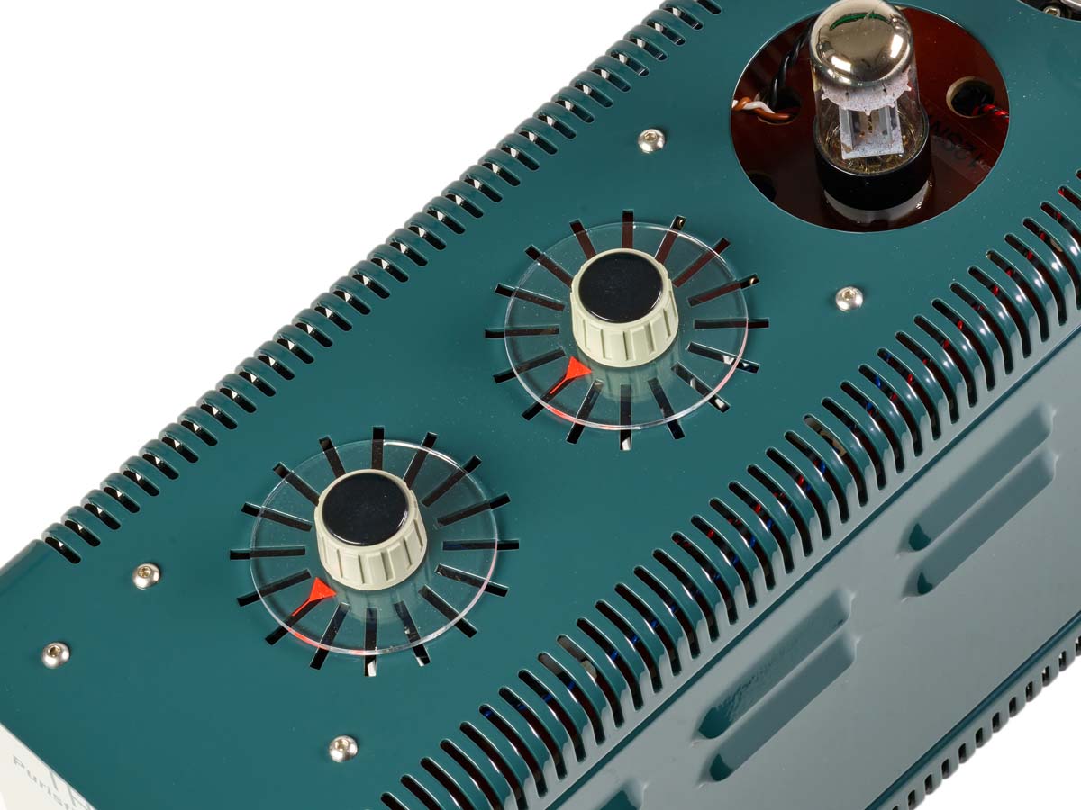 Konzept: Röhren-Vollverstärker im getrennten Doppel-Mono-Design – und mit getrennten Pegelstellern; manuelle Lautstärkeregelung über zwei Drehpotentiometer mit geringer Winkelempfindlichkeit