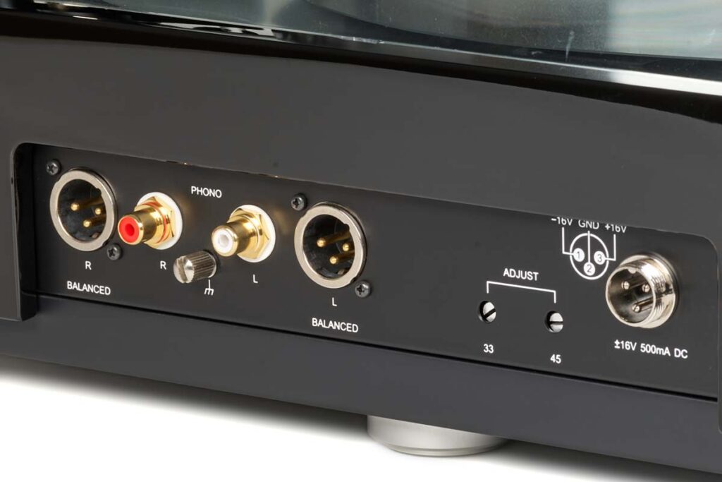 Nicht ganz so retro zeigt sich das Anschlussfeld auf der Rückseite. Cinch war zwar schon in den Siebzigern Standard, eine symmetrische Verkabelung inklusive XLR zählt auch heute nicht zur alltäglichen Grundausstattung eines Plattenspielers. Eigentlich bedauerlich, da ein Tonabnehmer per se ein symmetrisches Signal ausgibt. Wäre da nicht der Mangel an geeigneten Spielpartnern mit ebensolchen Eingängen im finanzierbaren Bereich. Doch auch via Cinch lässt der TD 1600 nichts anbrennen, ja generiert sich bei eher langweilig konservierten Scheiben als Brandbeschleuniger. Auch ein von mir gelegentlich kritisiertes Manko wurde beseitig: Endlich gibt es eine vernünftige Stromversorgung für den Thorens. Das Netzteil des TD 1600 macht einen überaus vertrauenerweckenden Eindruck. Statt an einem Netzteilchen mit Klinkenstecker zu nuckeln, saugt der TD 1600 an einem beeindruckend üppigen Kistchen, das nichts anderes zu tun hat, als den nötigen Strom bereitzustellen und umgehend zur weiteren Verarbeitung an das Anschlussfeld zu senden. Die aufwendige Motorelektronik versteckte Entwickler-Urgestein Walter Fuchs tief im Inneren der Zarge. Hier wird synthetisch eine in Phase und Amplitude perfekt auf den Motor abgestimmte Wechselspannung generiert, die für einen sahnigen Gleichlauf bei traumhaften Störabständen sorgt. Alles, was der Motor dann noch an Schwingungen erzeugt, wird vom Antriebsriemen geschluckt oder im Subchassis eliminiert. Dieses ruht stehend auf drei Federn, anstatt wie üblich an solchen unter dem Oberdeck zu hängen. So schwingt das Chassis schön kolbenförmig und isoliert die Abtastung des empfindlichen Musiksignals von störenden Umwelteinflüssen. Die Aufhängung verkraftet selbst den Einsatz eines Plattengewichts bis zu einem halben Kilo, ohne die isolierende Wirkung des Subchassis zu eliminieren. Wer auf schwerere Vertreter vertraut, kommt leider nicht umhin, das Chassis etwas nachzujustieren. Klappt dank der von unten zugänglichen Stellschrauben problemlos, erfordert allerdings eine helfende Hand. Macht man im Regelfall einmal beim Aufbau, daher ist der Aufwand absolut zu vernachlässigen.
