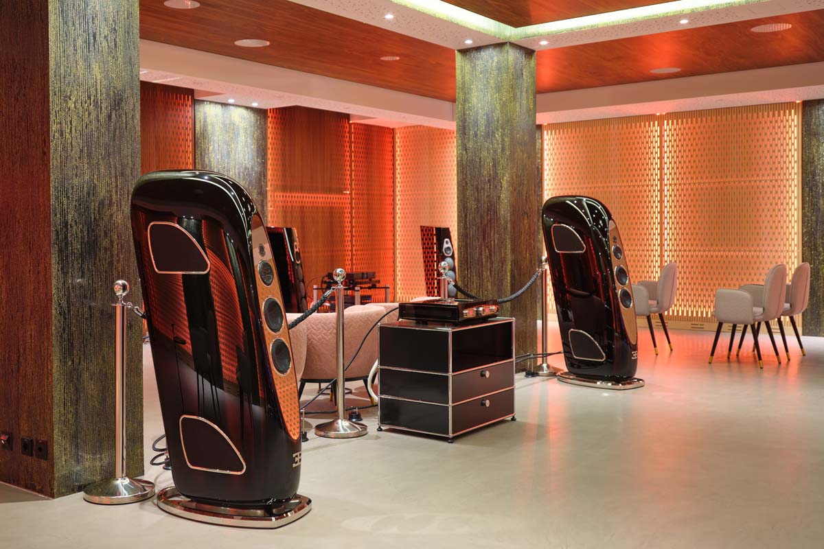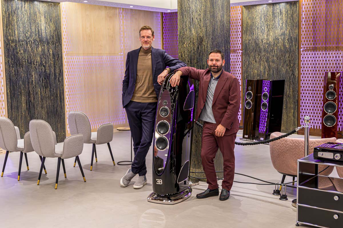 Im selben Jahr entschied sich Tidal Audio für eine „stumme“ Ausstellung auf der HIGH END, was den Vorteil hatte, dass Janczak und sein Team nur ein Exemplar der größeren Modelle nach München schaffen mussten. Besucher erinnern sich vielleicht auch, dass ein motorisierter Showstopper im Atrium parkte, nur wenige Schritte vom Raum der Hürther entfernt. Und so kam es, dass der Entwickler beim Bewundern des Chiron mit den Herrschaften von Bugatti ins Gespräch kam – und die beim späteren Gegenbesuch angetan waren von der Qualität seiner Klangskulpturen. Beiden Seiten war sofort klar, dass die Kompromisslosigkeit der Unternehmen perfekt zueinander passte. Es gab nur eine Sache zu klären: Wenn Bugatti sich auf HiFi einließe, dann mit etwas ganz und gar Einzigartigem, einem HiFi-System, das sich mit nichts am Markt vergleichen ließ. Und genau dafür hatte Janczak mit seiner Konzeptstudie eine Lösung parat.