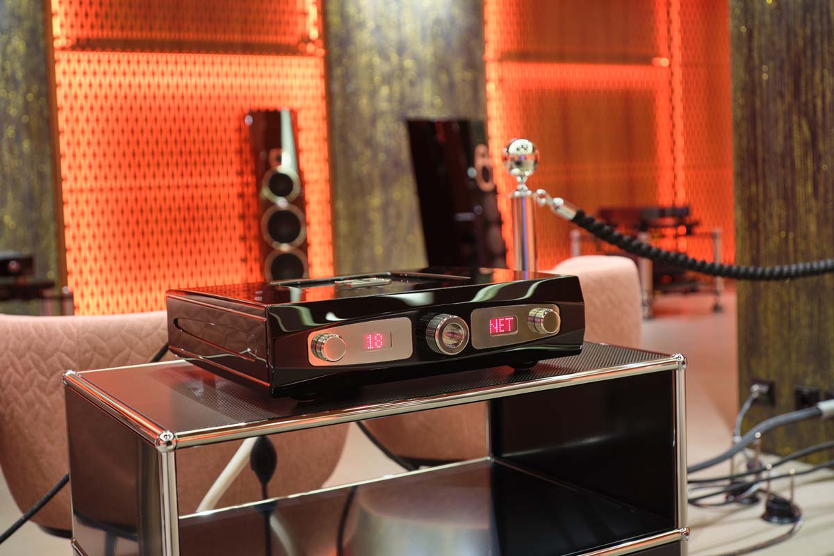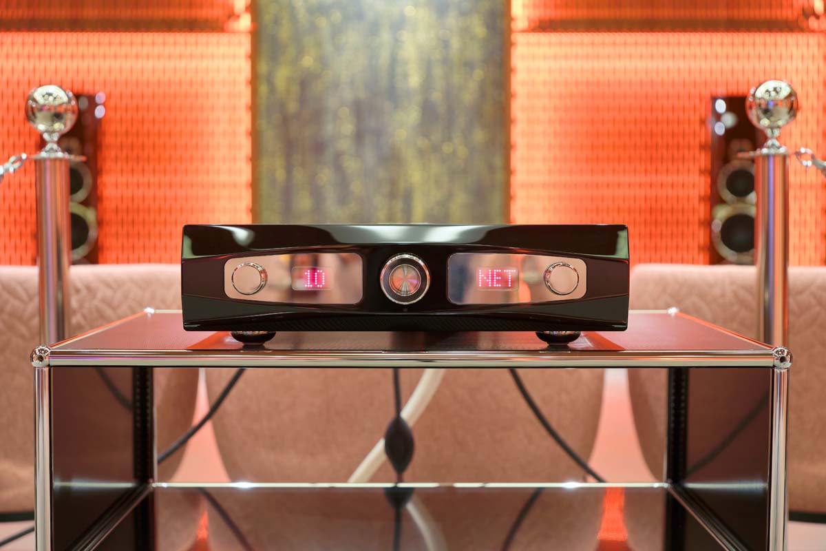 Konzept: Kontrollzentrum für die Royale; diskreter D/A-Wandler mit Lossless-Pegelsteuerung | Anschlüsse: USB Audio, S/PDIF via Cinch, BNC, AES/EBU sowie optisch | Besonderheiten: integrierter Streamer mit DLNA, AirPlay, Roon ready und Zugriff auf verschiedene Streamingdienste; Steuerung via iOS-App | Ausführungen: Metallgehäuse mit individuell wählbarer Lackierung und verschiedenen Inlays (Metallgitter, Leder, Carbon etc.) | Maße (B/H/T): 46/12/42 cm | Gewicht: 33 kg