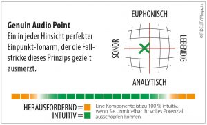 Mit dem Point ist Genuin Audio ein Einpunkter gelungen, der es einerseits mit der absoluten Neutralität eines kardanischen Brinkmann aufnehmen kann und andererseits den klaren, stämmigen und direkten Charakter der vertriebseigenen Genuin-Kette kongenial unterstützt. Sein Fußabdruck wirkt minimal breiter als jener des deutschen Klassikers, was vor allem mit den beiden schlanken Abnehmern von Lyra und Audio Technica deutlich wird. Allerdings zähmt er die überschüssige Hochtonenergie des AT50ANV, ohne seine Feinauflösung zu beschneiden. Das Lyra Kleos SL besaß im Brinkmann die lichte Strahlkraft eines Reflektors, im Point wirkte es ein wenig dunkler, büßte aber nicht an Transparenz ein. Für einen Einpunkter ist die Abbildungsgenauigkeit und der klare Fokus des Point wahrscheinlich einmalig. Sehr gut nachzuhören an Crystal Gayles bachquellenreiner Stimme auf dem Soundtrack zu One From The Heart. Loretta Lynns kleine Schwester hat sich dafür 1982 in die Songschreiberhände ihres Duettpartners Tom Waits begeben. Herausgekommen ist ein fantastisch klingendes Album, das die naive Ernsthaftigkeit der Country-Queen mit Pop-Appeal und den zynischen Nihilismus des damals noch jugendlich klingenden Gossenbarden verschmilzt und zu einer von Ironie freien Idylle erhebt. Vor der knorrigen Stimme von Tom Waits wirkt die von Crystal Gayle noch reiner und zerbrechlicher. Wenn Schmetterlinge singen könnten, müsste es so klingen: ohne Timbre, ohne Resonanzkörper, ohne eigene Färbung. Die kleinste Unregelmäßigkeit der Abtastung kann diesen ecken- und kantenlosen, aber nichtsdestotrotz hochemotionalen Vortrag Gayles im Eröffnungsduett „Once Upon A Town“ empfindlich stören. Aber der Point erlaubt sich keine Schwäche, erliegt nicht der Versuchung des Kitsches, ein weiches Filter darüberzulegen, sondern präsentiert die Stimme schmucklos, wie sie ist: hell, klar und flüchtig wie Morgentau. Insbesondere – wieder einmal – mit dem Clearaudio Da Vinci und mit dem Über-Abtaster Murasakino Sumile ein Erlebnis, das man nicht mehr vergisst. Für Audiophile hält die zweite Plattenseite noch eine besondere Überraschung bereit: etwa nach der Hälfte der Spielzeit rollt eine Kugel quer durchs Bild, die je nach Setup sehr unterschiedlich klingen kann. Mit dem Clearaudio könnte sie aus Elfenbein sein, mit dem Ortofon 2M Black auch aus Kunststoff, das AT50ANV lässt sie wie eine Murmel wirken und das Lyra stellt sie eindeutig als metallen dar. Dass diese feinen Unterschiede überhaupt die Wahrnehmungsschwelle passieren, ist zweifellos dem neutral, aber doch pointiert führenden Genuin Point zu verdanken. Unabhängig vom Preisschild präsentiert sich der durchdacht konzipierte und unkompliziert zu bedienende Tonarm auf Augenhöhe mit einigen der besten Vertretern seiner Gattung.