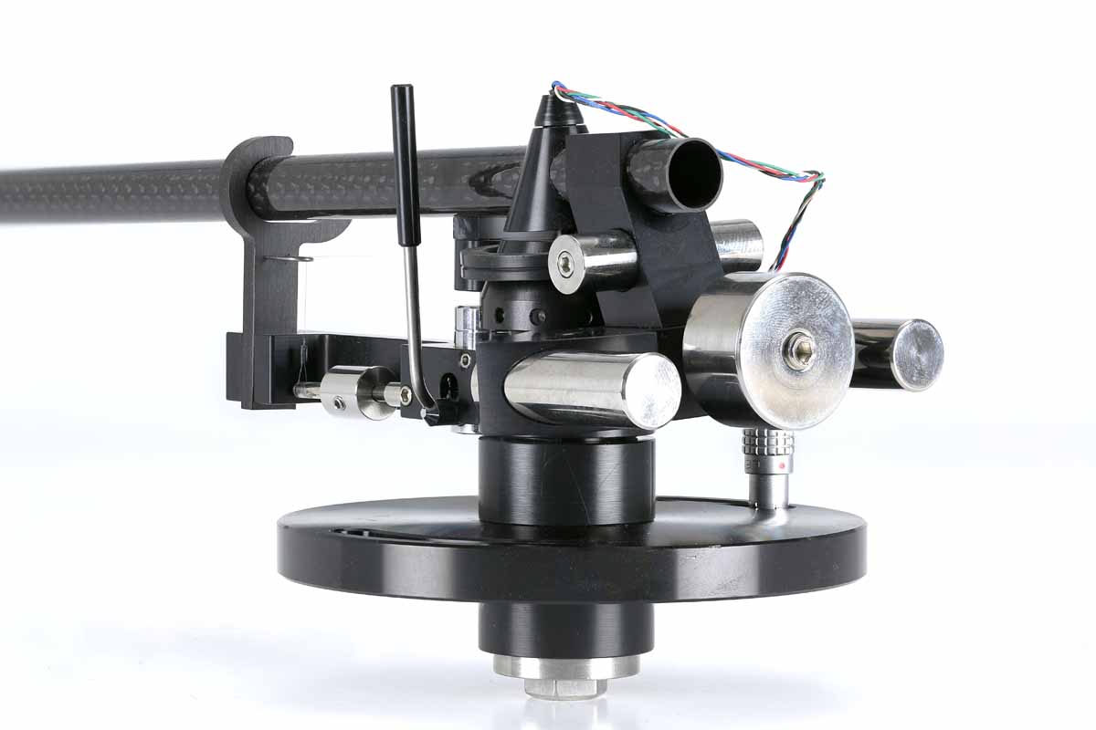 Besonderheiten: Carbon-Armrohr, spezielles Einpunkt-Kugellager, Tonarmoberteil austauschbar (2500 €), Signallitzen mit Lemo-Stecker