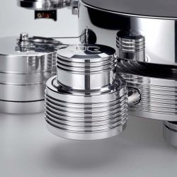 Ausstattung: optional bis zu drei Tonarme und Motoren, Upgrade-Netzteil Konstant M1 Reference (256 €), Halterung für Auflagegewicht (128 €), Extra-Tonarmbasis (1100 €)