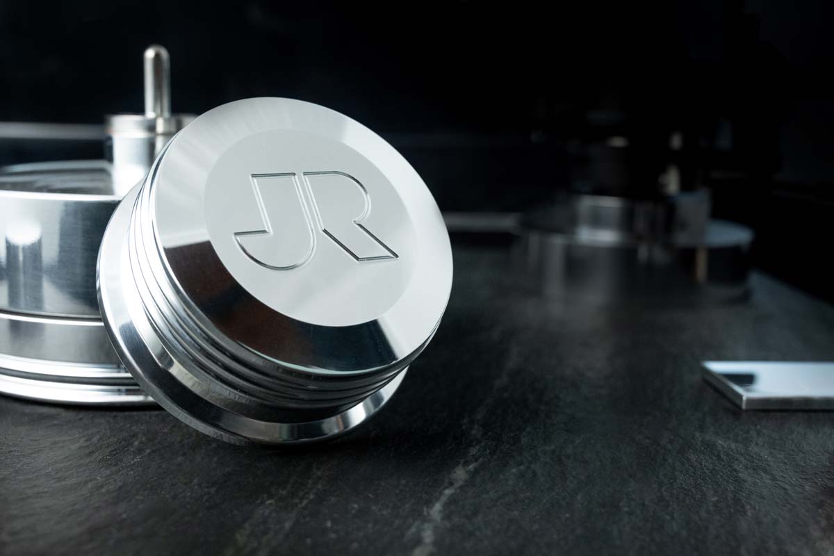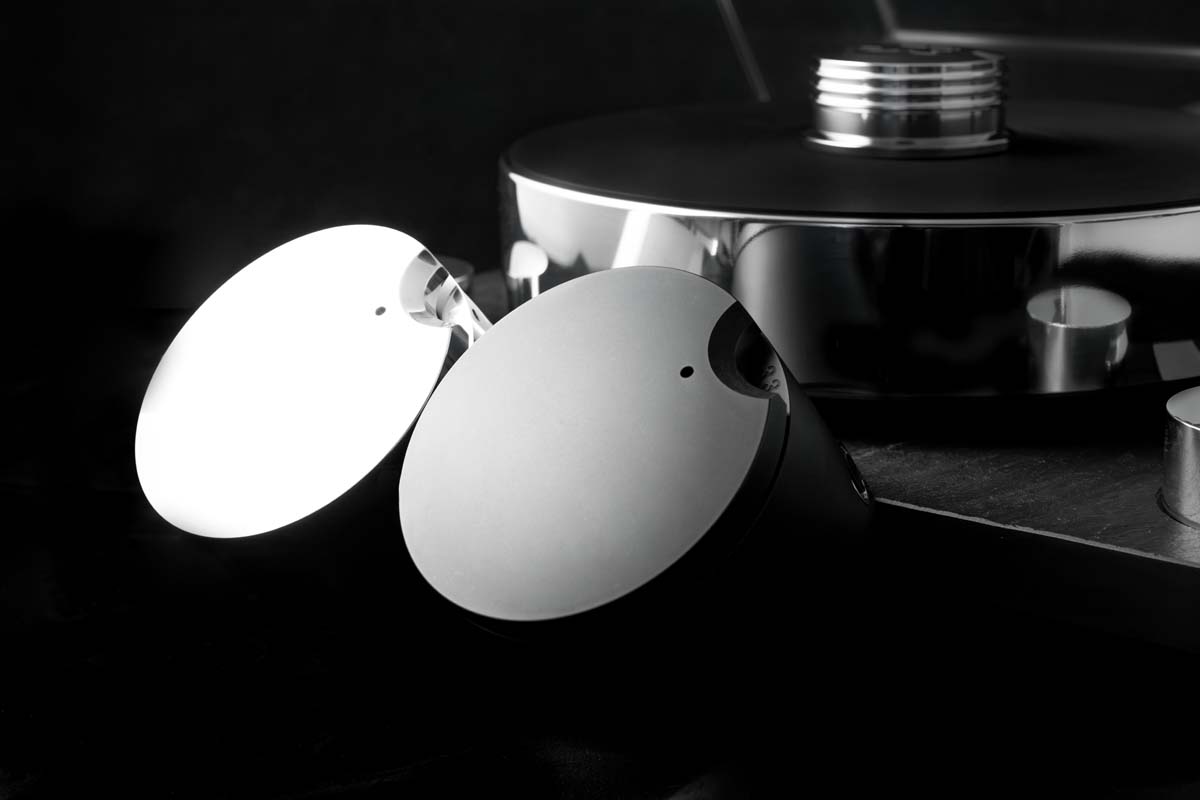 Das bekannte Album Love Over Gold von den Dire Straits (in der remasterten 45-rpm-Edition) reißt mich über den Bellini dynamisch mit, so unmittelbar setzen Gitarren und Drums beim Song „Private Investigations“ ein. Beim aktuellen Album Nach Hause von Reinhard Mey gefällt mir ganz besonders seine sonore Stimme. In diesem Frequenzbereich der menschlichen Stimme ist unser Ohr besonders empfindlich, und so probiere ich exemplarisch, wie sich klanglich eine zusätzliche sehr dünne Tellermatte aus Carbon auswirkt sowie alternative Auflagegewichte aus Holz und Kupfer anstatt des serienmäßigen Plattengewichtes. Dieses besteht stilecht aus Aluminium und passt auch optisch sehr gut zum Bellini. Mit dem Alugewicht klingt es sehr offen, in meinem Setup vielleicht etwas höhenbetonter, was auch nicht mit einem reduzierten Abschlusswiderstand auf 100 Ohm kompensierbar ist. Eine zusätzliche Plattenmatte erweist sich hier nicht als zielführend – das schöne, große Klangbild wirkt dann nicht mehr so strahlend wie das Original. Beim Plattengewicht sieht das Ergebnis etwas anders aus: Mit den genannten alternativen Gewichten lassen sich zum Beispiel die S-Laute und die Sprachverständlichkeit noch ein klein wenig optimieren, wie gesagt in meinem subjektiven Setup. Das ist Feintuning auf allerhöchstem Niveau der Musikwidergabe, und über den Transrotor Bellini gelingt das spielerisch leicht. Weil das Laufwerk eine Komposition aus Substanz und Akkuratesse ist, kann es auch über Generationen Musik vermitteln. Bellini würde es wohl sehr erfreuen!