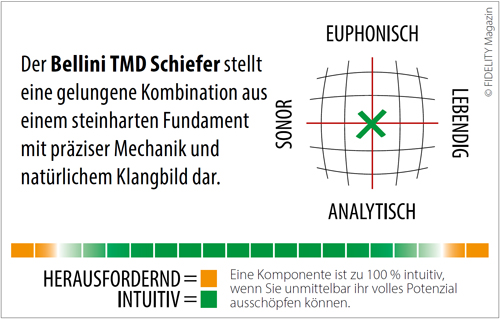 Der Transrotor Bellini TMD Schiefer stellt eine gelungene Kombination aus einem steinharten Fundament mit präziser Mechanik und natürlichem Klangbild dar.