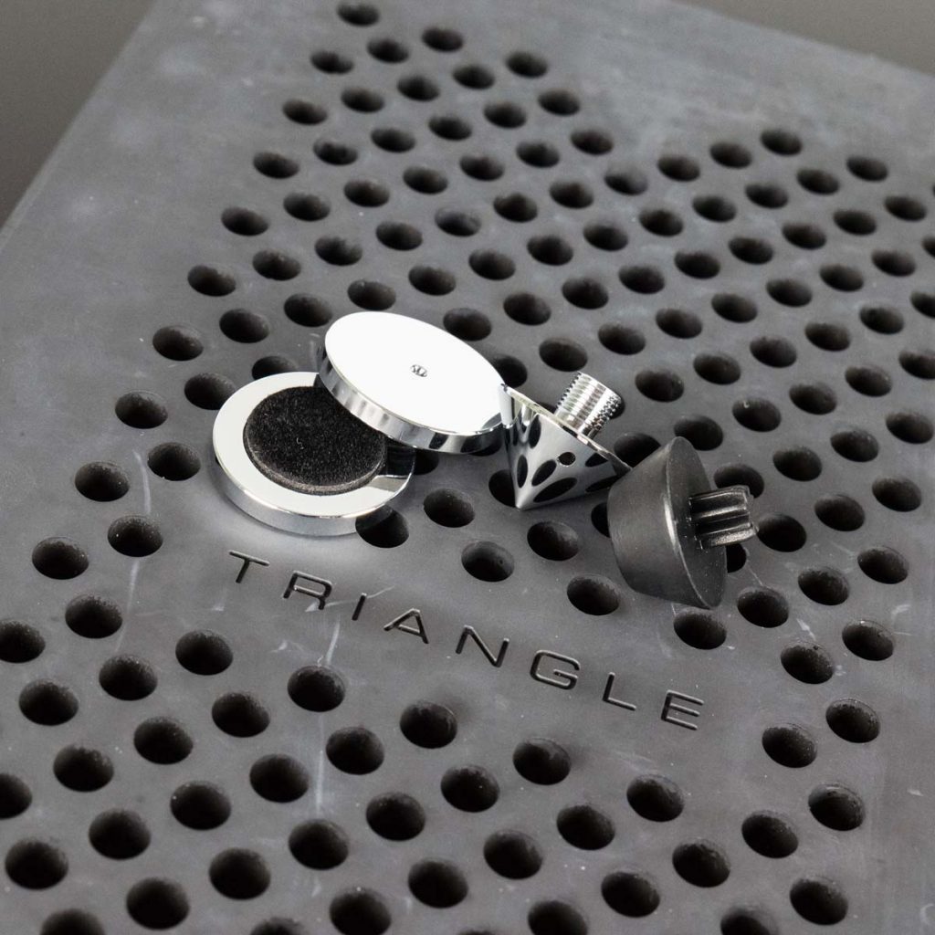 Damit die restlichen Chassis nicht hinterherhinken, wurde auf hohe Effizienz gesetzt. Dank offizieller 92,5 Dezibel Wirkungsgrad sollten sogar erlesene Single-ended-Röhrenverstärker als mögliche Spielpartner in Frage kommen. Wer die Australe EZ wie ich an kräftigen Transistoren betreibt, wird mit Druck in allen Lebenslagen belohnt. Bevor die Triangle an ihr Limit kommt, kollabieren die Ohren oder der Vermieter. Allerdings ist sie umgekehrt – ein minimaler Kritikpunkt – wohl auch nicht der ideale „Leisesprecher“ für das berüchtigte „Konzert für hustende Flöhe“.