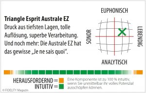 Die Australe EZ verzichtet auf jede Art von Allüren, sie transportiert schlicht das, was auf dem Tonträger konserviert wurde. Nicht mehr, nicht weniger. Eine Eigenschaft, die von echtem High End erwartet werden darf, auch wenn es sich in der Realität gelegentlich anders verhält.