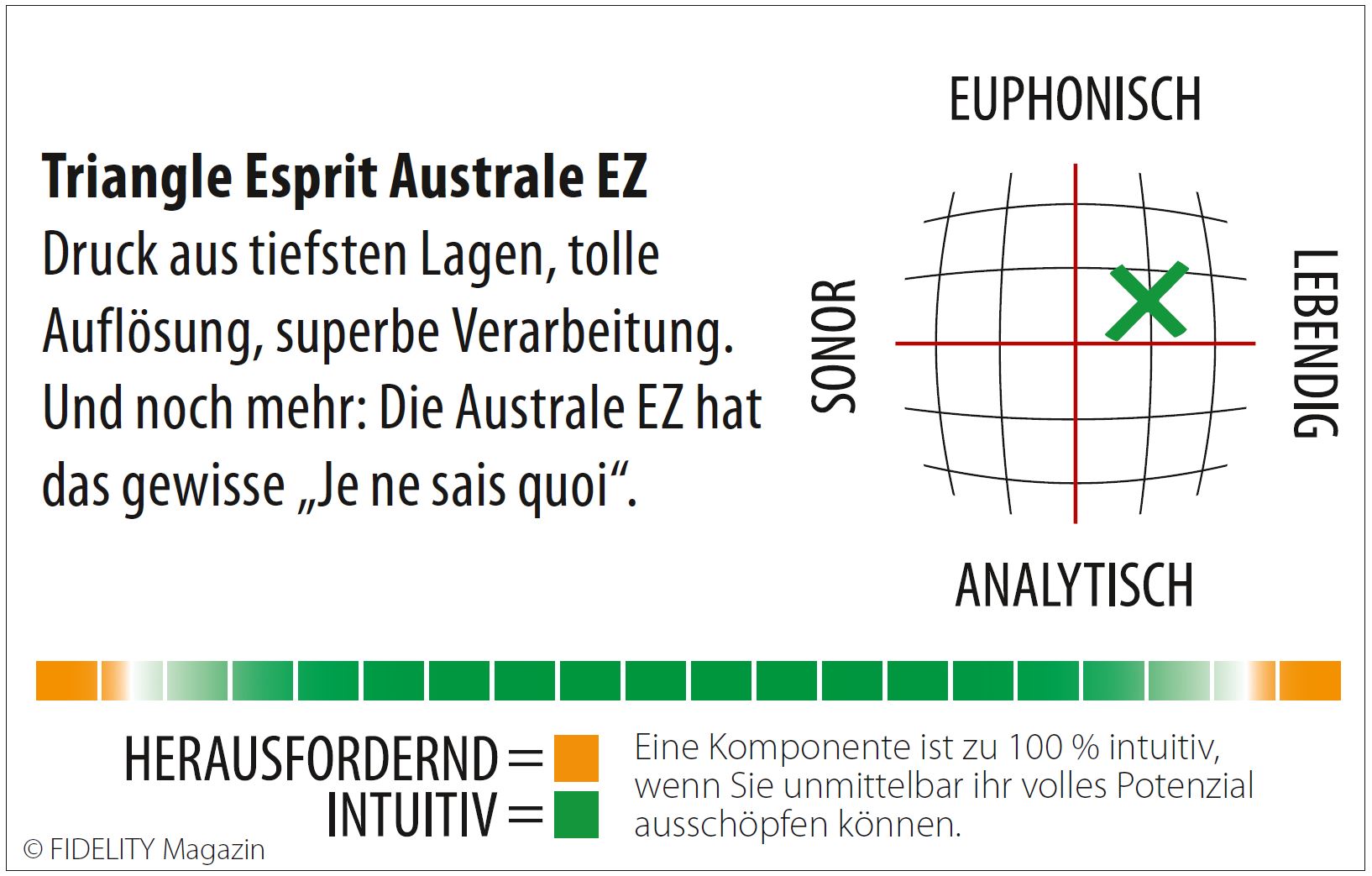 Die Triangle Esprit Australe EZ mag nicht direkt die universellste Box des Planeten sein, denn sie zeigt Ecken und Kanten jeder Aufnahme und verzeiht keine Fehler. Doch genau darin liegt auch die große Stärke der Französin. Sie besitzt Charakter und Ausstrahlung und zeigt allen zwanghaft linearisierten schmalen Säulen, wie die Musik zu spielen hat. Wer sich auf die Australe EZ einlässt, wird mit Gänsehaut belohnt, egal wie heiß es draußen auch sein mag. Vive la France!