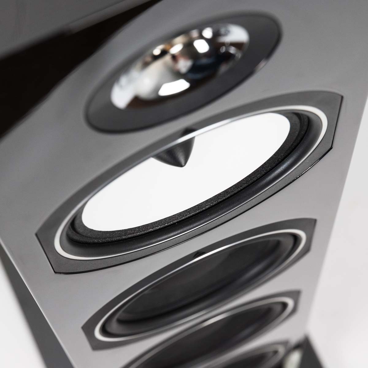 Was machen die Franzosen denn nun anders als andere? Prinzipiell handelt es sich auch bei der Australe „nur“ um Holzkisten aus MDF, die mit ein paar (pro Stück sechs) Chassis bestückt sind. Triangle also hat das Rad nicht direkt neu erfunden, doch flossen für das neue Topmodell der Esprit-Serie einige Erkenntnisse aus der hauseigenen Referenzlinie Magellan in die Entwicklung mit ein. Vertikaler Technologietransfer über zwei Stufen zeigt sich zum Beispiel am Hochtöner TZ 2510, dessen überarbeiteter Phaseplug einen großen Anteil am ausgedehnten Sweetspot hat. Zur Unterstützung sitzt ein zweites Exemplar auf der Rückseite des Gehäuses, das sich bei etwas höherer Übernahmefrequenz um die Erweiterung der Tiefenstaffelung kümmert. Bedingt durch den Versatz der Übernahmefrequenz addieren sich die Schallanteile, ohne die Ortung zu beeinträchtigen. „Dynamic Pulse System“ nennt das die Triangle-Marketingabteilung; ich nenne es einfach eine superbe Idee, denn nun muss man sich nicht mehr darauf beschränken, ganz allein und statisch im Sessel zu sitzen. Nettes Detail, sollten sich Mithörer einfinden oder falls man einfach mal auf der Couch herumlümmeln will.