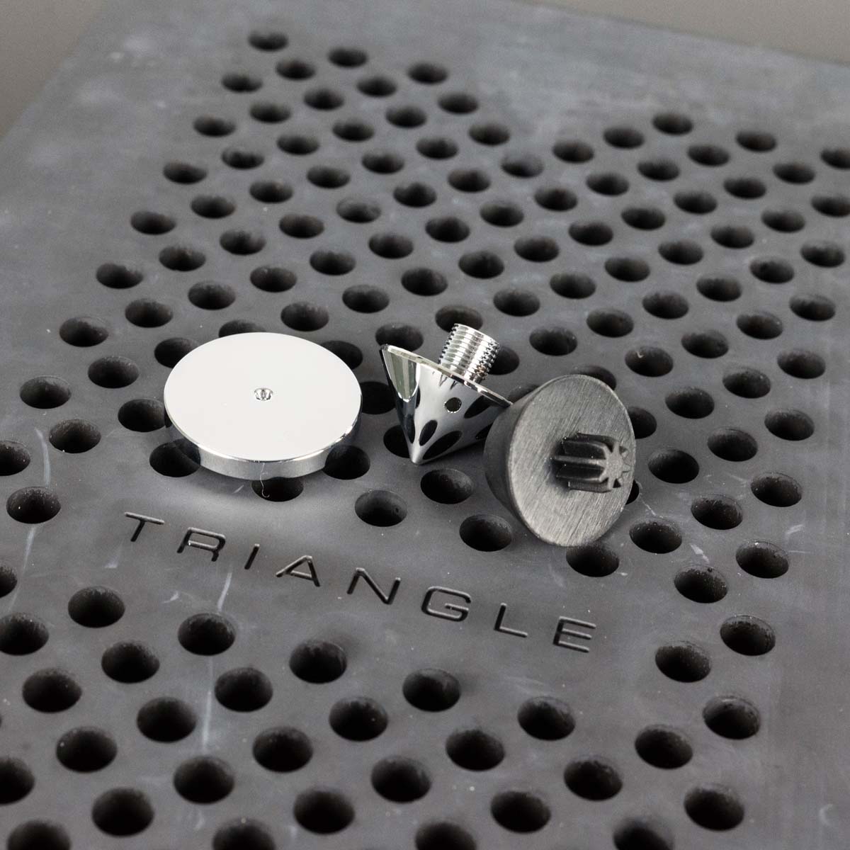 Woher kommt dieses Antrittsverhalten? Immerhin müssen Mittel- und Basschassis einem ziemlich flinken und dynamisch explosiven Hochtonhorn folgen. Das Geheimnis liegt in einem irrwitzigen „Leistungsgewicht“. So wurden für den Mitteltöner extrem leichte Membranen aus Papier mit einer harten Aufhängung und fettem Antrieb kombiniert. Dazu erweitert ein Phaseplug das Spektrum deutlich. Fans der Lautsprecher aus Soisson dürften hier das Erbe der Triangle Magellan erkennen. Um ähnliche Dynamikfähigkeiten der Tieftöner zu erreichen, musste ein wenig in die Trickkiste gegriffen werden. Klar war, dass auch hier Papier als Material zum Einsatz kommen musste! Um dem Papier zusätzliche Steifigkeit auch für derbste Tieftonattacken zu verleihen, (er)fanden die Triangle-Ingenieure eine clevere Materialkombination: Der feine Holzbrei, aus dem die Membranen gezogen werden, enthält einen definierten Anteil Flachs- und Carbonfasern. Dieser Mix macht sie ultraleicht und extrem stabil zugleich.