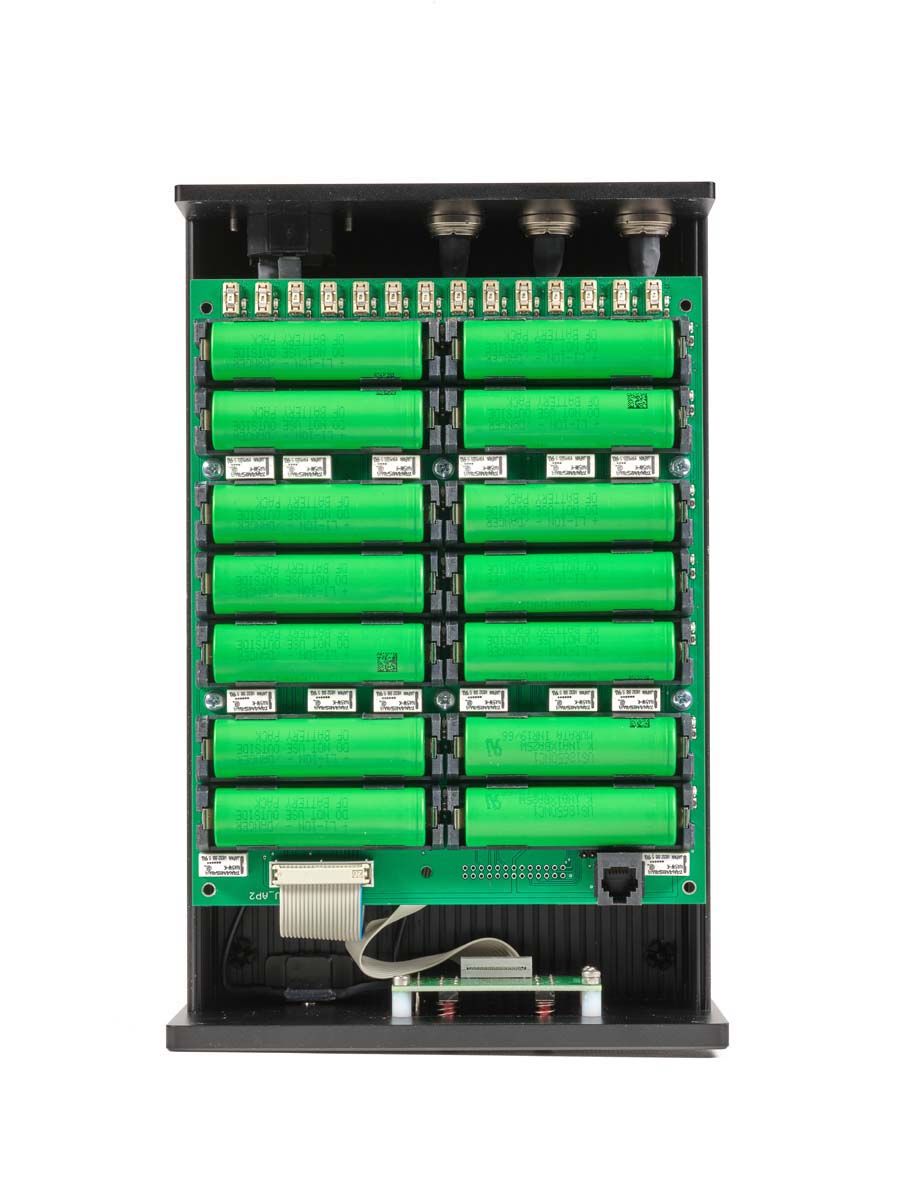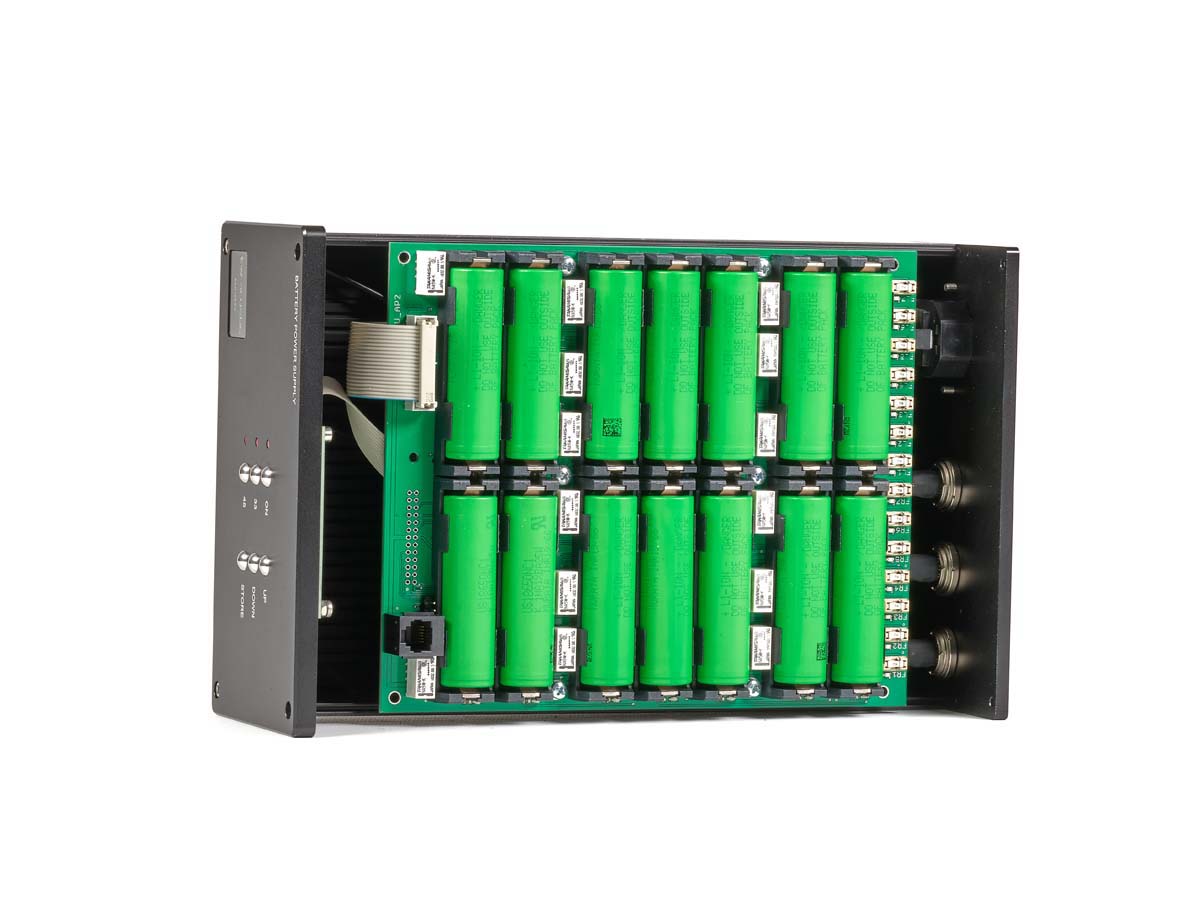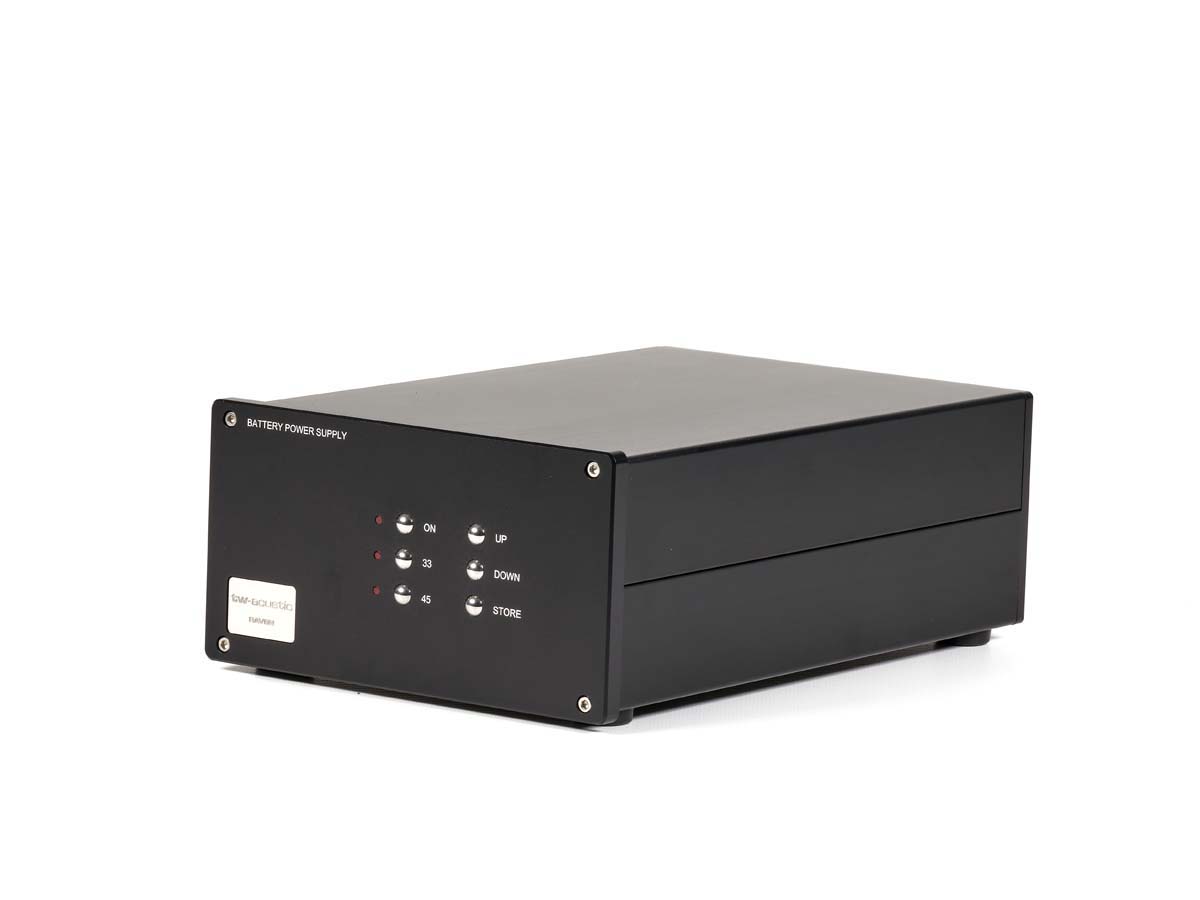 Dank akkubasierter Versorgung ist die Elektronik vollkommen unabhängig von Störungen des Stromnetzes. Noch wichtiger ist der geringe Innenwiderstand, den, so Woschnik, Motoren besonders gerne mögen. Die praxistaugliche Umsetzung ist nur ein Beispiel für seine in jeglicher Hinsicht durchdachten Konstruktionen. So ist eine Akkubank für den Betrieb des Laufwerks zuständig, während die andere gleichzeitig geladen wird. Bei Bedarf wird automatisch auf die geladene Bank umgeschaltet. Das erfolgt auch bei ausgeschaltetem Gerät, sodass nach langen Betriebspausen der Plattenspieler sofort einsetzbar ist. Falls die Akkus schwächeln, melden dies blinkende LEDs; defekte Akkus werden ebenfalls durch LEDs angezeigt. Dass es sich hierbei um herkömmliche Speicherzellen handelt, die beispielsweise in E-Zigaretten Verwendung finden, erhöht die Verfügbarkeit und erleichtert den Austausch.