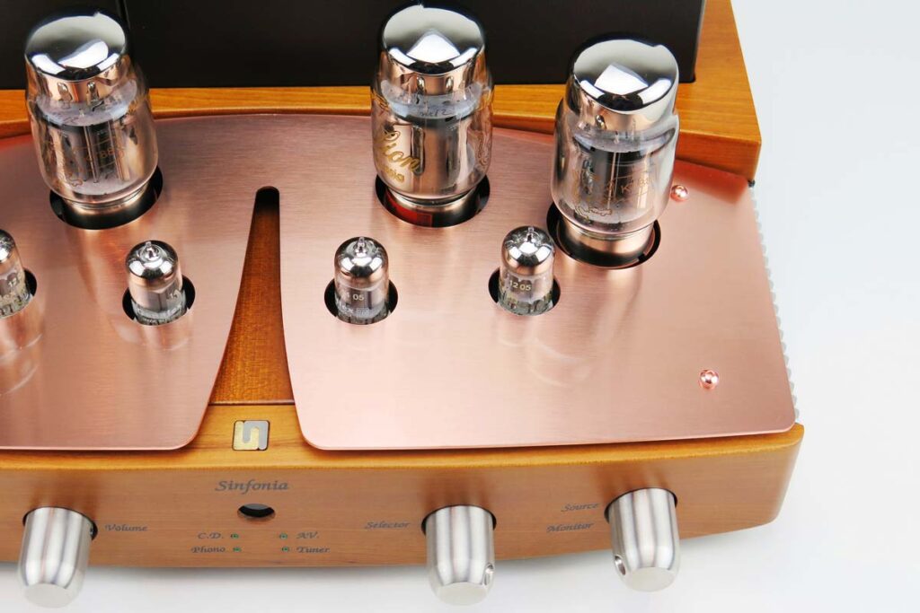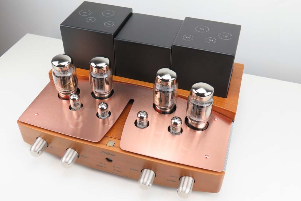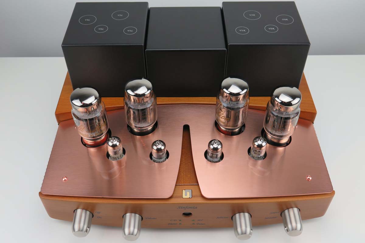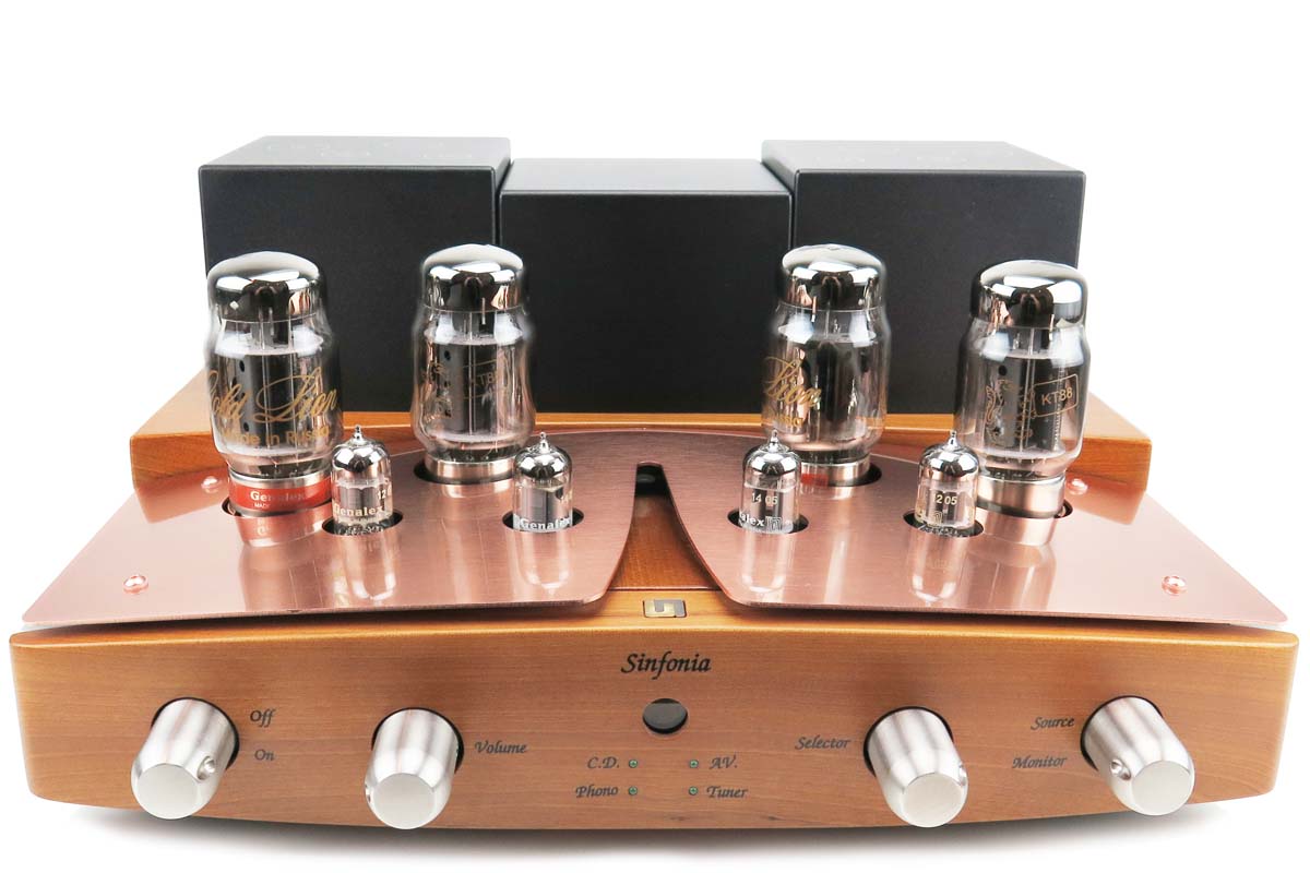 Der Sinfonia LE unterscheidet sich optisch vom 2005 erschienen Ur-Sinfonia durch die Mahagoni-Gehäuseverkleidung und die in Kupfer statt Aluminium ausgeführten Hitzeschilde.