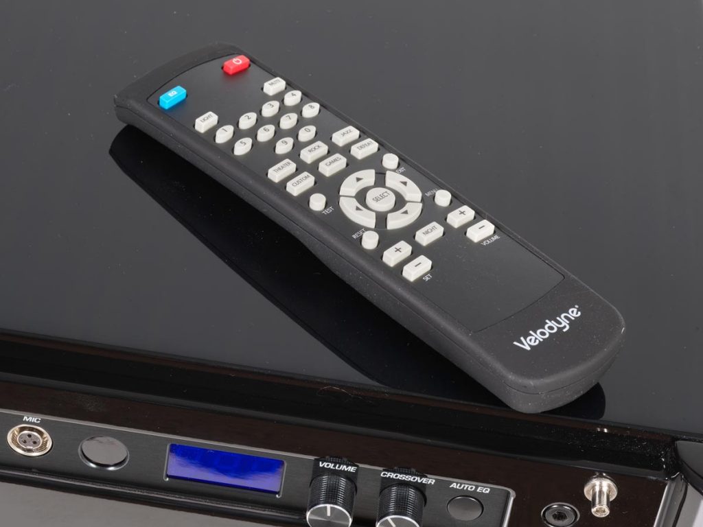 Frisch eingeschaltet kann man über die Fernbedienung Presets abrufen, die für unterschiedliche Anwendungen (Rock, Jazz, Gaming, Kino etc.) optimiert sind. Allerdings stellen sie nur einen groben Wurf in die prinzipiell richtige Richtung dar, da sie die entscheidenden Komponenten – den Raum und die beteiligte Anlage – nicht kennen. Zum schnellen Start und für einen Tritt in den Bauch, sobald im Film ein Dinosaurier stampft, taugen die Presets allemal. Mit einer schnellen Angleichung der Lautstärke und Übergangsfrequenz kann man sie justieren, doch den Möglichkeiten dieses Subwoofers wird auch das nicht im Mindesten gerecht.
