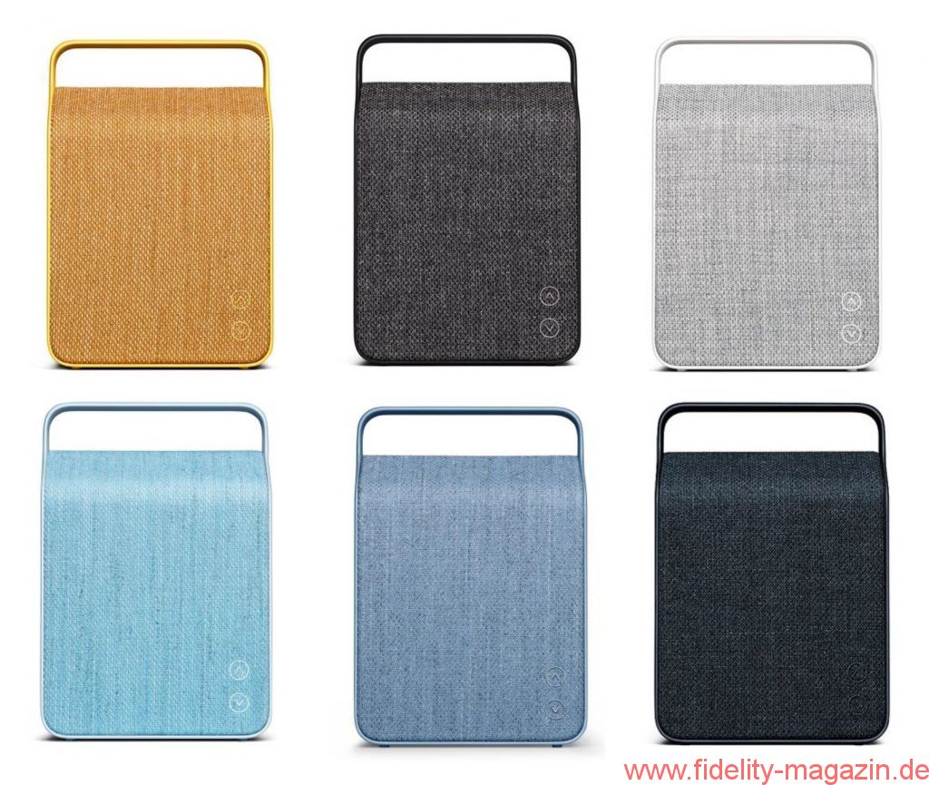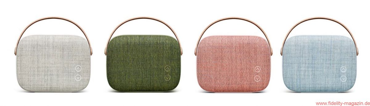 Sämtliche Lautsprecher in Vifas neuester tragbarer Serie sind mit robusten Stoffen der dänischen Textilmanufaktur Kvadrat bezogen. Durch die Lichtsicherheit der Stoffe behalten die Produkte ihr Aussehen auch beim Gebrauch im Freien.