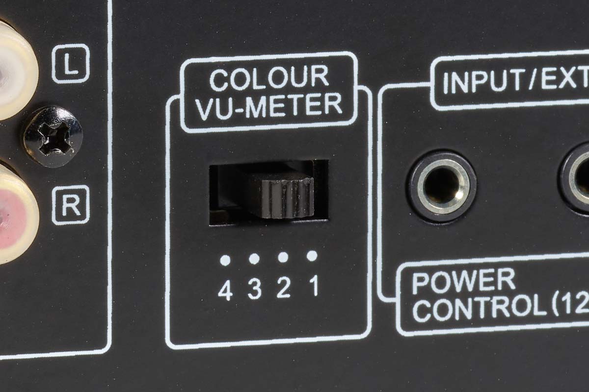 Besonderheiten: Farbe Hintergrundbeleuchtung VU-Meter schaltbar, Eco-Modus schaltbar