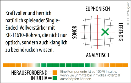 Damit die Endstufenröhren ihr Potenzial voll ausschöpfen können, entwickelte Frank Werner eine Treiberschaltung, die ohne Koppelkondensator auskommt und die T1610 direkt ansteuert. Das ermöglicht einen sehr stabilen Betrieb bis in den Class-A2-Bereich, also in einen Bereich, in dem die Röhre auch bei kräftigen Impulsen kontrolliert bleibt. Klanglich spürt man das deutlich: Es gibt keinen Bruch zwischen fein und kräftig, der Klang macht einen durchgehend stabilen, fließenden Eindruck.