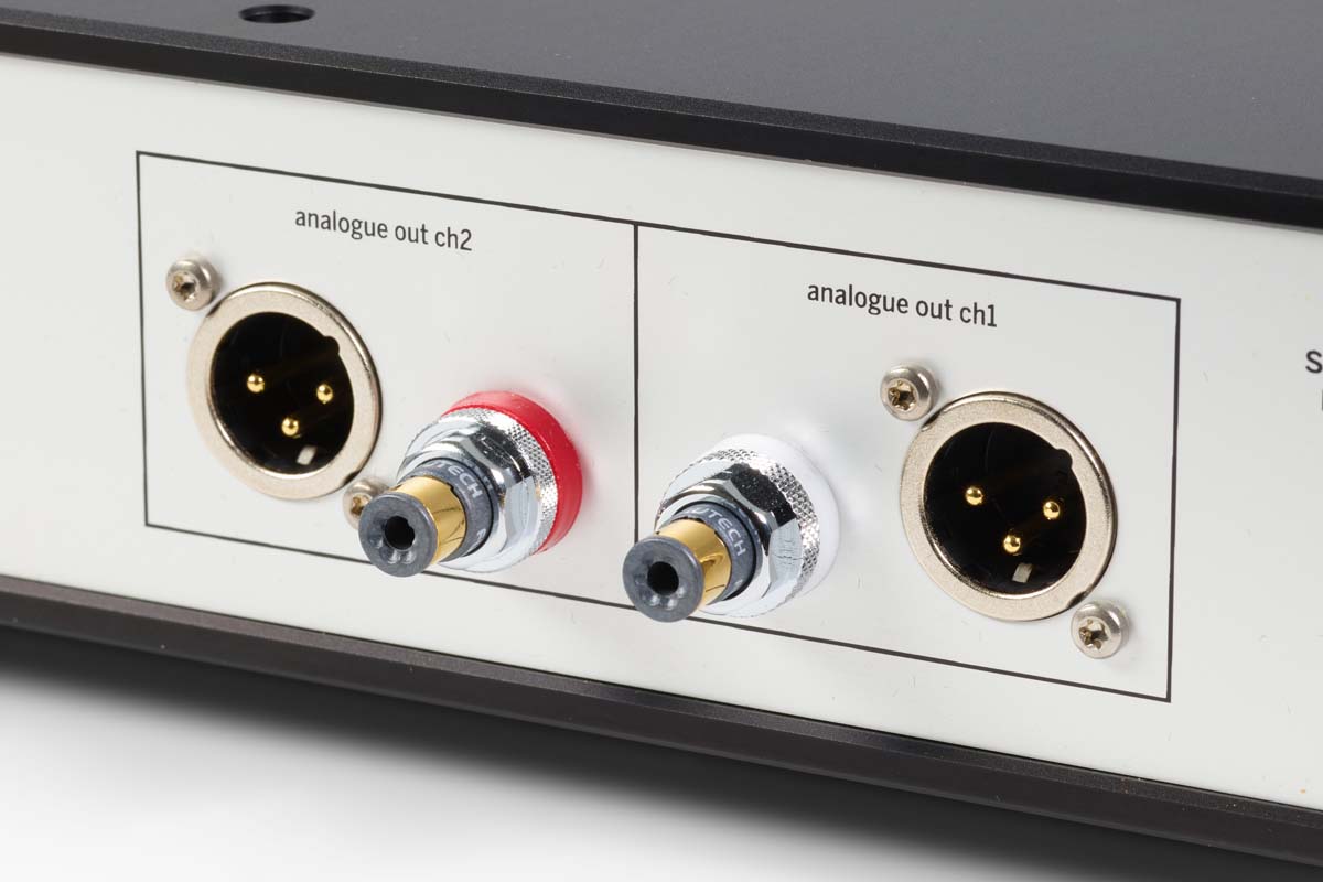 Ausgänge analog: 2 x XLR (Line/Kopfhörer), 2 x RCA (Line/Kopfhörer)