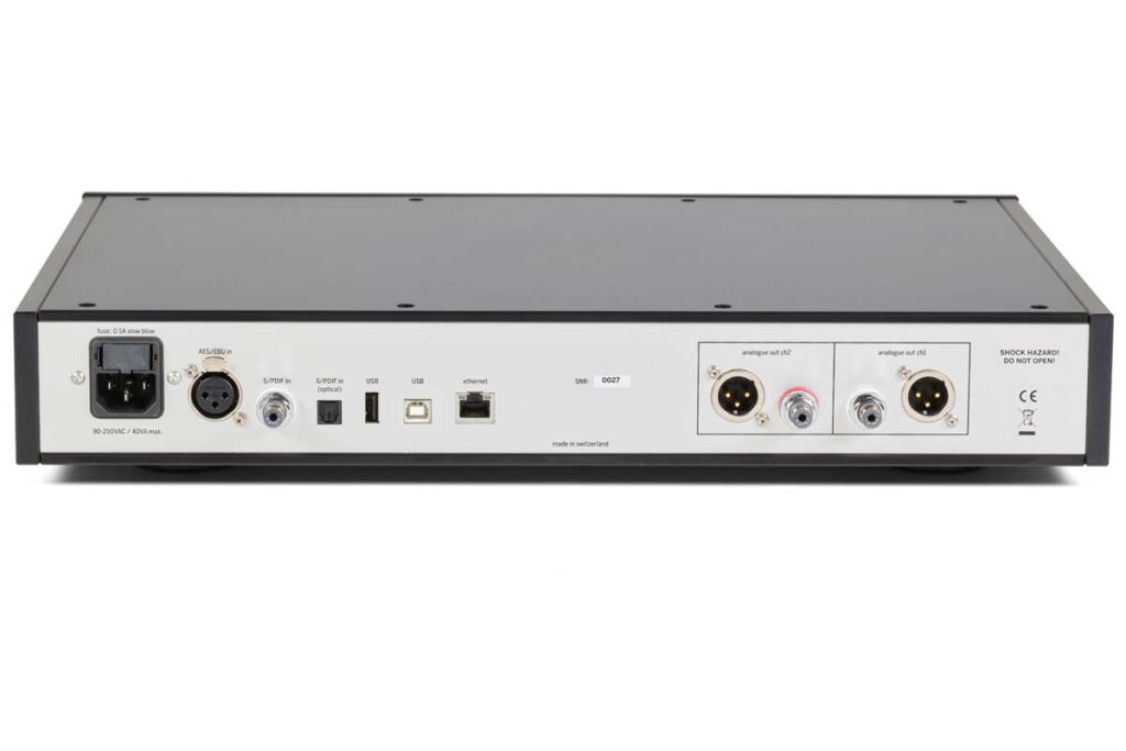 Eingänge: 1 x XLR (AES/EBU und S/PDIF), 1 x Koax (Cinch), 1 x Toslink, 1 x USB Typ B für „Devices“