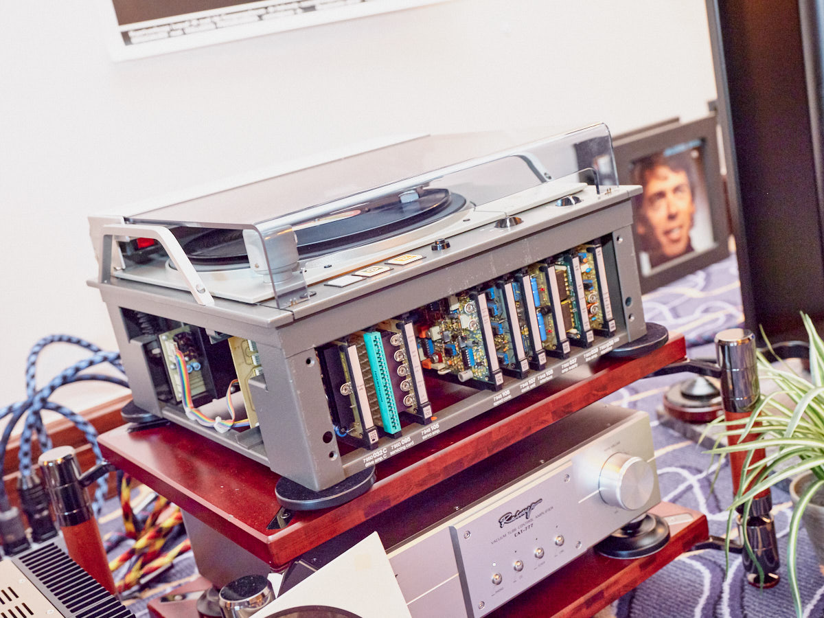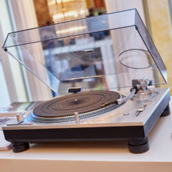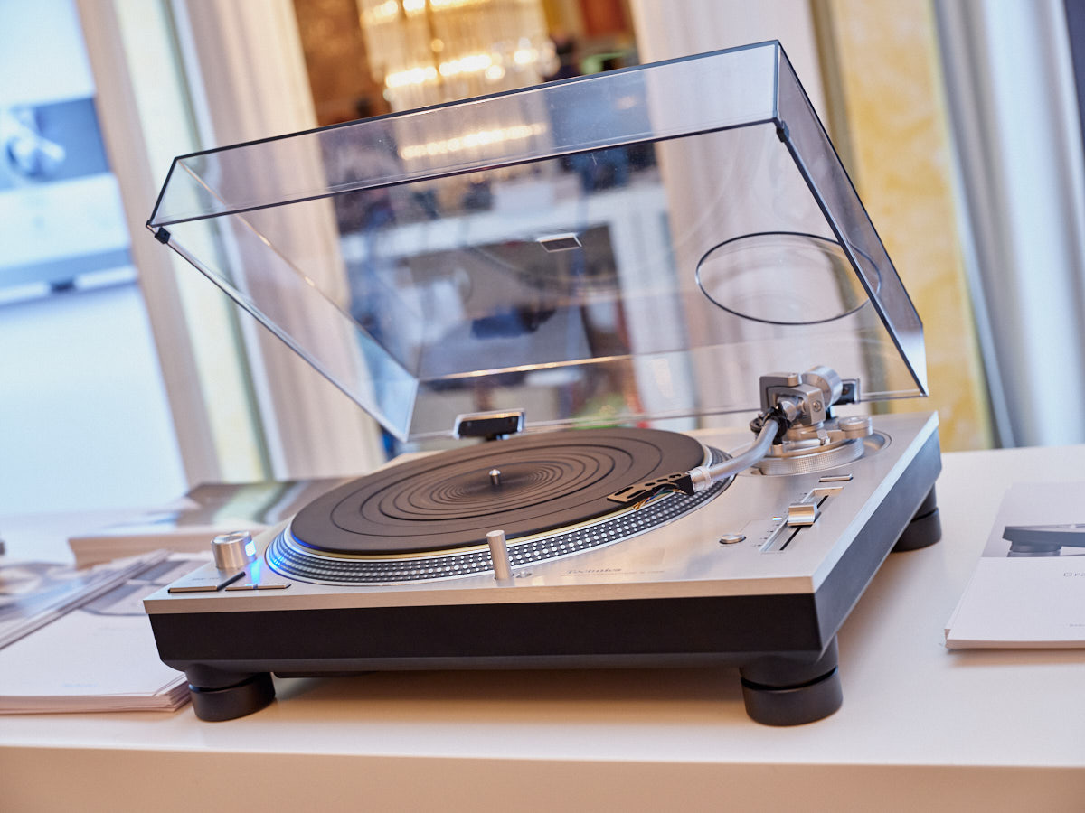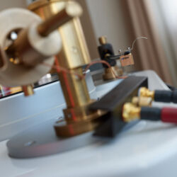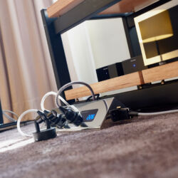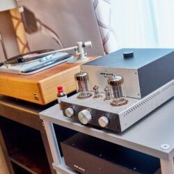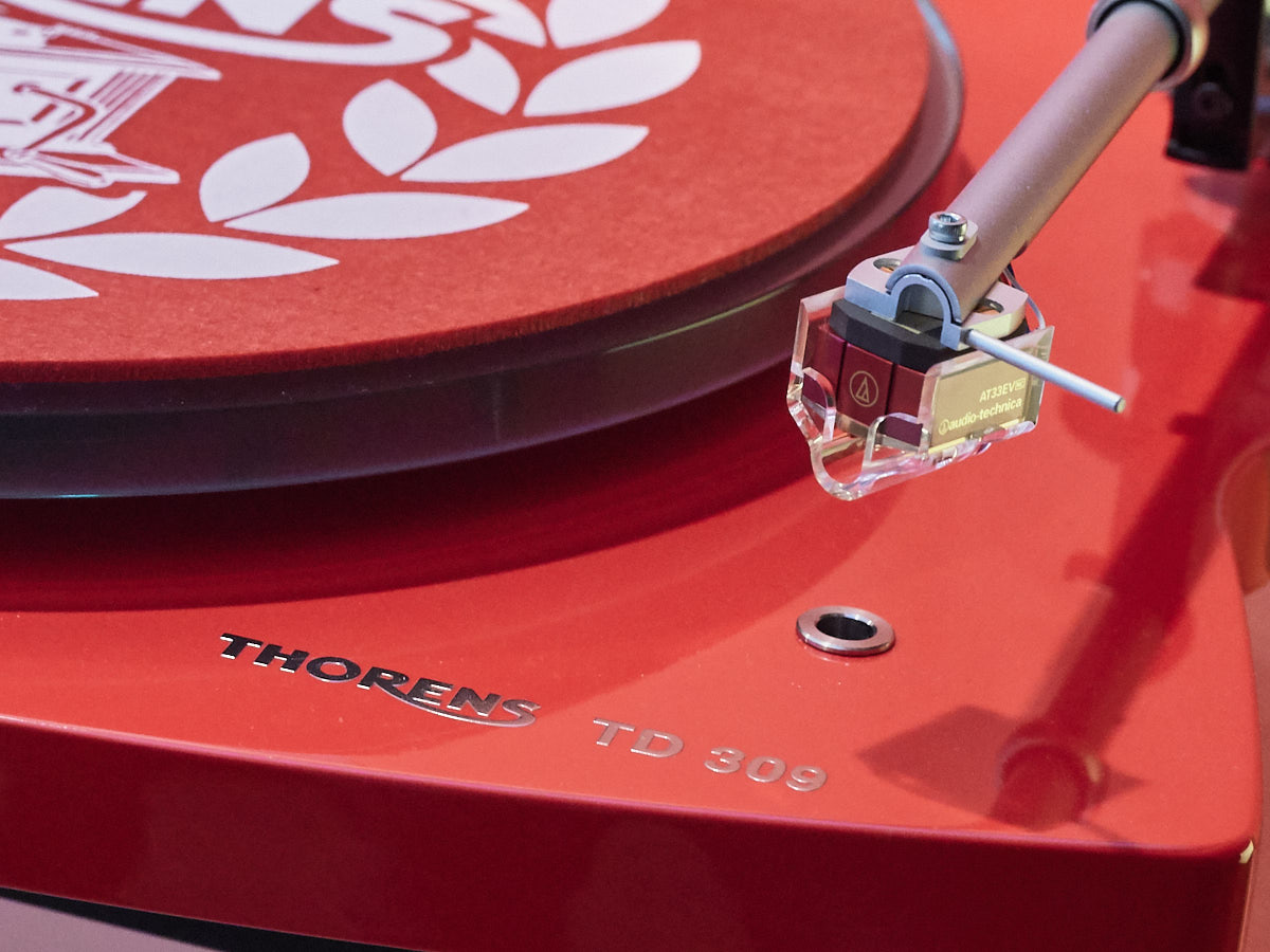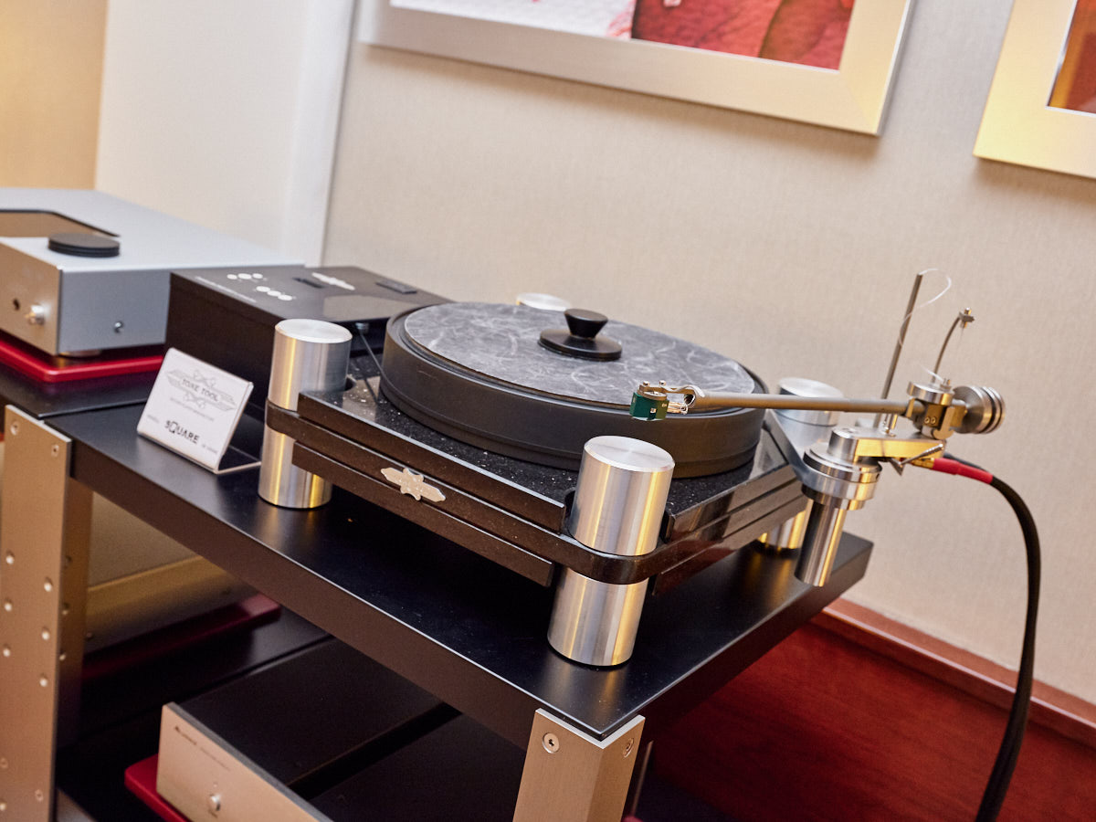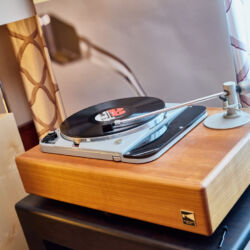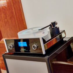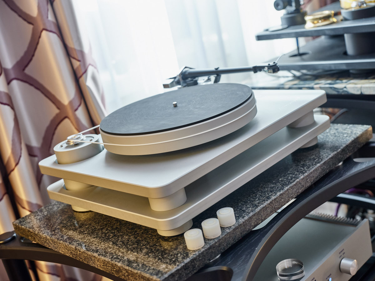 Ein weiteres Highlight war (wie bereits vor einigen Wochen auf den Süddeutschen HiFi-Tagen in Stuttgart) die Kette von Kii Audio. Für den Hersteller mit Sitz in Bergisch Gladbach war die Veranstaltung gewissermaßen ein Heimspiel. Dem erhabenen Aktivmonitor „Three“, kraftvoll begleitet von dessen neuer Tieftonerweiterung „BXT“, diente ein Thorens TD 550 als Zuspieler. Gemeinsam gelang den Komponenten eine der schwungvollsten und mitreißendsten Demonstrationen der Show. Die mittlerweile ebenfalls im Bergischen ansässigen Analog-Profis von Thorens nutzen die Show, um gleich noch ein paar Neuheiten vorzustellen: Im Ausstellungszimmer eine Tür weiter entdeckten wir unter anderem den kleinen TD 220, der für knapp 600 Euro Vinyl mit einem integrierten Phono-Entzerrer und USB kombiniert. Er kann also eingesetzt werden, um Schallplatten in einen Computer zu digitalisieren. Über einen rückwärtigen Schalter lässt sich die Elektronik vollständig deaktivieren.