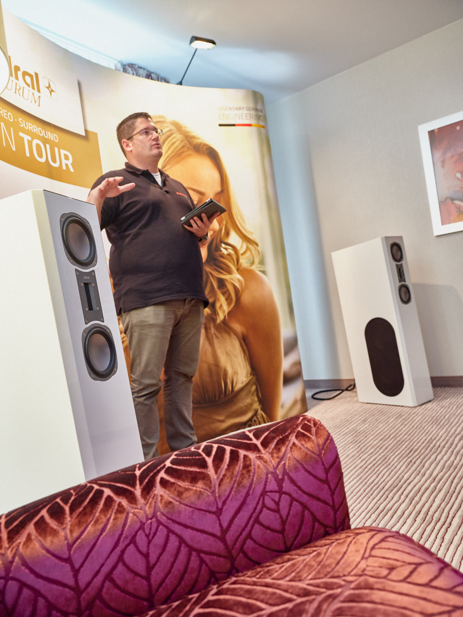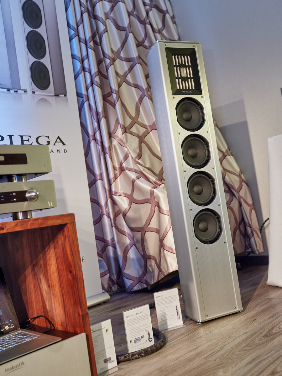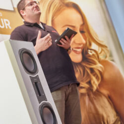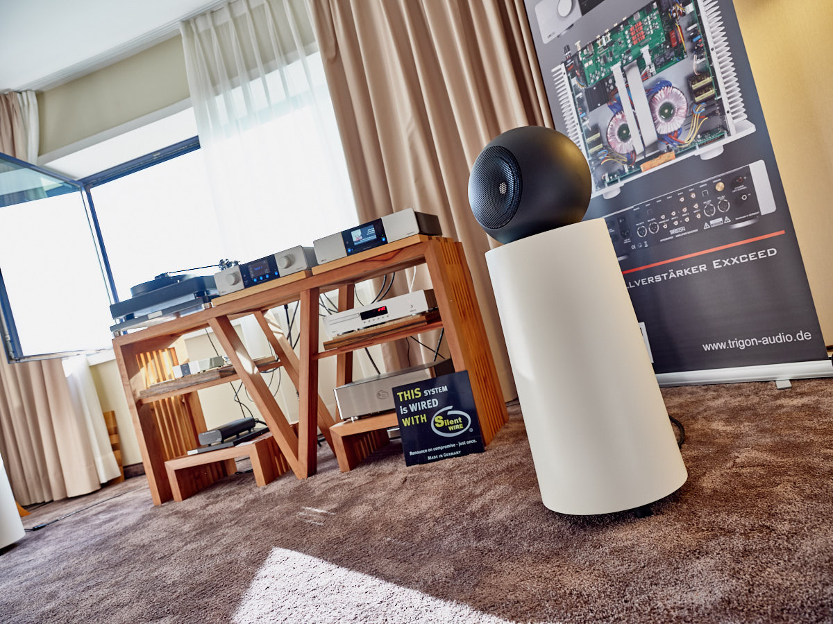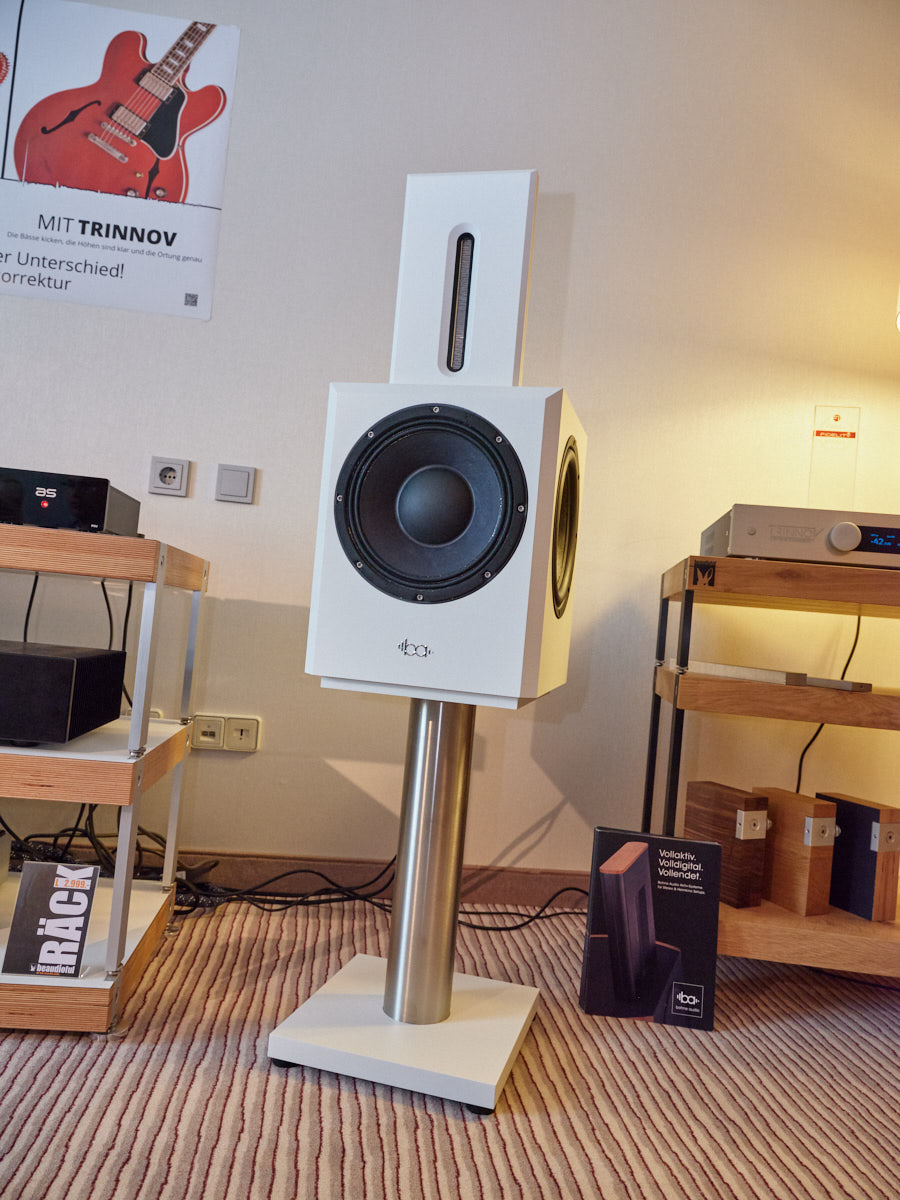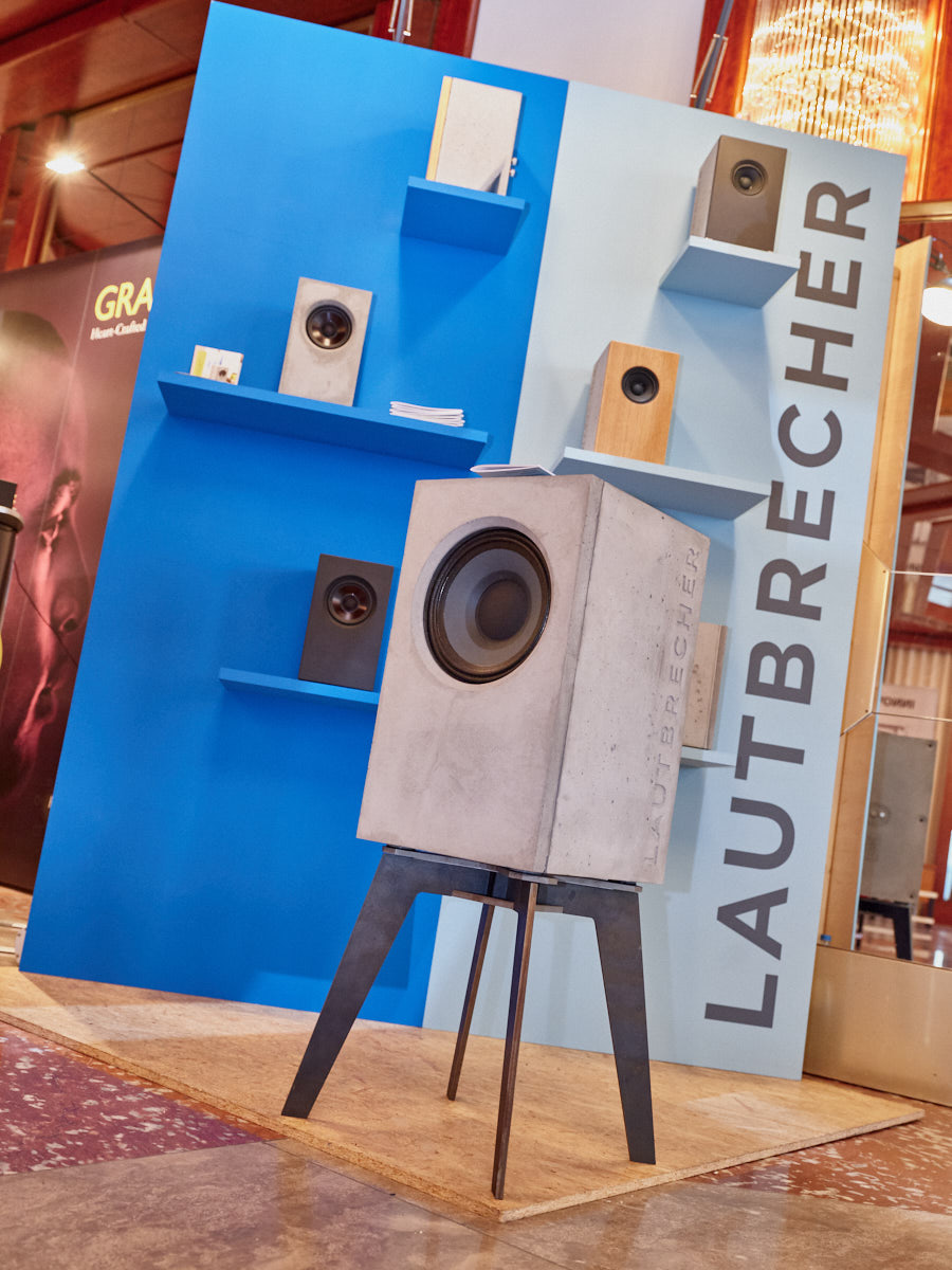 Zu digital? Dann musste man sich nur umdrehen, um am Stand von Transrotor den verführerischen „Alto“ (um 5000 Euro) zu entdecken, der in Bonn ebenfalls einen seiner ersten öffentlichen Auftritte absolvierte. Im benachbarten Ausstellungsraum zeigte Audio Components Paradigms „Persona“-Lautsprecher 3F und die größere 5F, die in praktisch jeder Hinsicht aus dem Rahmen fallen. Beide Modelle besitzen Beryllium-Mitteltöner, die von filigranen und umwerfend gestalteten Abdeckgittern geschützt werden. Das in Bonn nicht gezeigte Top-Modell 9F besitzt sogar eine aktive Bass-Sektion sowie eine integrierte Raumkorrektur von Anthem. Und schließlich gab es noch einen Newcomer: Die Lautsprechermarke „Lautbrecher“ (richtig gelesen, das ist kein Rechtschreibfehler) fertigt Kompaktboxen aus Beton, die sich im mittelpreisigen Segment orientieren und über einen eigenen Shop vertrieben werden.