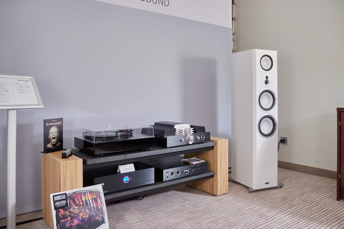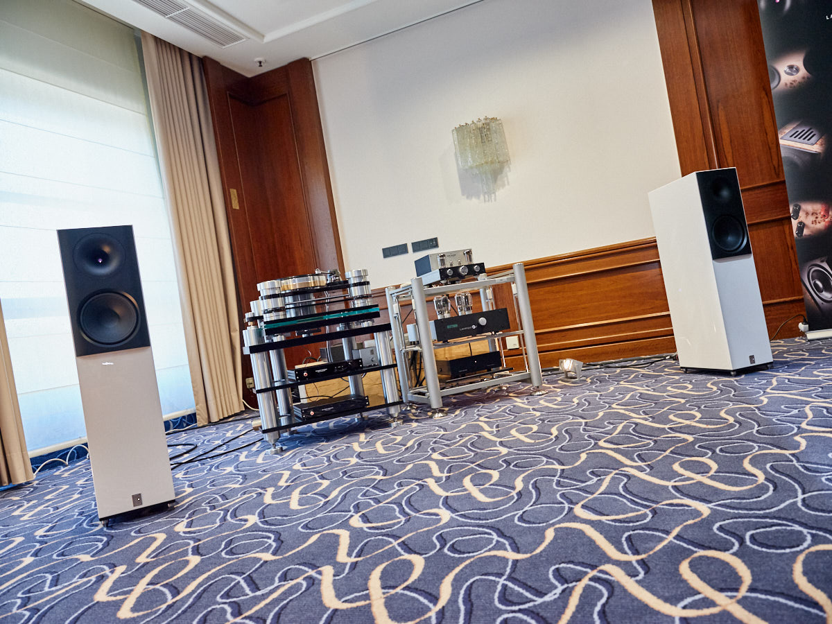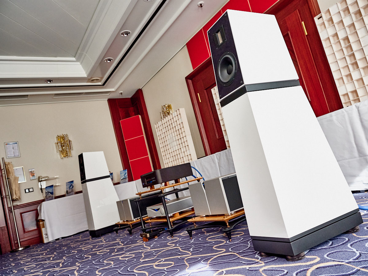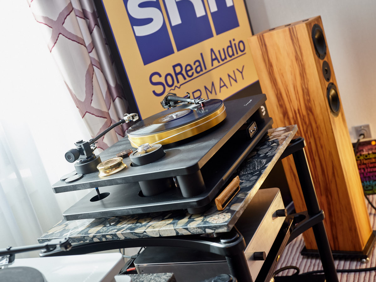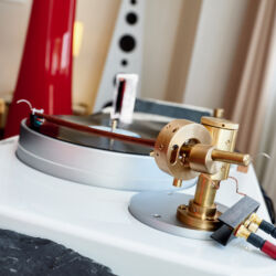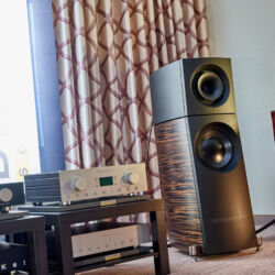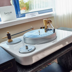 Zu digital? Dann musste man sich nur umdrehen, um am Stand von Transrotor den verführerischen „Alto“ (um 5000 Euro) zu entdecken, der in Bonn ebenfalls einen seiner ersten öffentlichen Auftritte absolvierte. Im benachbarten Ausstellungsraum zeigte Audio Components Paradigms „Persona“-Lautsprecher 3F und die größere 5F, die in praktisch jeder Hinsicht aus dem Rahmen fallen. Beide Modelle besitzen Beryllium-Mitteltöner, die von filigranen und umwerfend gestalteten Abdeckgittern geschützt werden. Das in Bonn nicht gezeigte Top-Modell 9F besitzt sogar eine aktive Bass-Sektion sowie eine integrierte Raumkorrektur von Anthem. Und schließlich gab es noch einen Newcomer: Die Lautsprechermarke „Lautbrecher“ (richtig gelesen, das ist kein Rechtschreibfehler) fertigt Kompaktboxen aus Beton, die sich im mittelpreisigen Segment orientieren und über einen eigenen Shop vertrieben werden.
