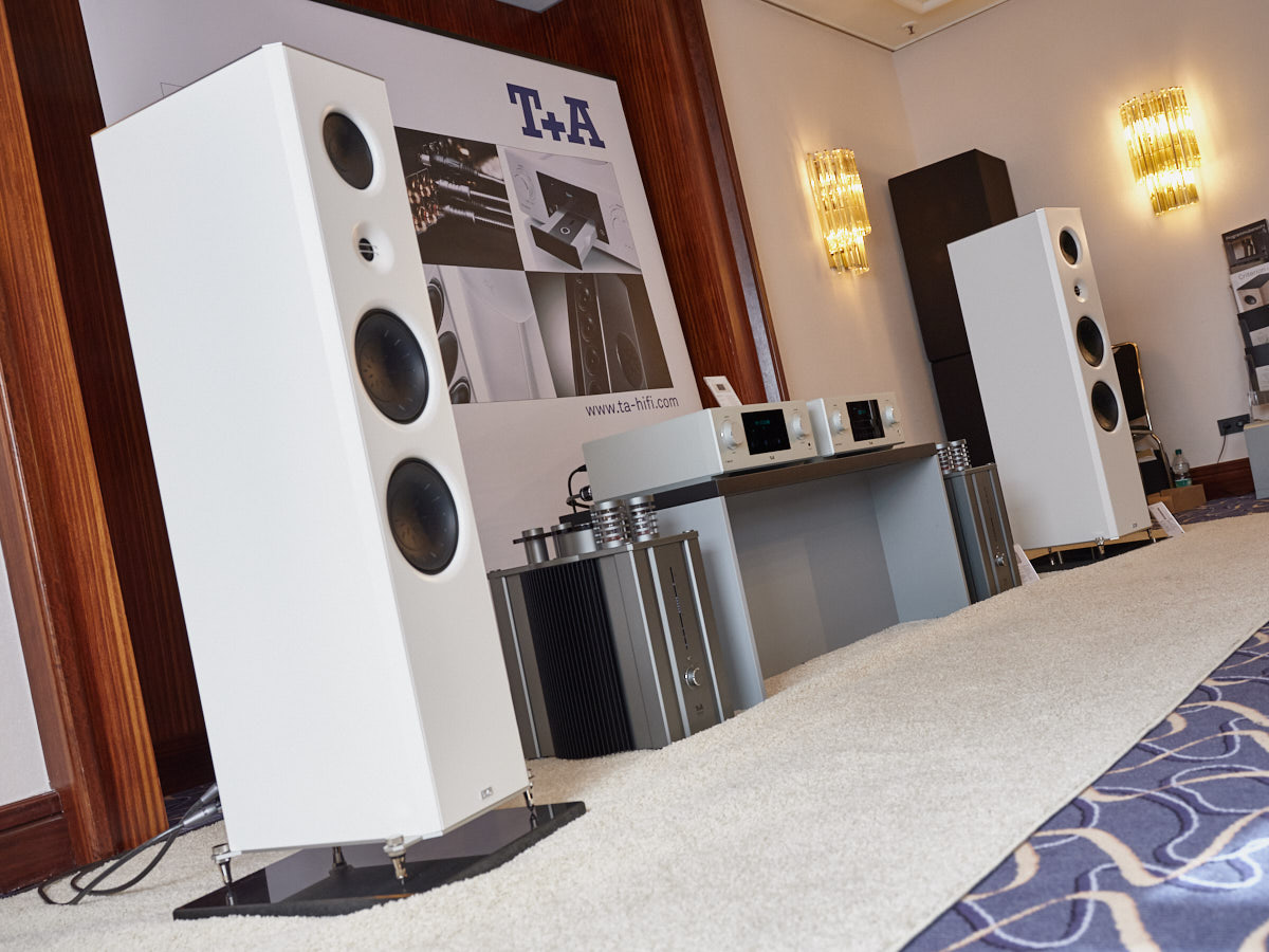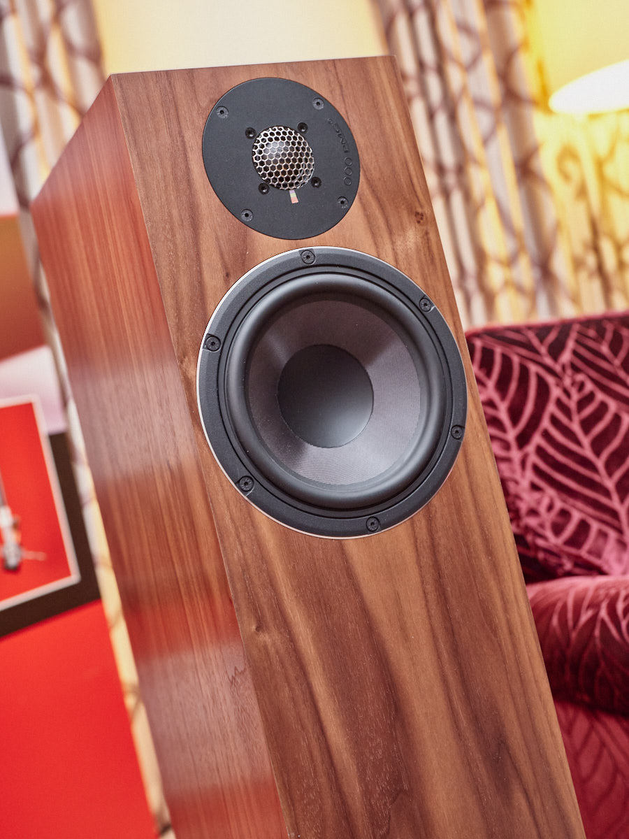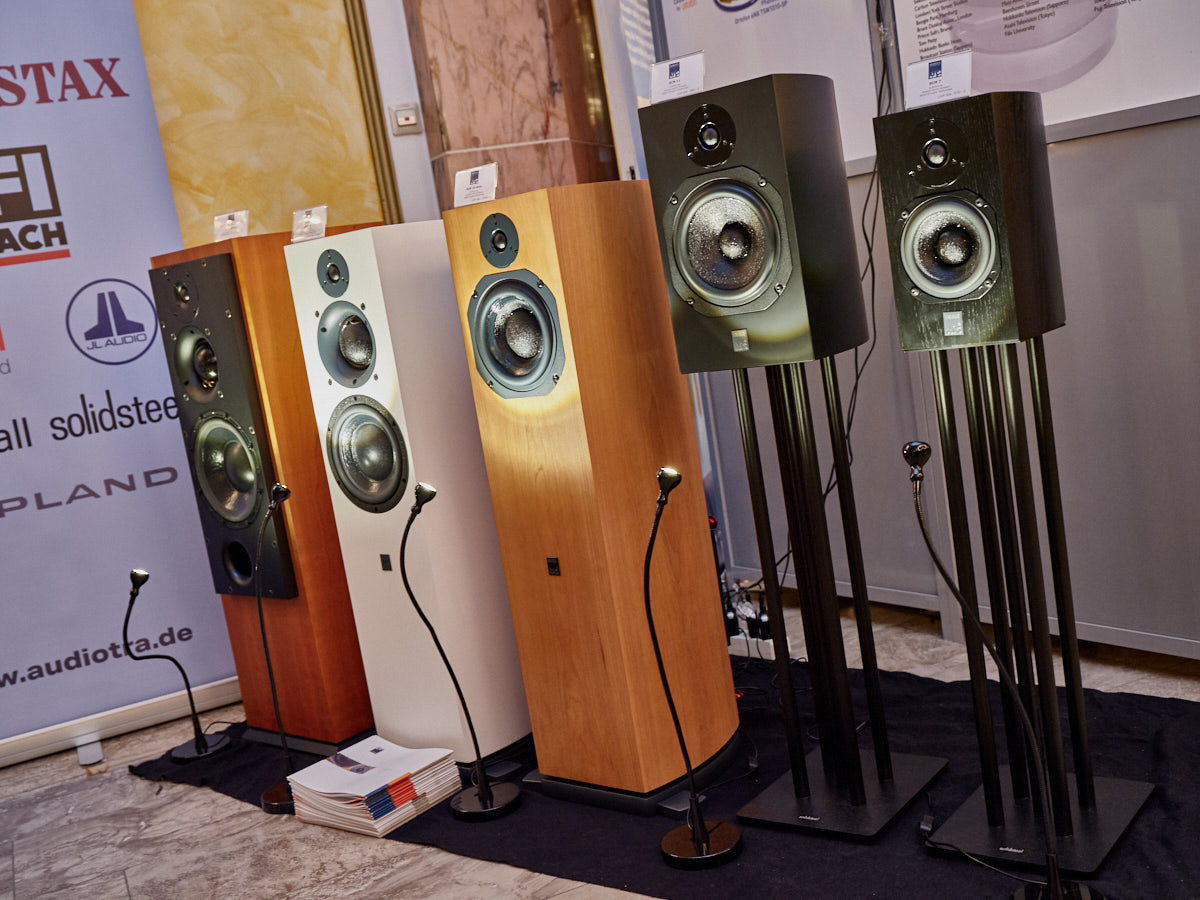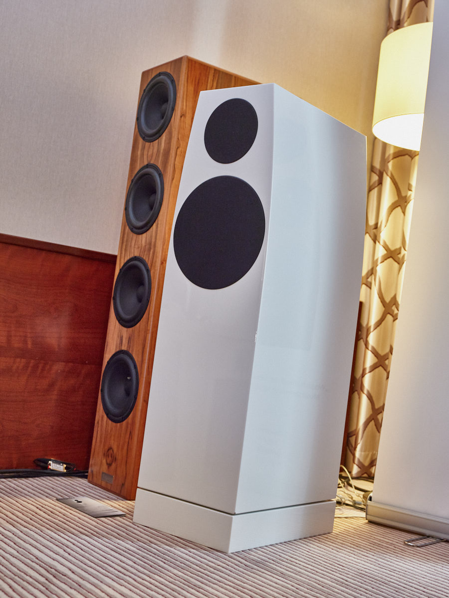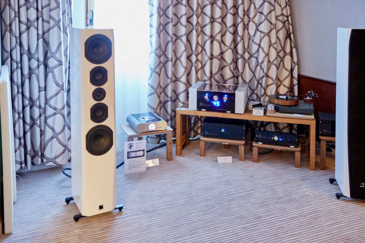 Zu digital? Dann musste man sich nur umdrehen, um am Stand von Transrotor den verführerischen „Alto“ (um 5000 Euro) zu entdecken, der in Bonn ebenfalls einen seiner ersten öffentlichen Auftritte absolvierte. Im benachbarten Ausstellungsraum zeigte Audio Components Paradigms „Persona“-Lautsprecher 3F und die größere 5F, die in praktisch jeder Hinsicht aus dem Rahmen fallen. Beide Modelle besitzen Beryllium-Mitteltöner, die von filigranen und umwerfend gestalteten Abdeckgittern geschützt werden. Das in Bonn nicht gezeigte Top-Modell 9F besitzt sogar eine aktive Bass-Sektion sowie eine integrierte Raumkorrektur von Anthem. Und schließlich gab es noch einen Newcomer: Die Lautsprechermarke „Lautbrecher“ (richtig gelesen, das ist kein Rechtschreibfehler) fertigt Kompaktboxen aus Beton, die sich im mittelpreisigen Segment orientieren und über einen eigenen Shop vertrieben werden.