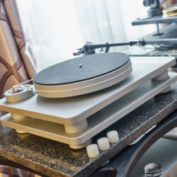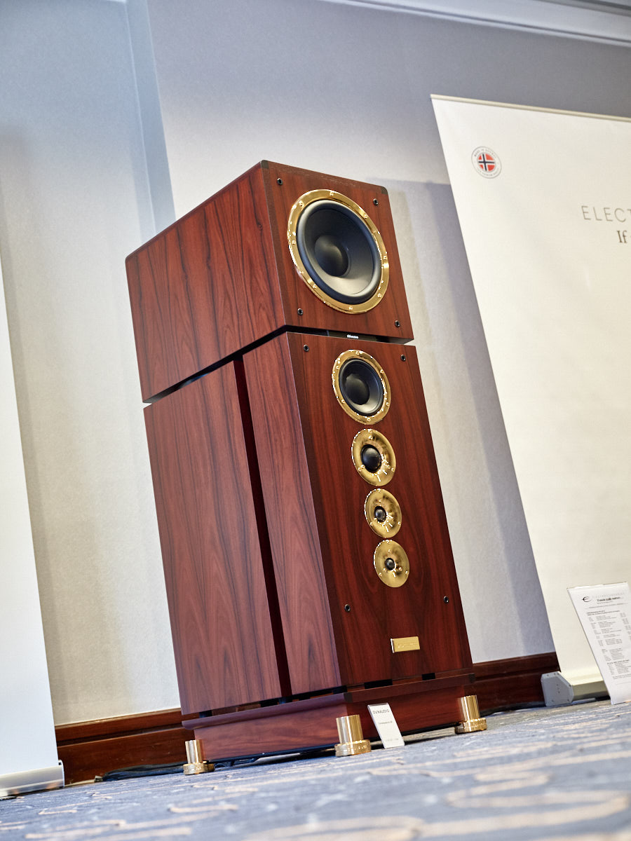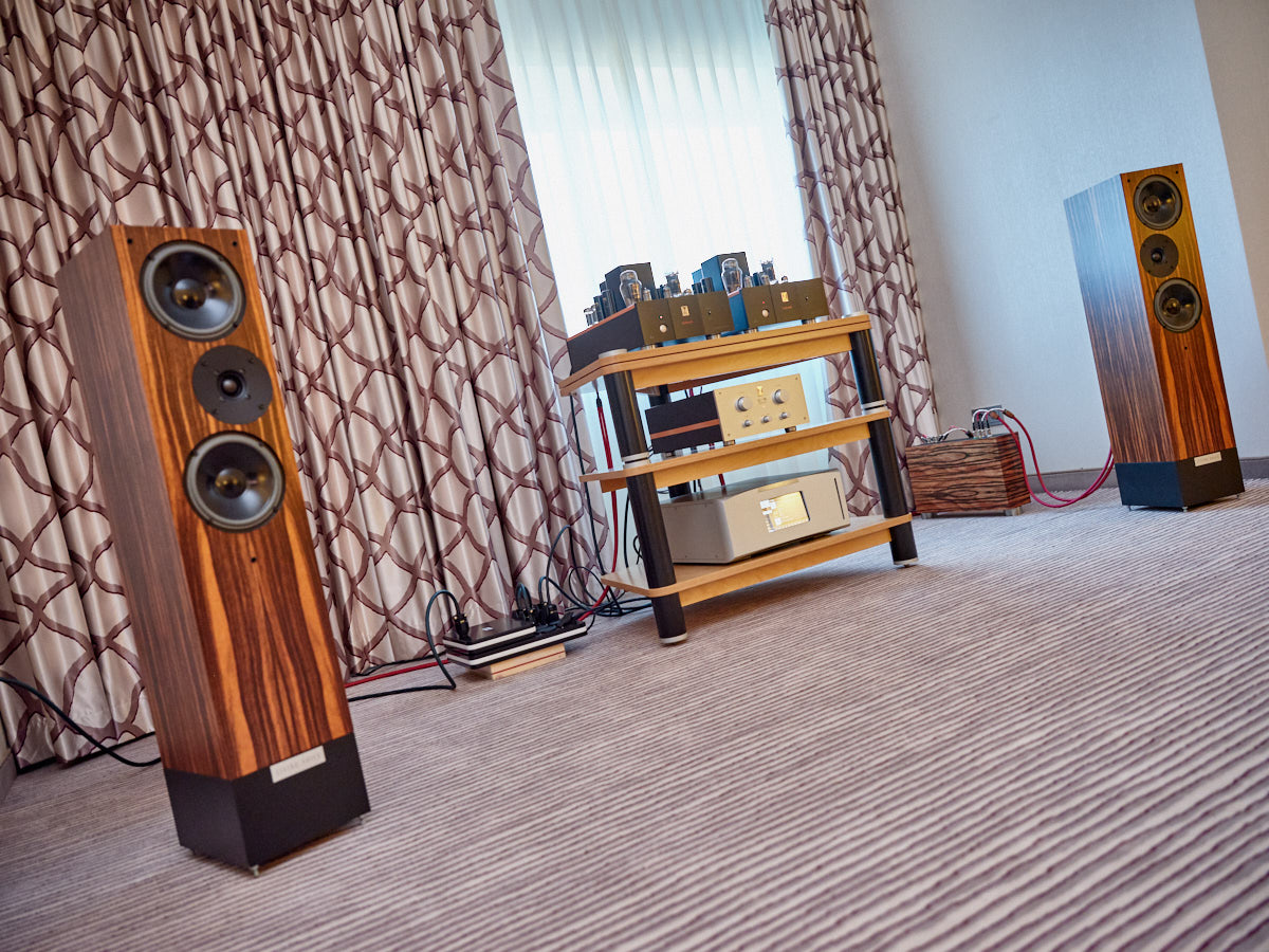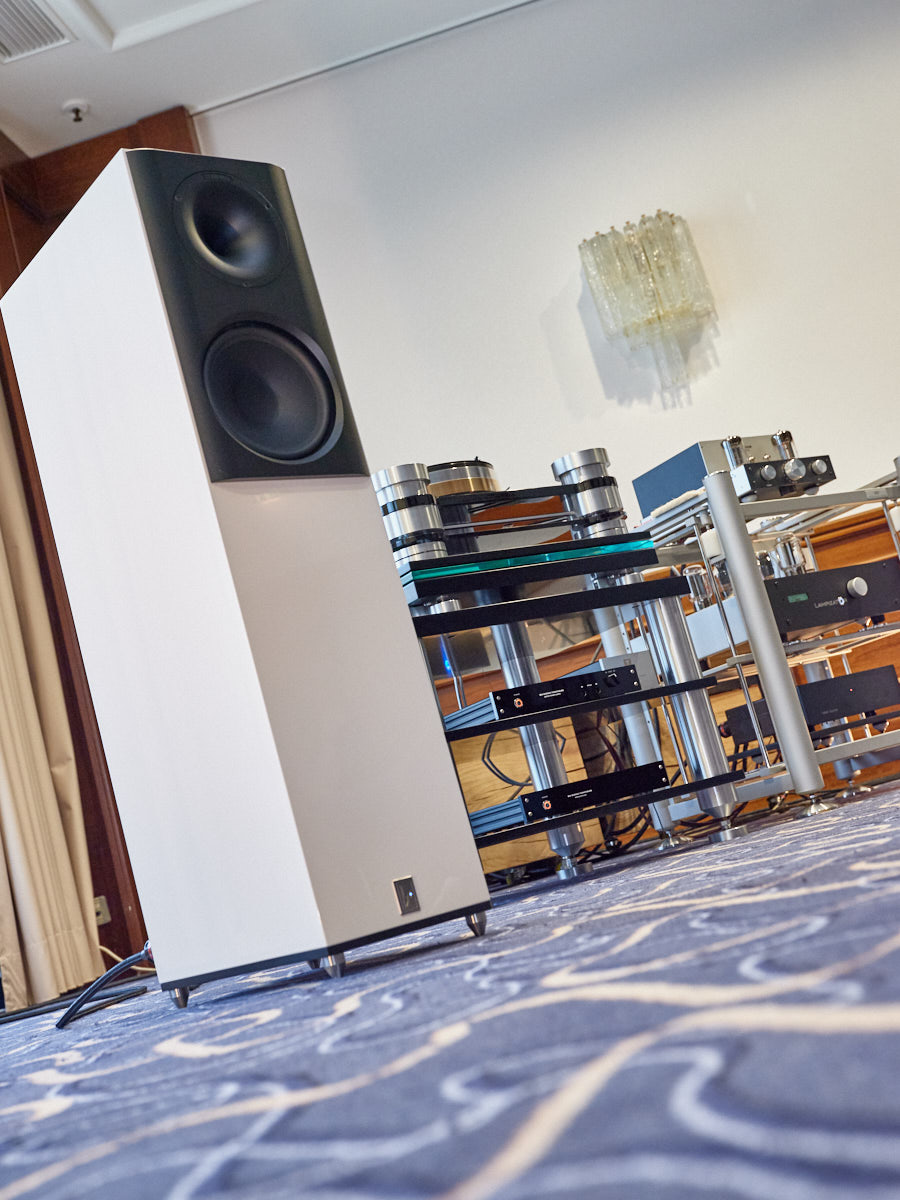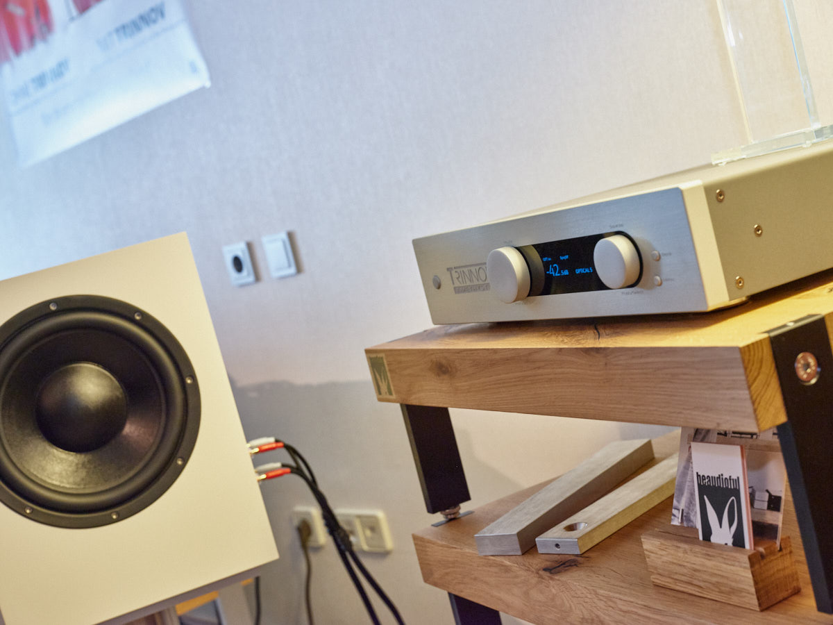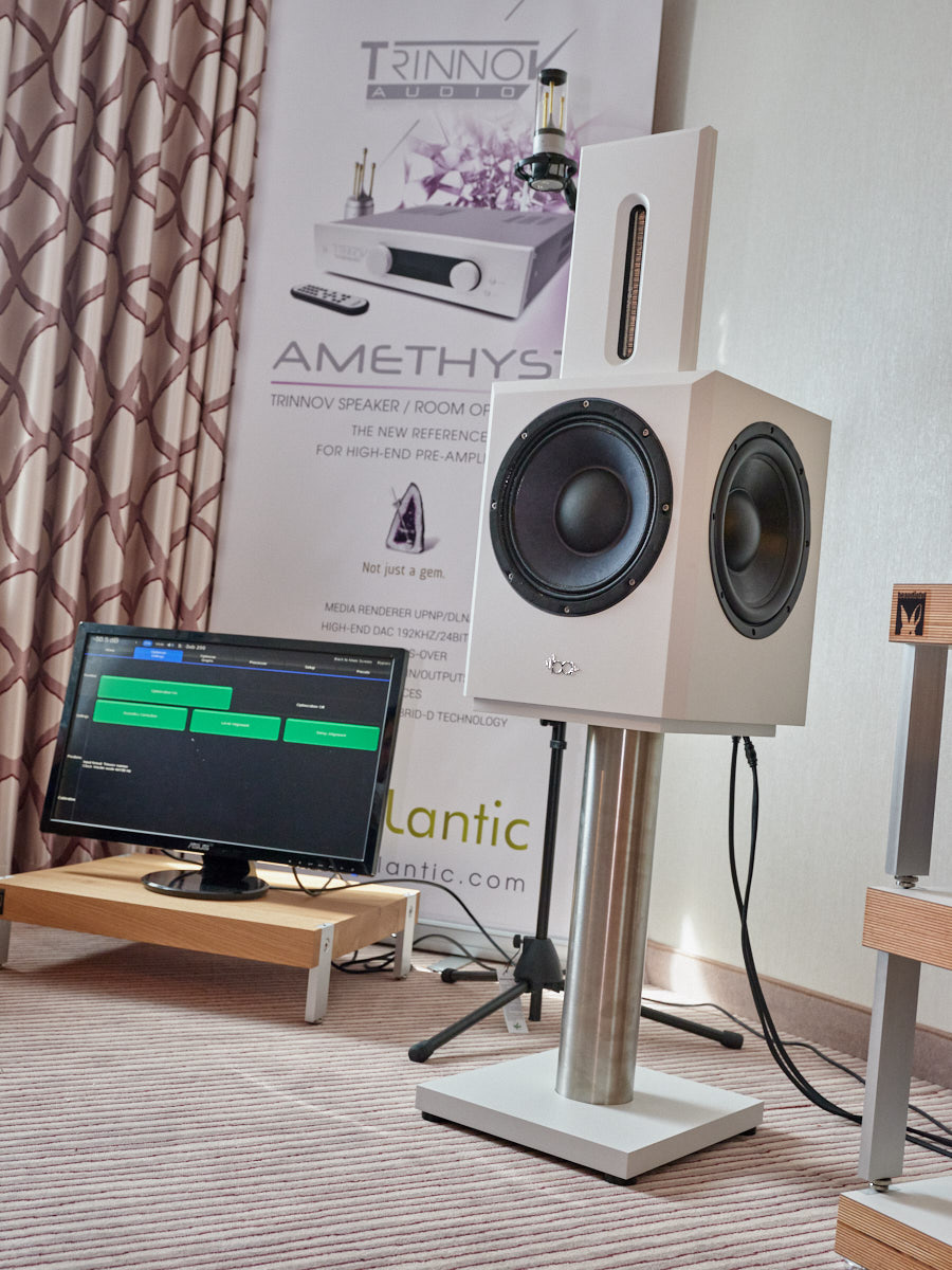 Zu digital? Dann musste man sich nur umdrehen, um am Stand von Transrotor den verführerischen „Alto“ (um 5000 Euro) zu entdecken, der in Bonn ebenfalls einen seiner ersten öffentlichen Auftritte absolvierte. Im benachbarten Ausstellungsraum zeigte Audio Components Paradigms „Persona“-Lautsprecher 3F und die größere 5F, die in praktisch jeder Hinsicht aus dem Rahmen fallen. Beide Modelle besitzen Beryllium-Mitteltöner, die von filigranen und umwerfend gestalteten Abdeckgittern geschützt werden. Das in Bonn nicht gezeigte Top-Modell 9F besitzt sogar eine aktive Bass-Sektion sowie eine integrierte Raumkorrektur von Anthem. Und schließlich gab es noch einen Newcomer: Die Lautsprechermarke „Lautbrecher“ (richtig gelesen, das ist kein Rechtschreibfehler) fertigt Kompaktboxen aus Beton, die sich im mittelpreisigen Segment orientieren und über einen eigenen Shop vertrieben werden.