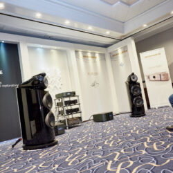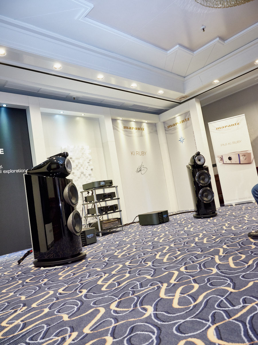 Doch unsere Skepsis weilte nicht lange, schlug im Gegenteil sogar bald in gute Laune um. Zum einen war vor Ort nichts von der Verschlankung zu spüren. Knapp über 100 Marken folgten dem Ruf nach Bonn und füllten die beiden Veranstaltungssäle des Maritim-Hotels, das in der Nähe des alten Regierungsbezirks liegt. Eine Etage darüber lockten elf große Salons mit ihren geräumigen und oft außerordentlich exklusiven HiFi-Systemen. B&W zum Beispiel, wie gewohnt wortgewandt moderiert von Produktmanager Ulf Soldan, brach mit einer alten Tradition und führte die 800 D3 erstmals an Nagra-Elektronik vor.