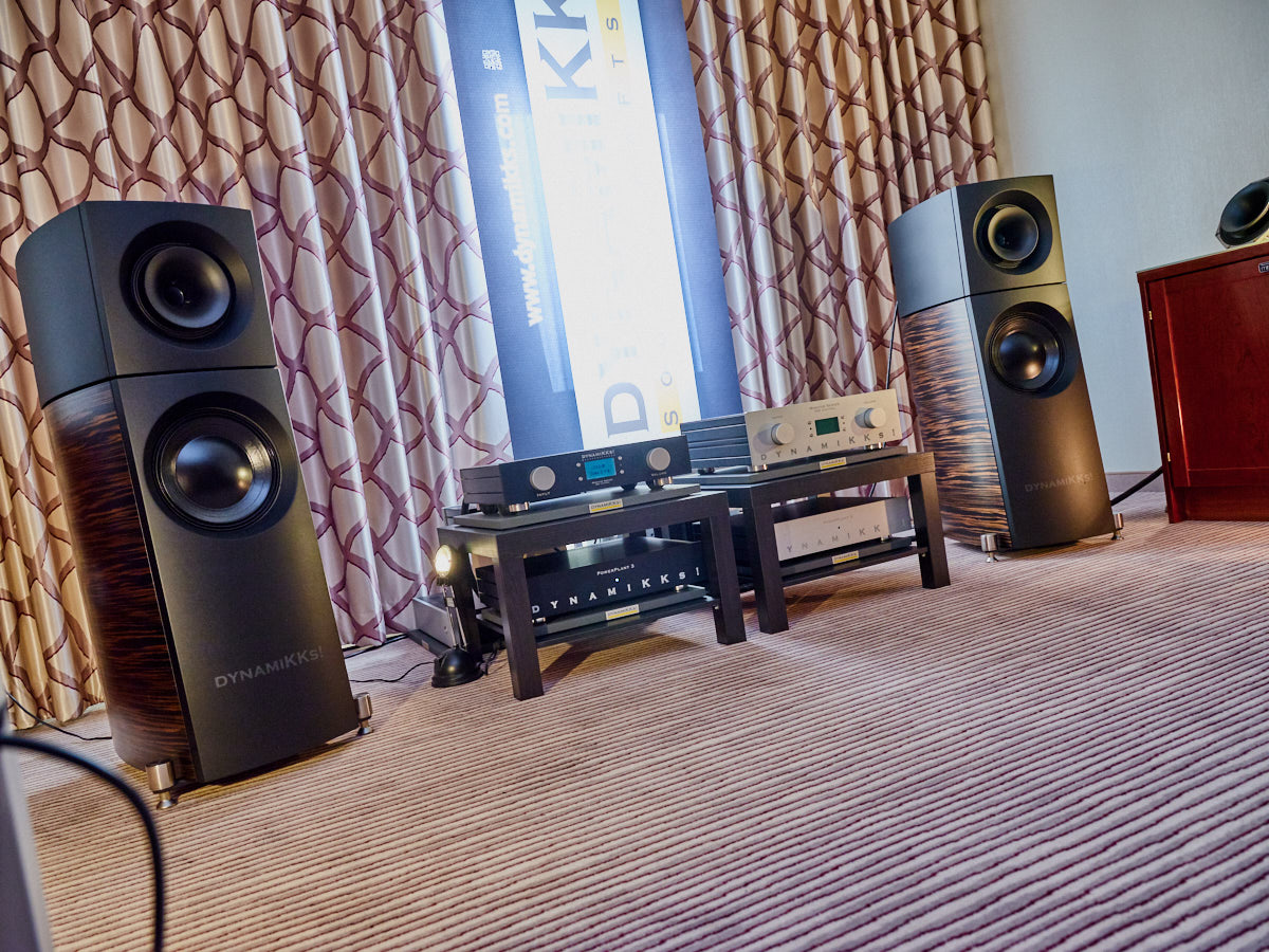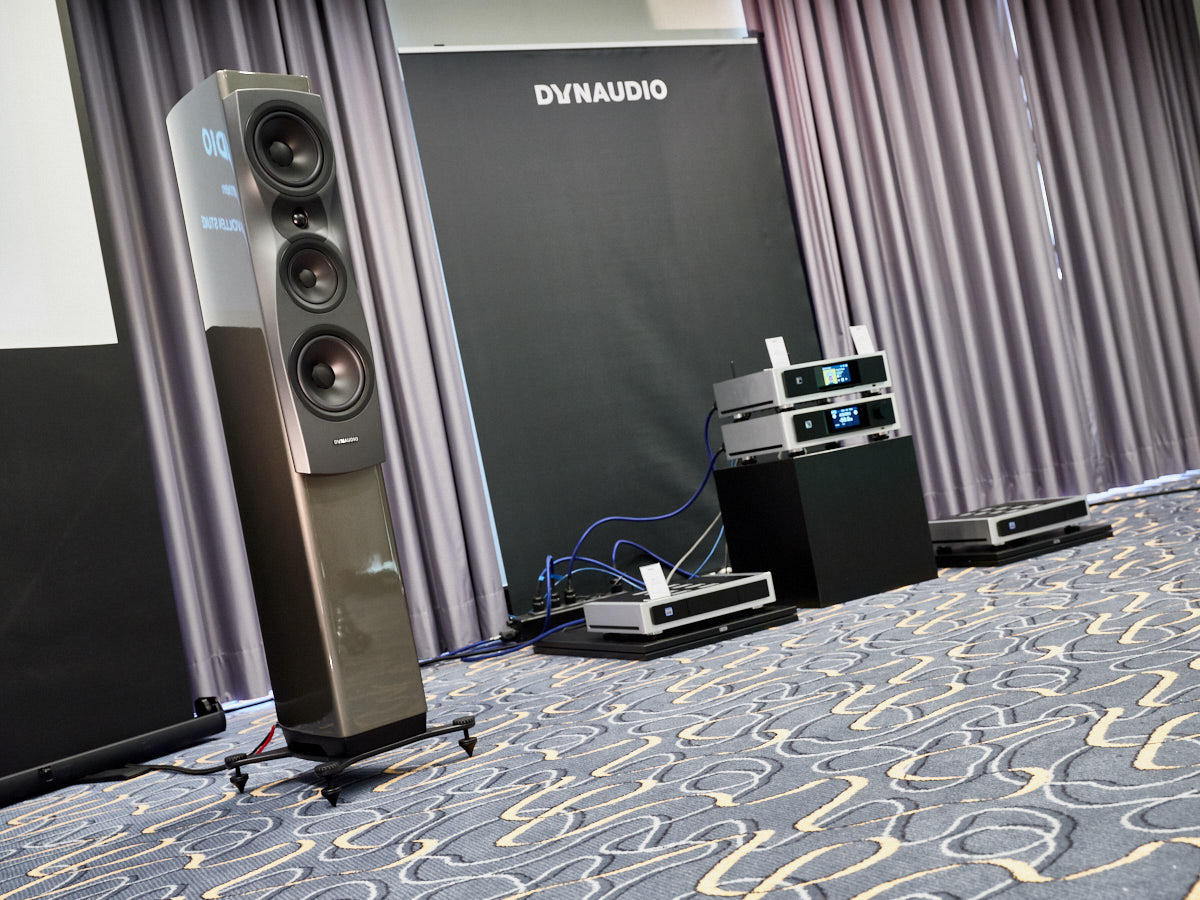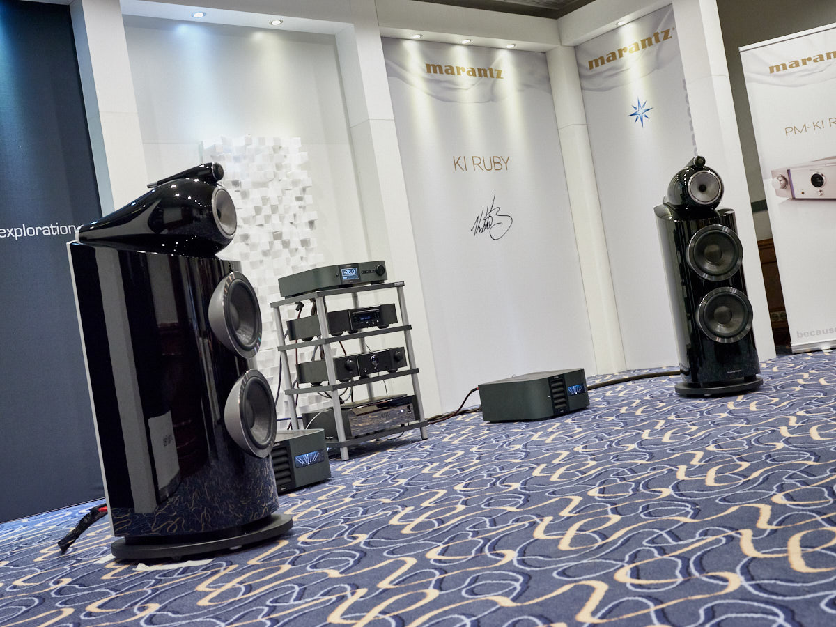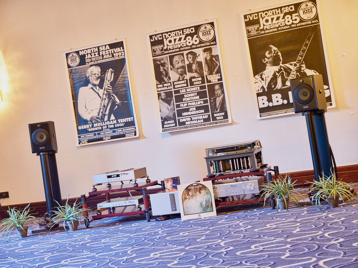 Selbst wir kommen nicht häufig in den Genuss, Mono-Endstufen wie den Schweizer „HD Amp“ in Aktion zu erleben. Einige Türen weiter führte Elac die kleinere seiner beiden Concentros vor, die sich als äußerst imposante Musikmaschine entpuppte. In den Räumen daneben gastierten MBL sowie Fischer & Fischer mit nicht weniger betörenden Systemen. Harmonix und Reimyo setzten in der gemeinschaftlichen Vorführung auf pure Atmosphäre. Der Salon war stilvoll mit Postern und Plakaten geschmückt, die Lust auf die kompakte und unglaublich musikalische Kette machten. Auch bei Electrocompaniet konnte man etwas ganz Besonderes entdecken: Inhaber Matthias Roth hatte eigens für die Bonner Show ein Paar von Dynaudios Consequence Ultimate Edition organisiert, die an der spielfreudigen Elektronik der Norweger hervorragend musizierte. Auf ihre Weise war die Präsentation von Marantz und Denon „exotisch“: Anders als zu erwarten führte der Vertrieb Komponenten von Classé Audio – seit einiger Zeit ja ebenfalls im Portfolio der D/M-Holding „Sound United“ – an Großkalibern von B&W vor.